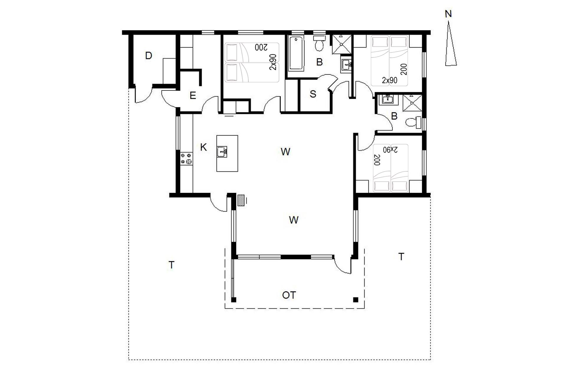 Sengestørrelser: 3 dobbeltsenge med 2 madrasser 90 x 200 cm.