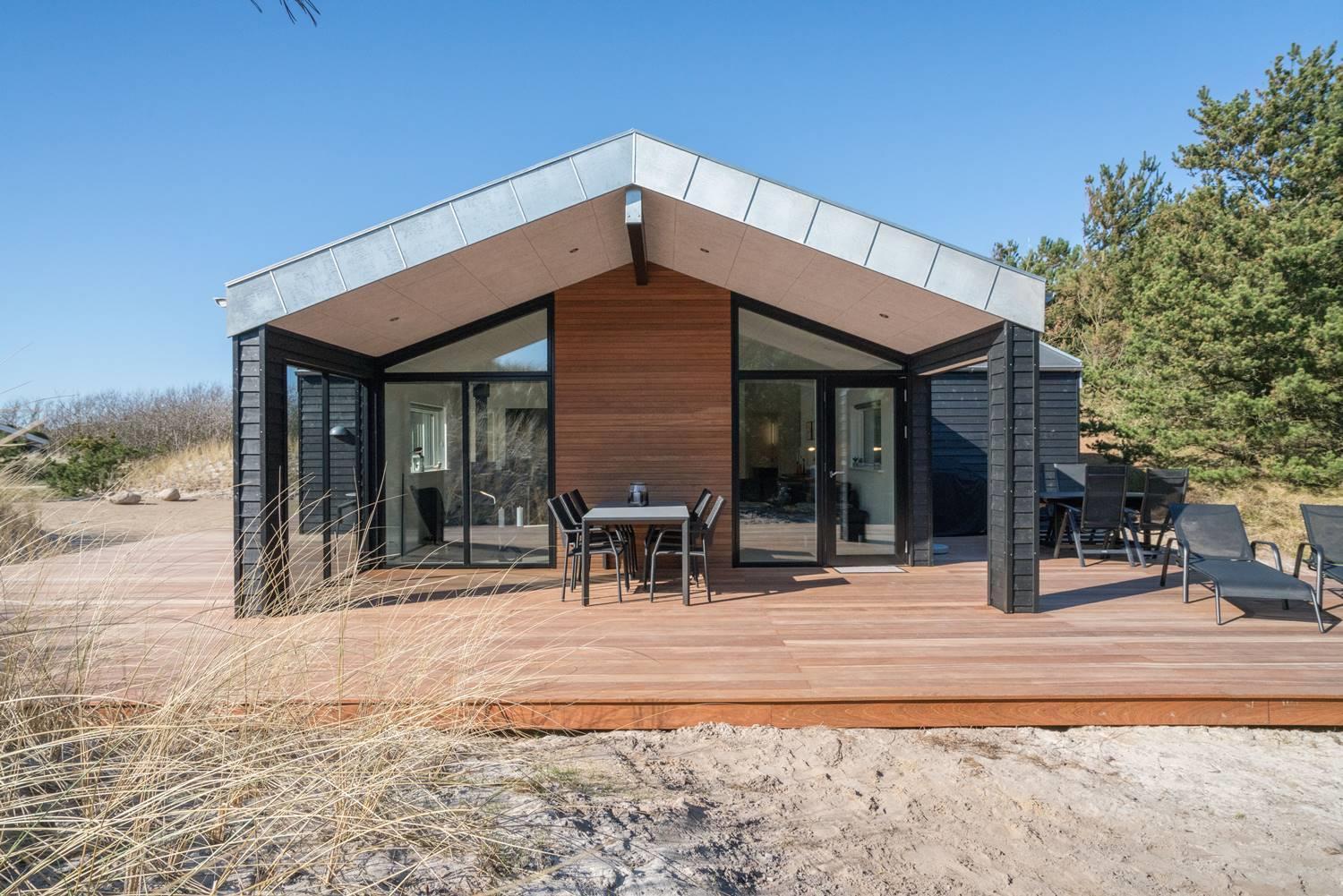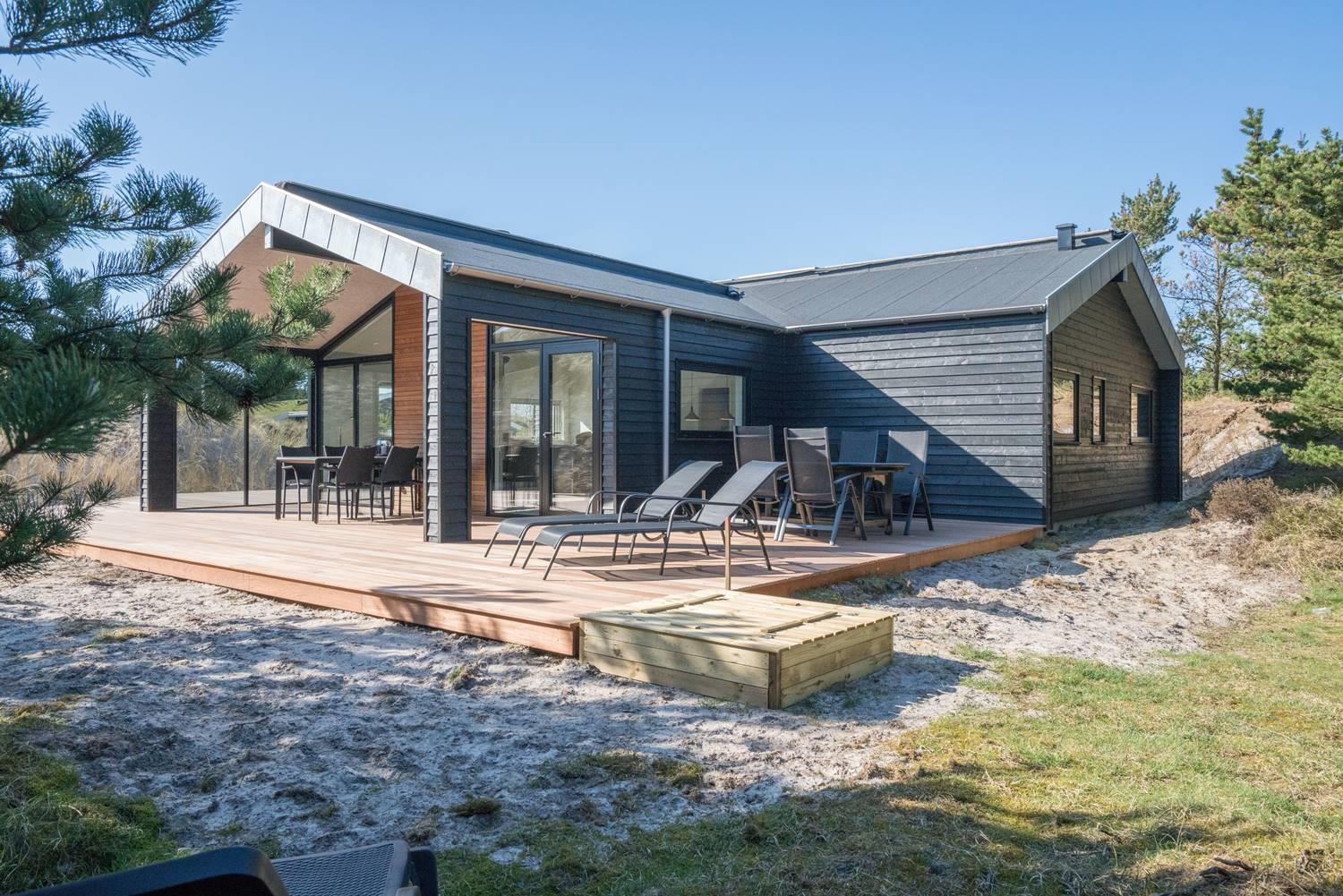 Få skridt fra den fantastiske badestrand i Henne ligger dette topmoderne, lyse og indbydende sommerhus fra 2019 og byder sig til. Huset har en god indretning med et fantastisk lækkert opholdsrum, tre soverum og to badeværelser, hvoraf det ene har badekar og sauna. Udenfor kan ferien nydes i den helt ugenerede have, som med sit skønne terrassedæk byder på adskillige timers sol, afslapning og familiehygge.