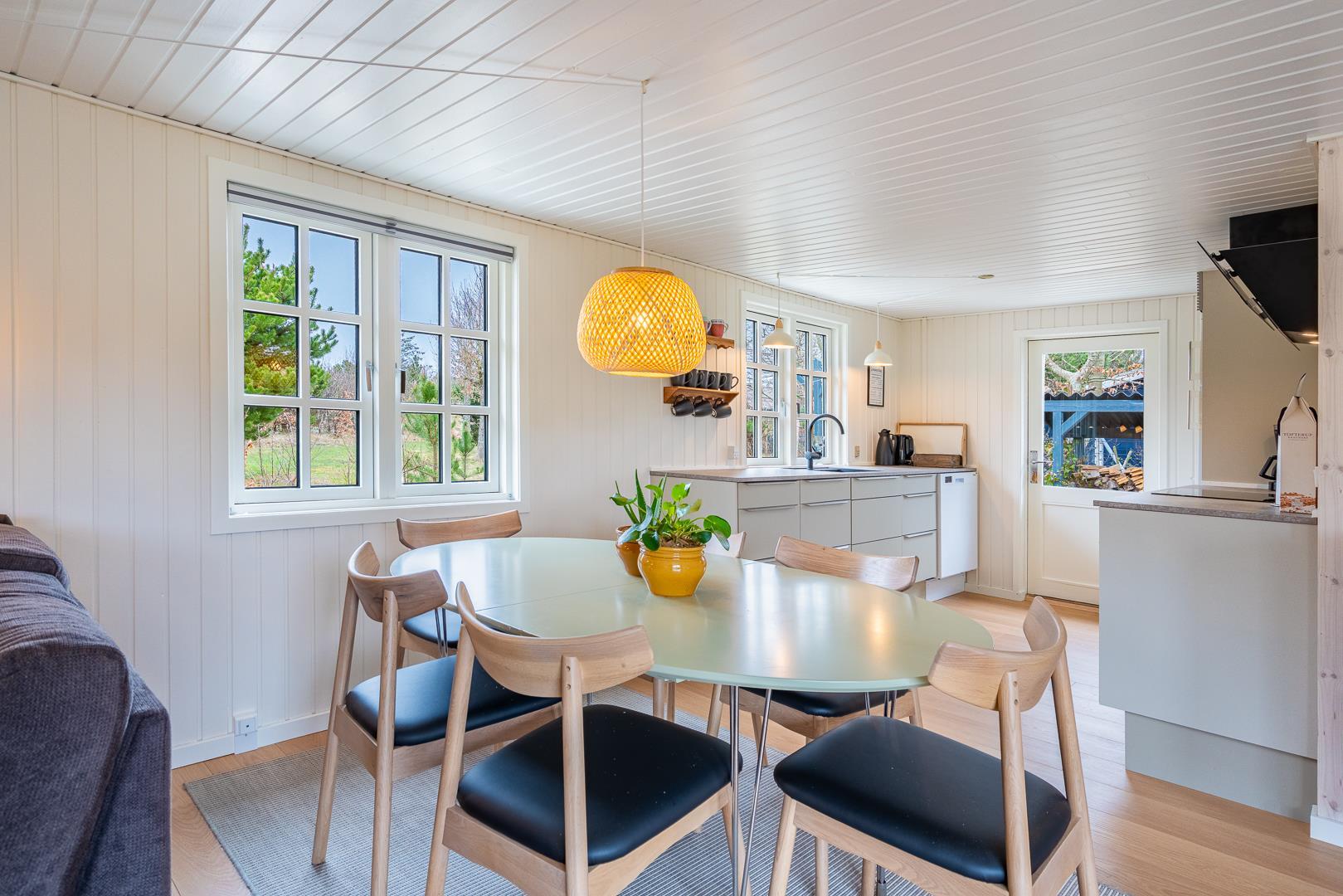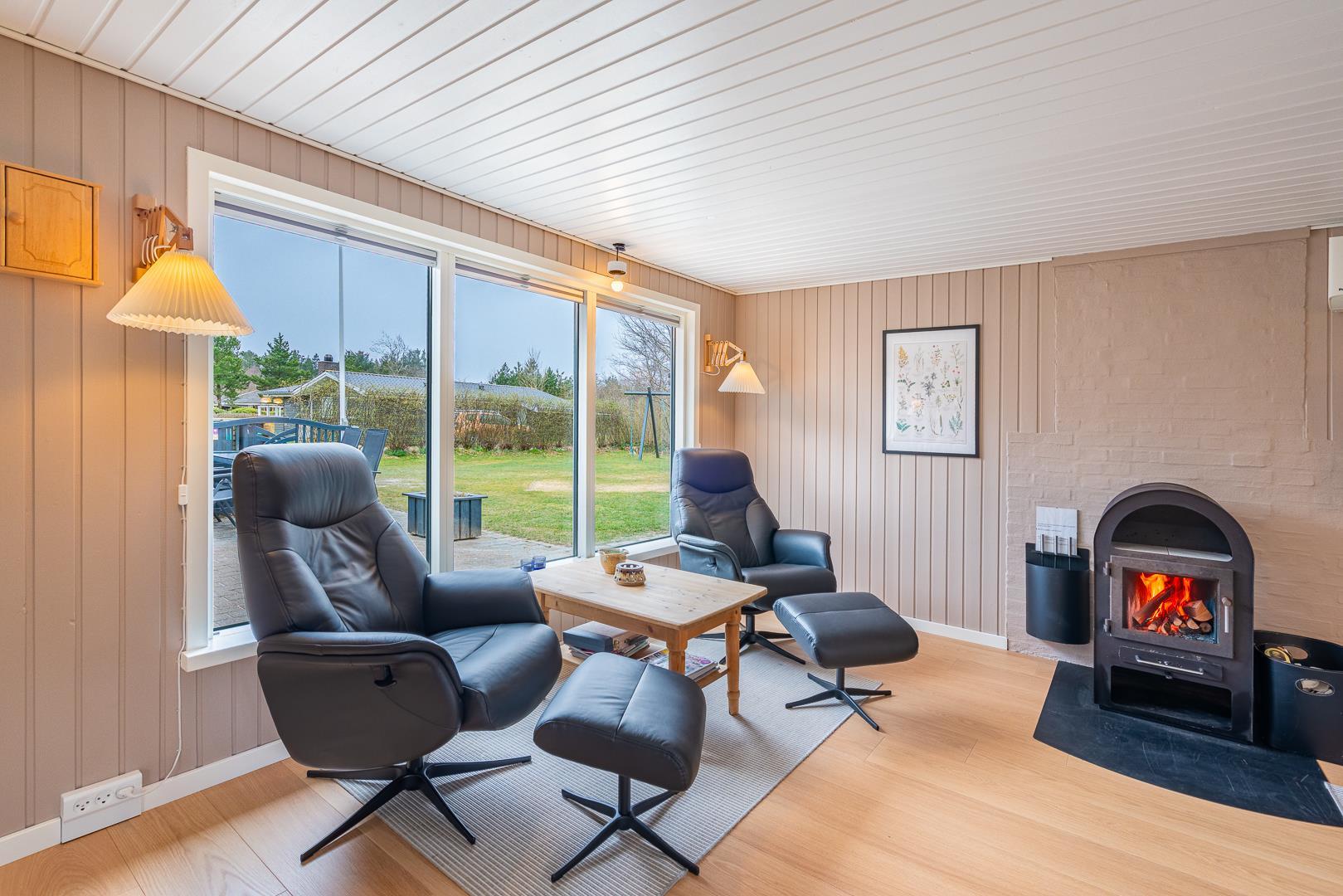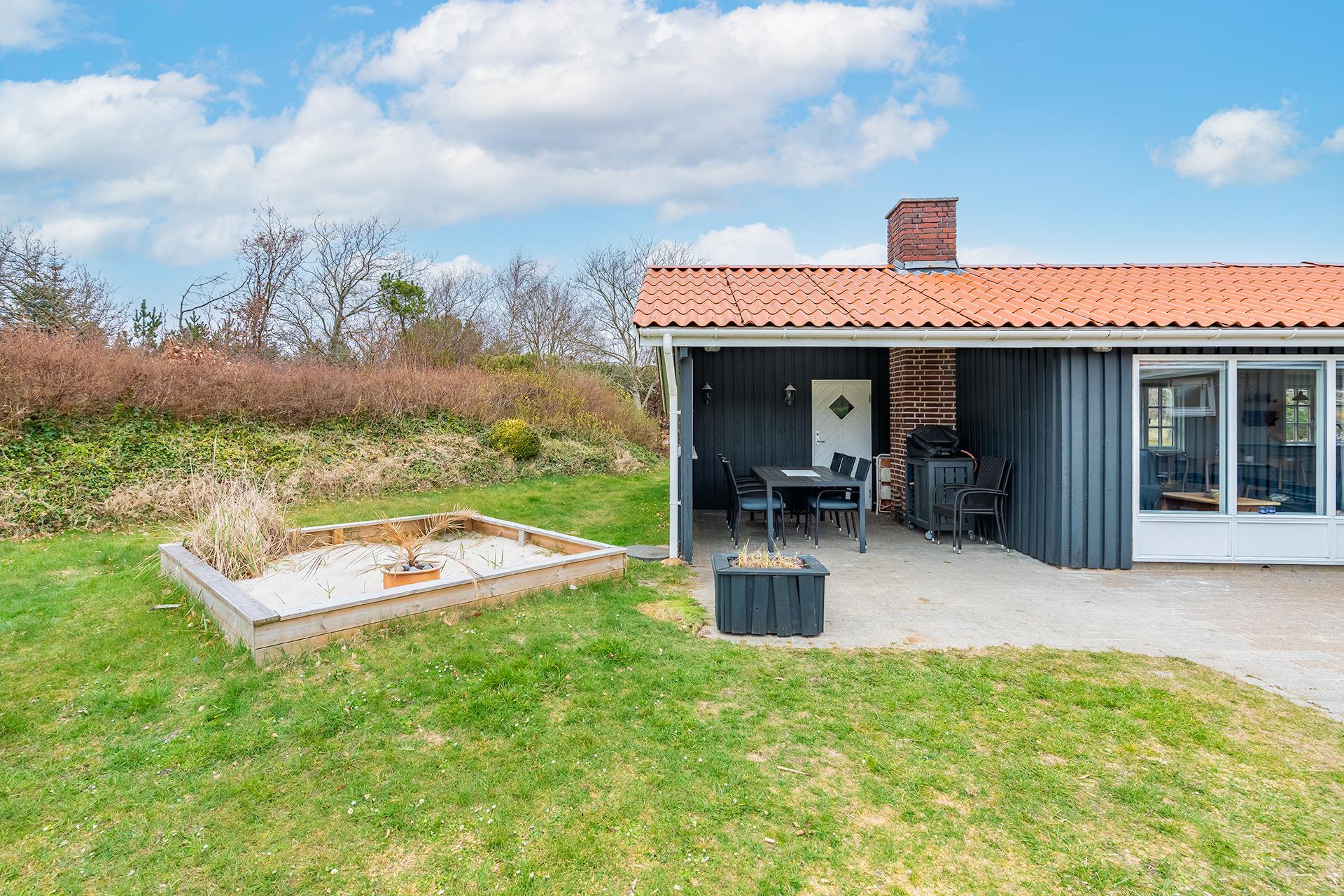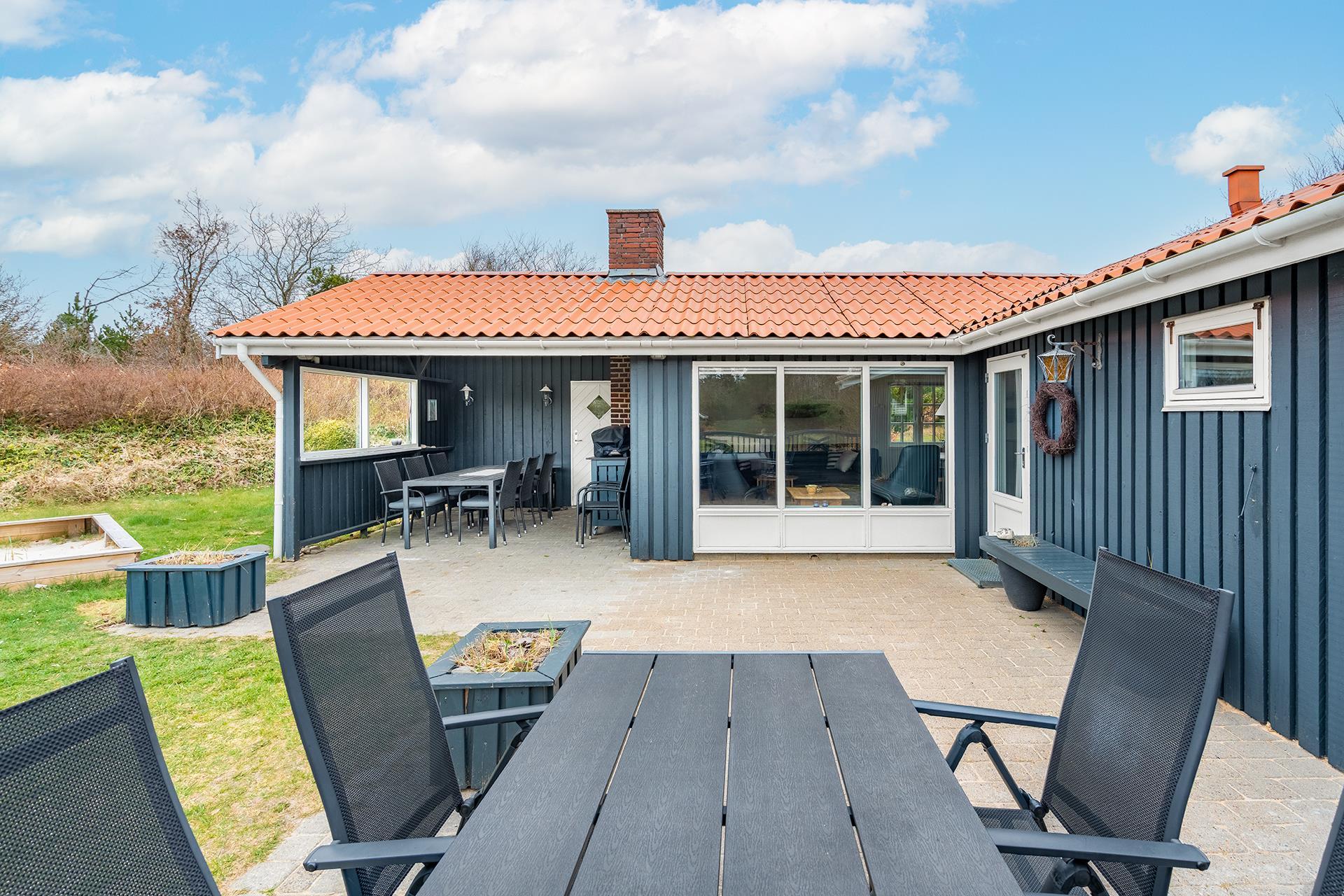 Her er plads til 6 personer og op til 2 husdyr, så både familie og firbenede venner kan nyde ferien sammen. Sommerhuset byder på 3 lyse værelser, et badeværelse og en indbydende køkken/alrum. Fra den dejlige stue med brændeovn, er der udgang til en til delvist overdækket terrasse. Her kan du nyde solen, grille og slappe af, mens børnene leger trygt i sandkassen. Grunden er dejligt afskærmet, så du kan finde læ og nyde freden.