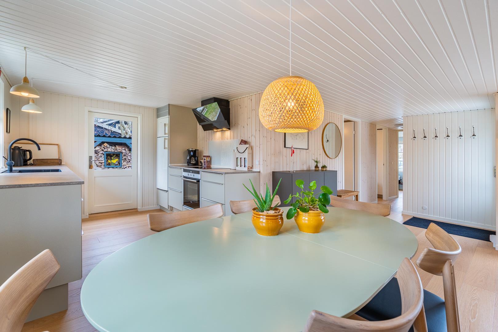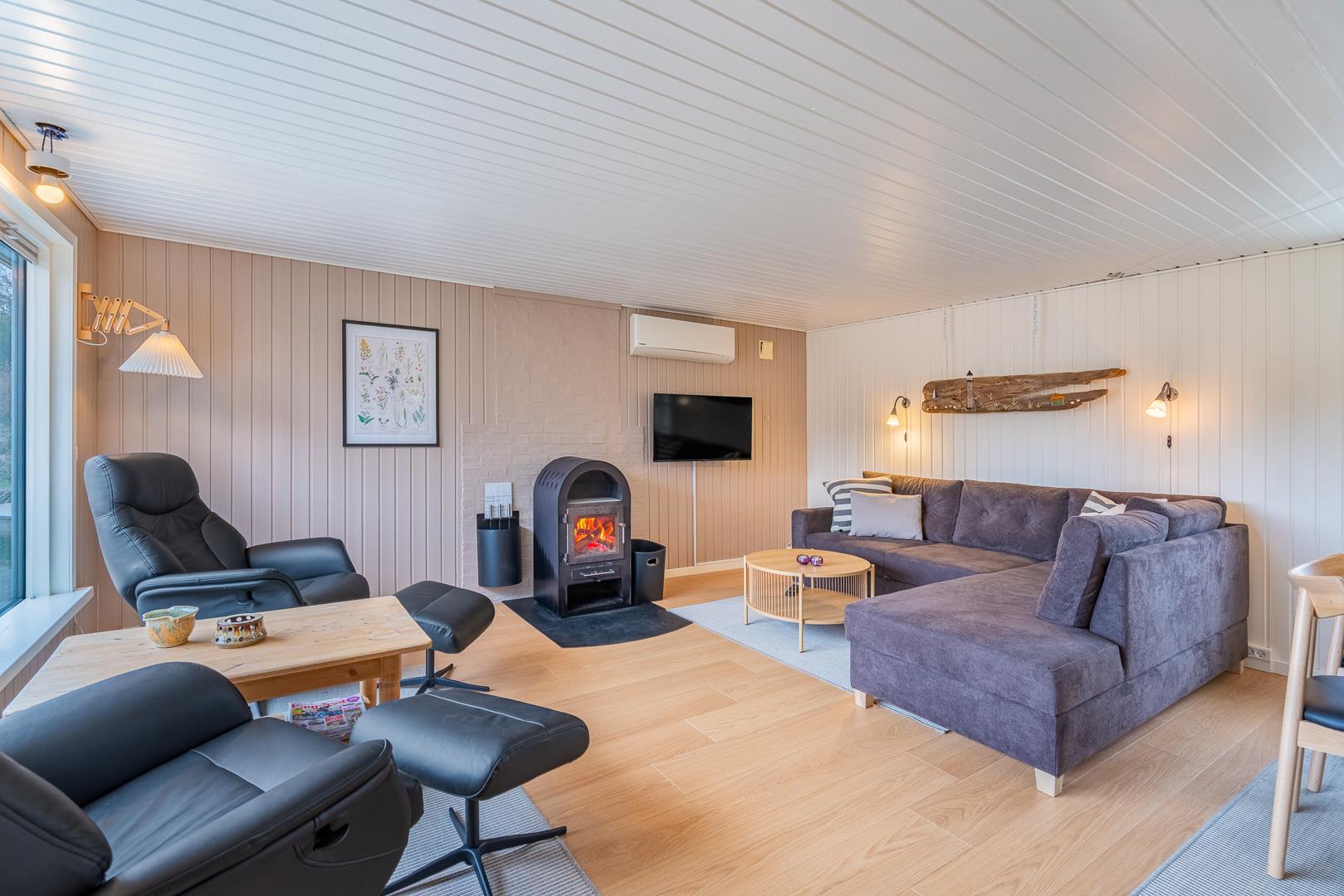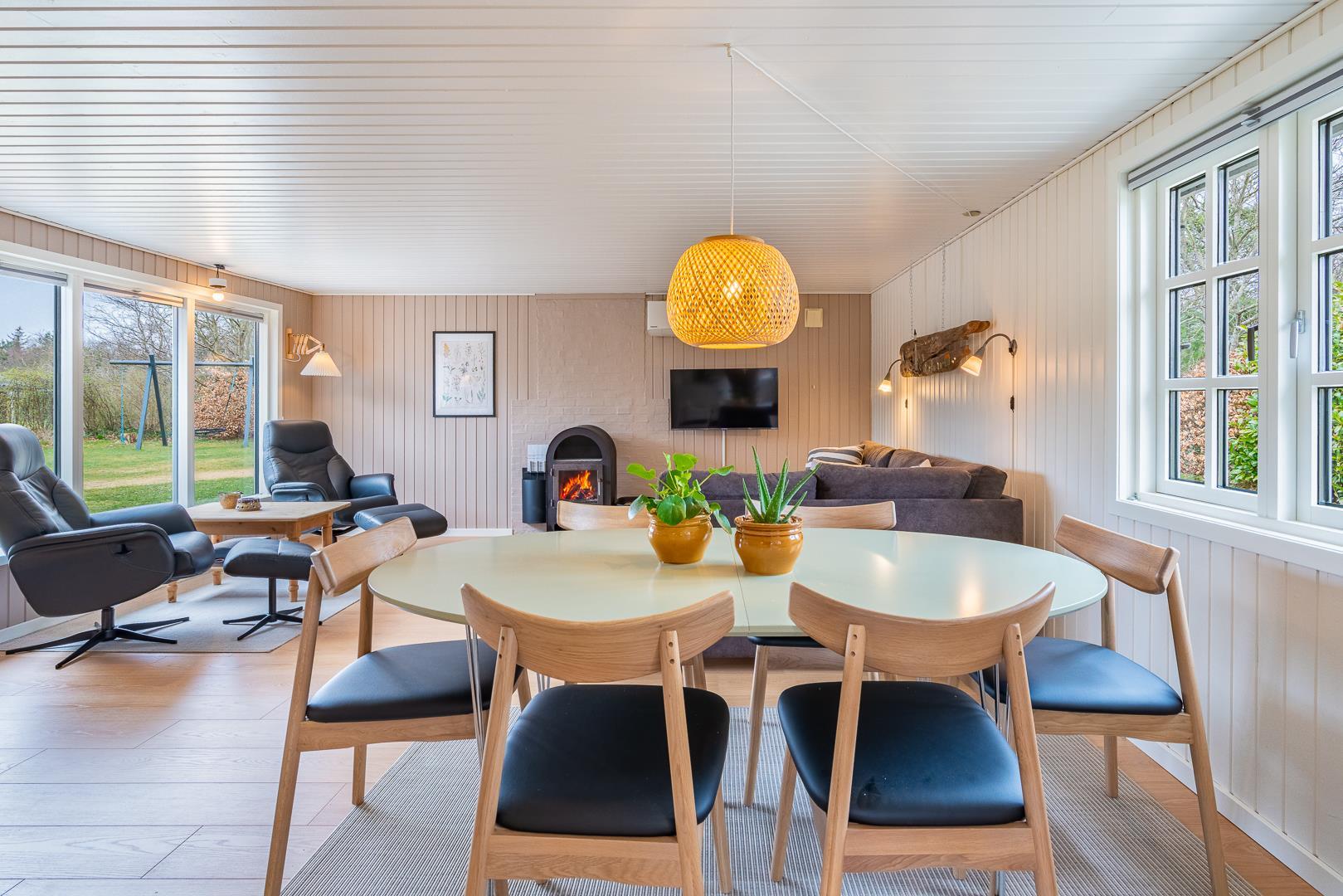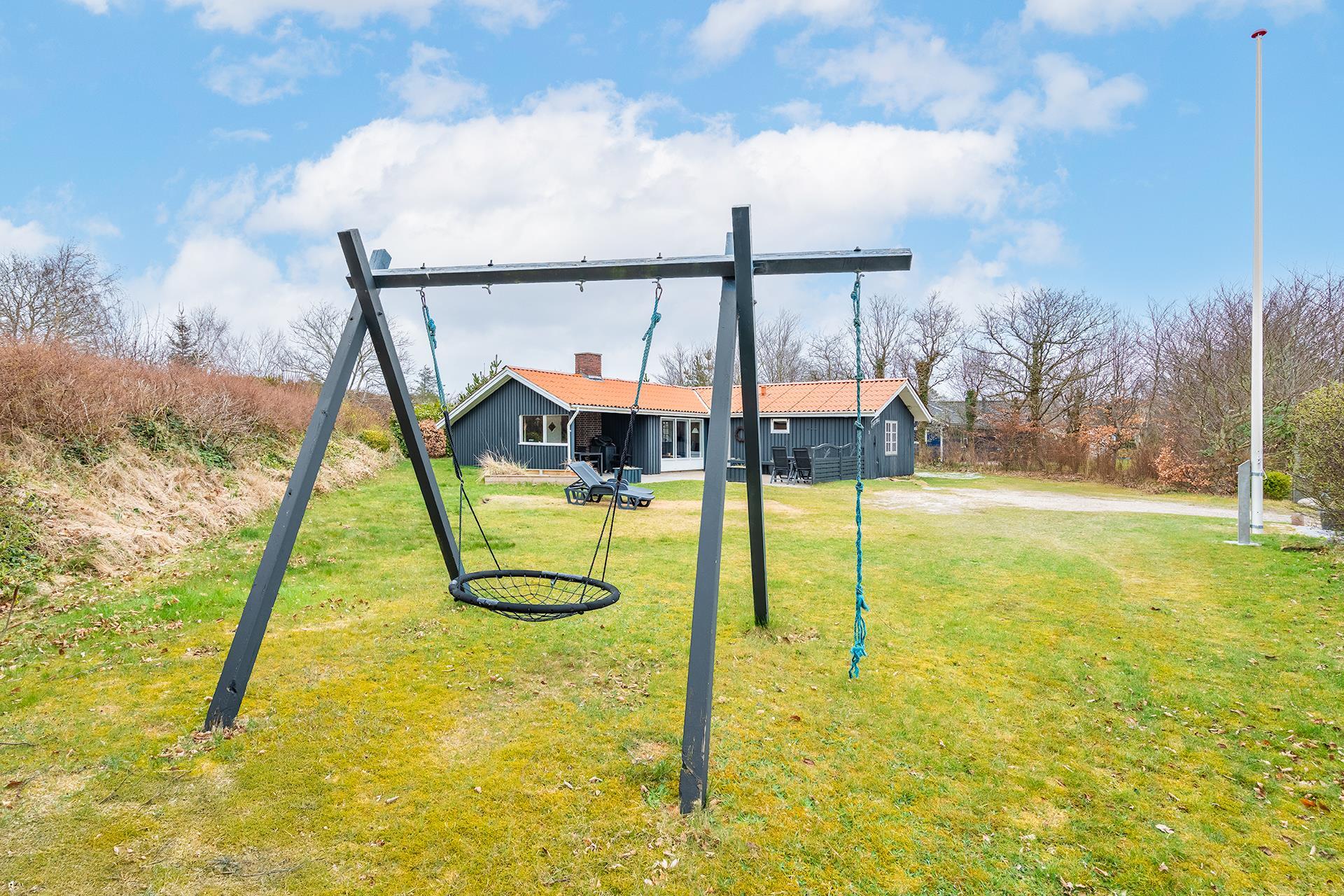 Her er plads til 6 personer og op til 2 husdyr, så både familie og firbenede venner kan nyde ferien sammen. Sommerhuset byder på 3 lyse værelser, et badeværelse og en indbydende køkken/alrum. Fra den dejlige stue med brændeovn, er der udgang til en til delvist overdækket terrasse. Her kan du nyde solen, grille og slappe af, mens børnene leger trygt i sandkassen. Grunden er dejligt afskærmet, så du kan finde læ og nyde freden.