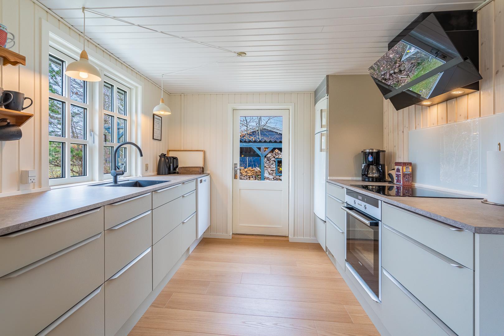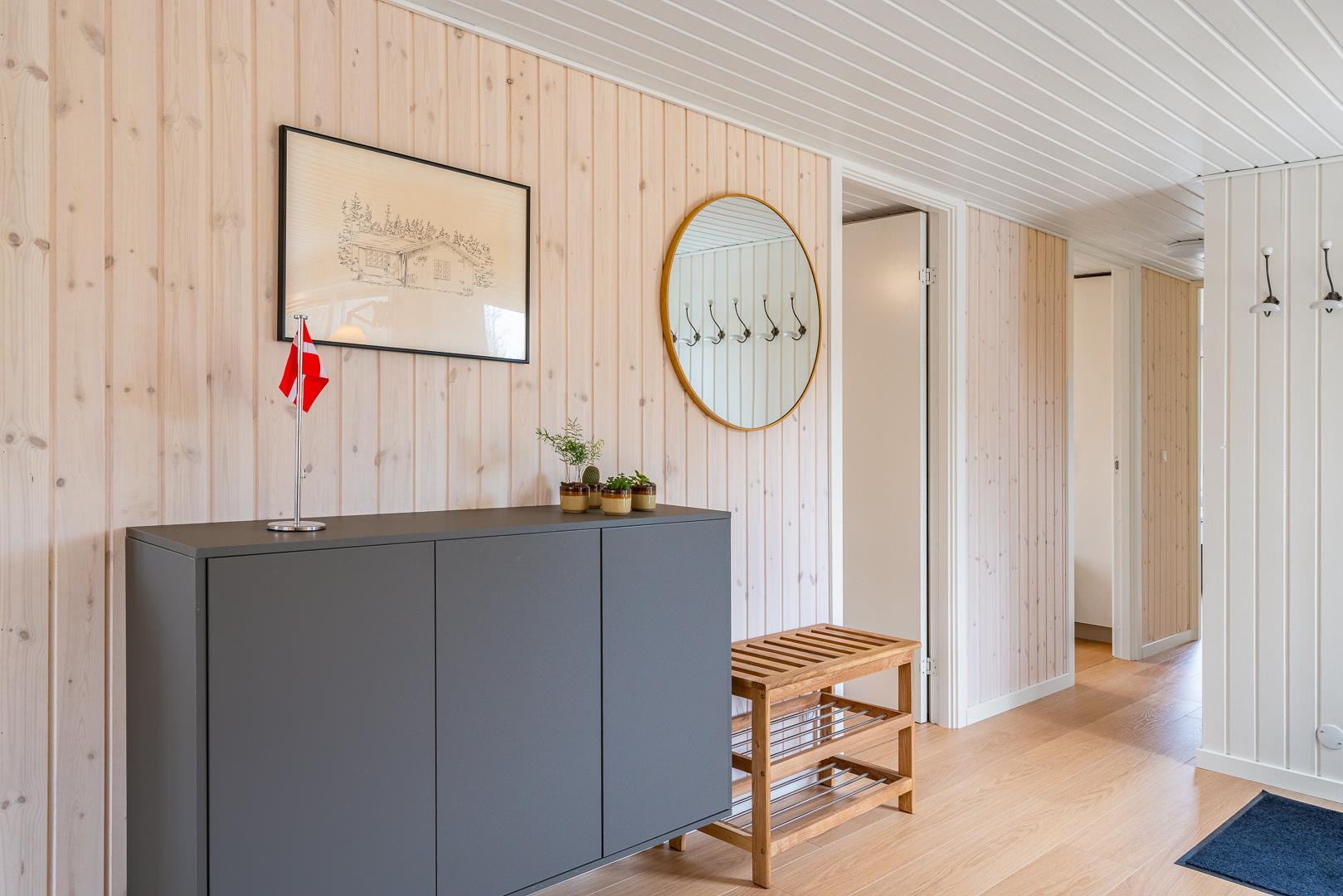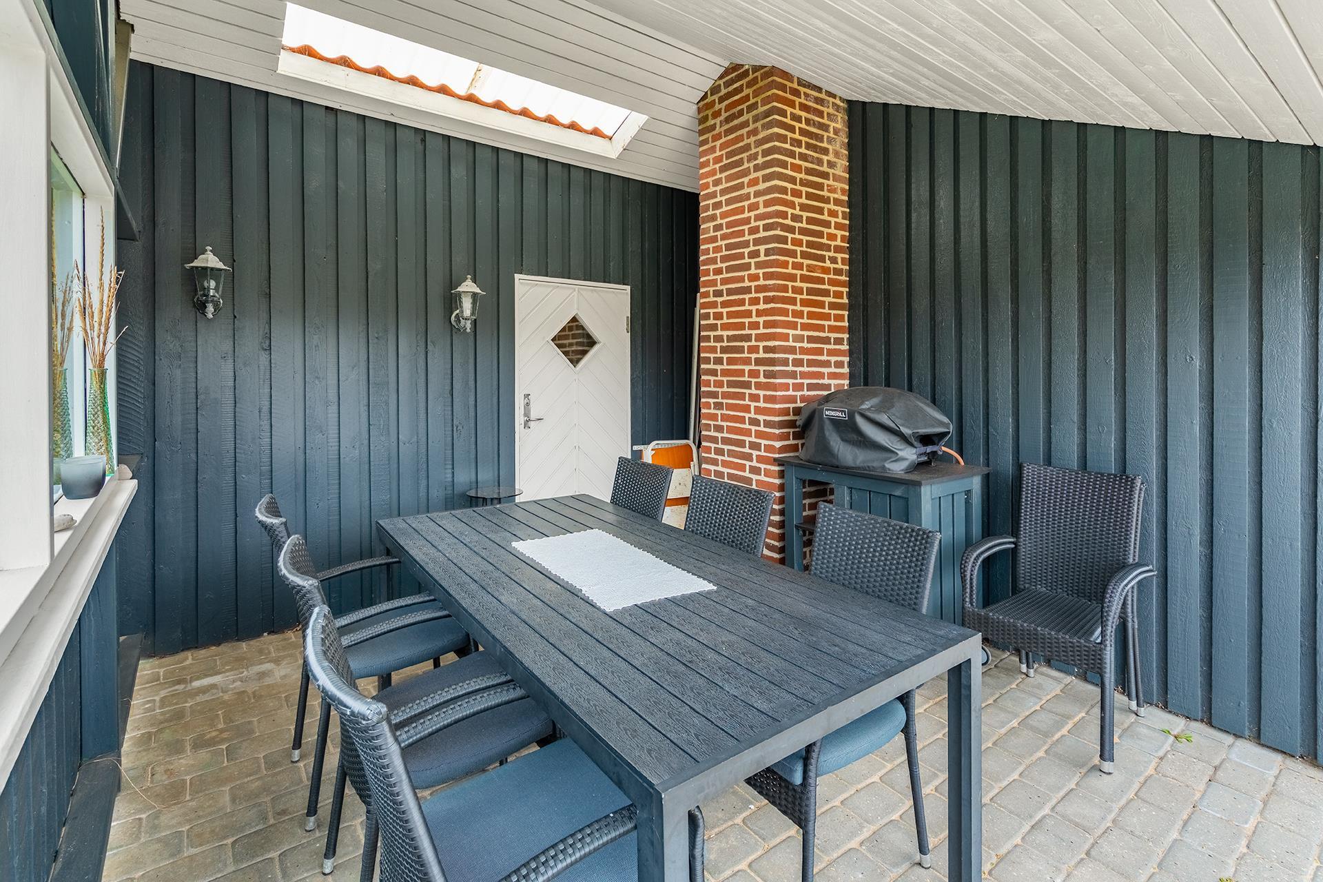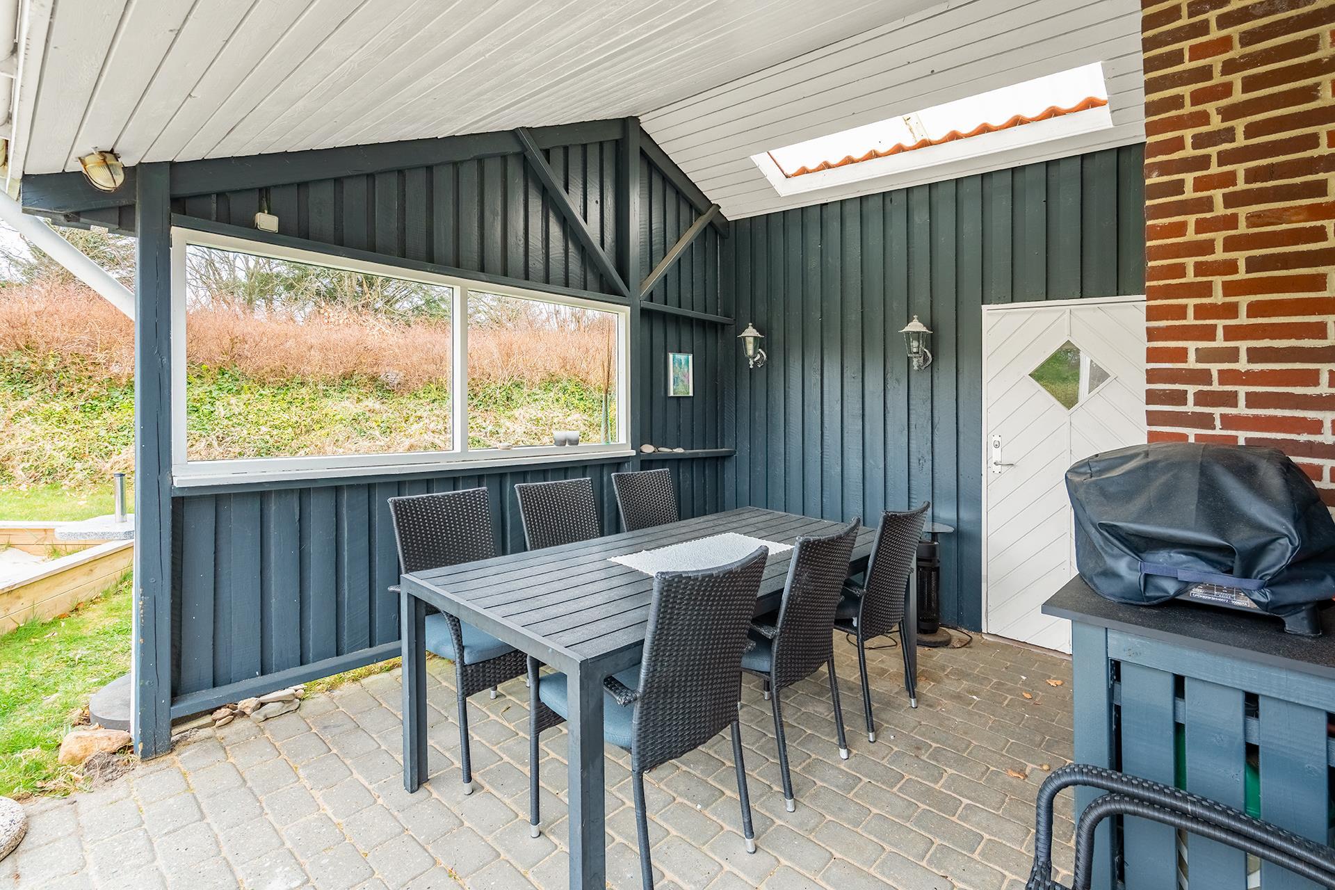 Her er plads til 6 personer og op til 2 husdyr, så både familie og firbenede venner kan nyde ferien sammen. Sommerhuset byder på 3 lyse værelser, et badeværelse og en indbydende køkken/alrum. Fra den dejlige stue med brændeovn, er der udgang til en til delvist overdækket terrasse. Her kan du nyde solen, grille og slappe af, mens børnene leger trygt i sandkassen. Grunden er dejligt afskærmet, så du kan finde læ og nyde freden.