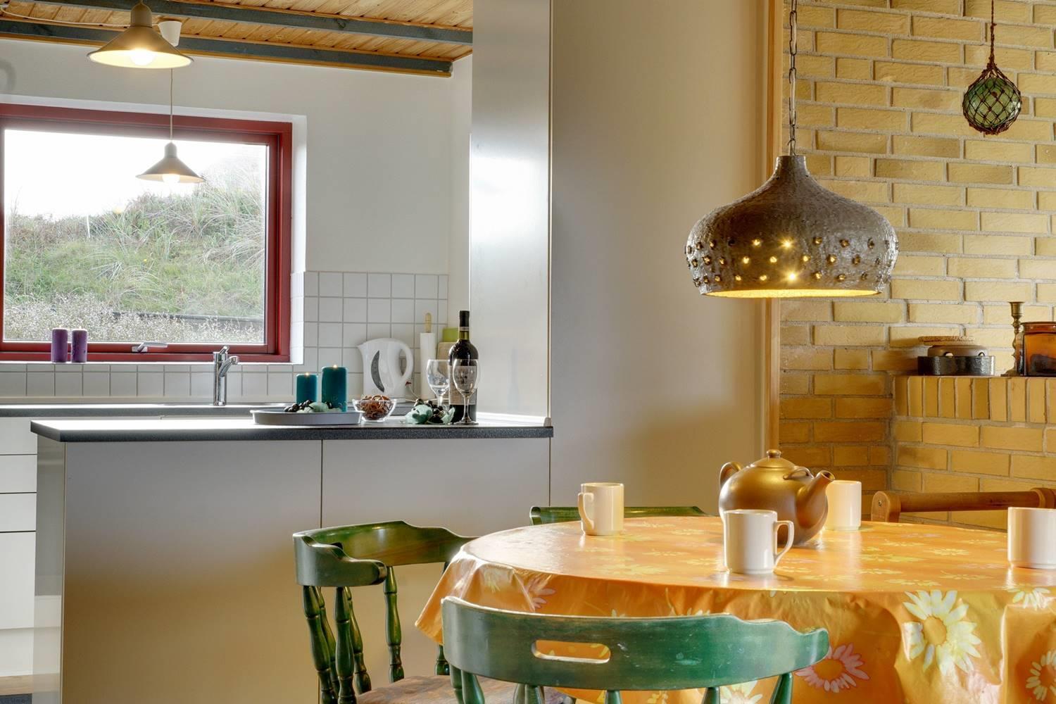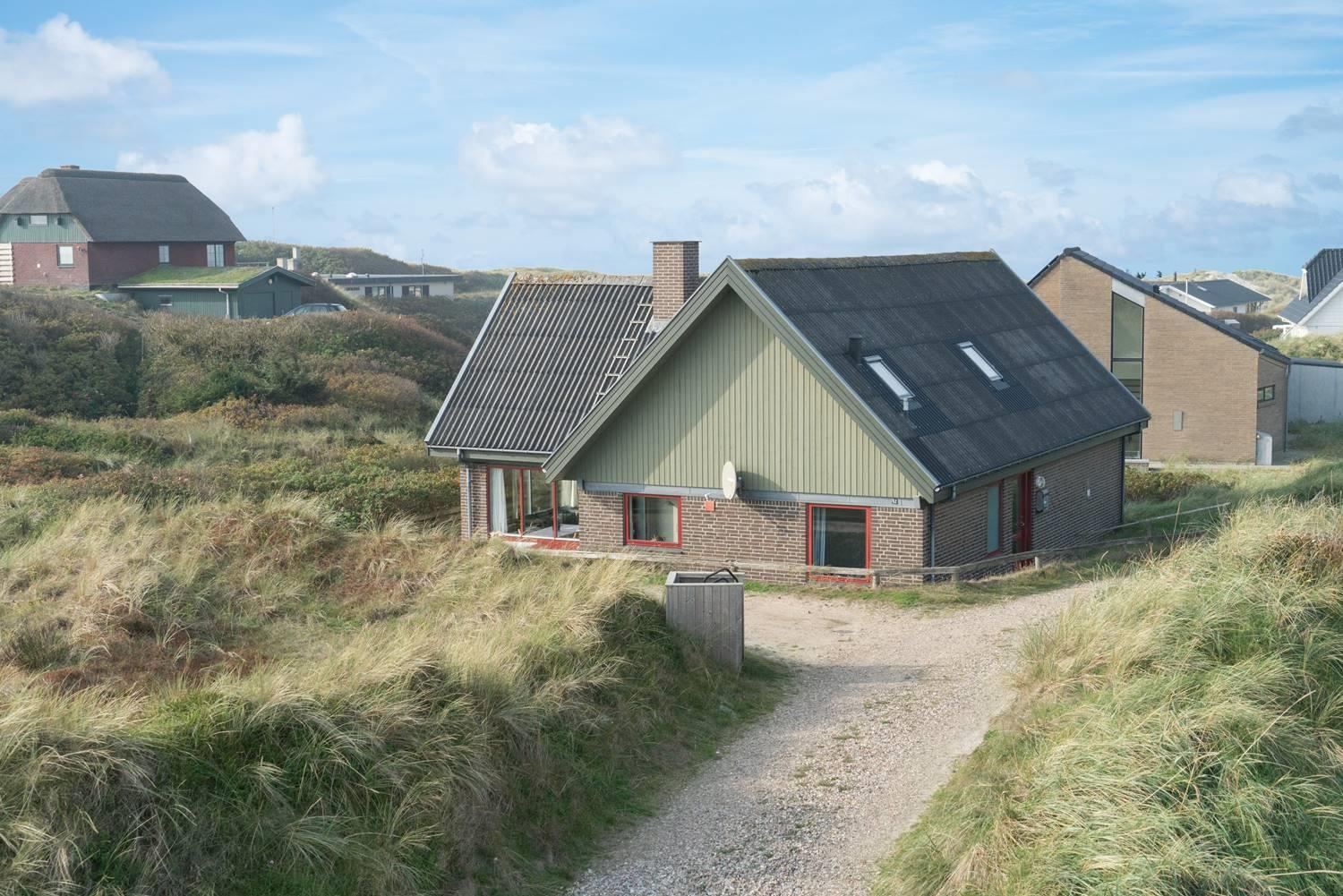 På en skøn klitgrund for enden af blind vej ligger dette rummelige, enkelt indrettede og ældre feriehus med havudsigt.