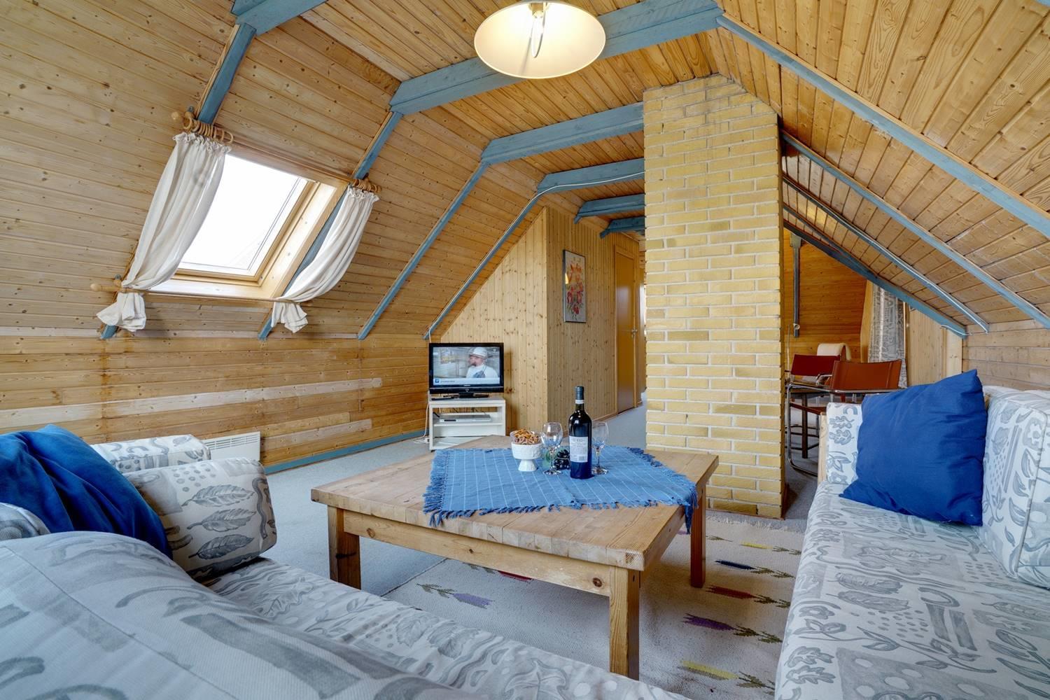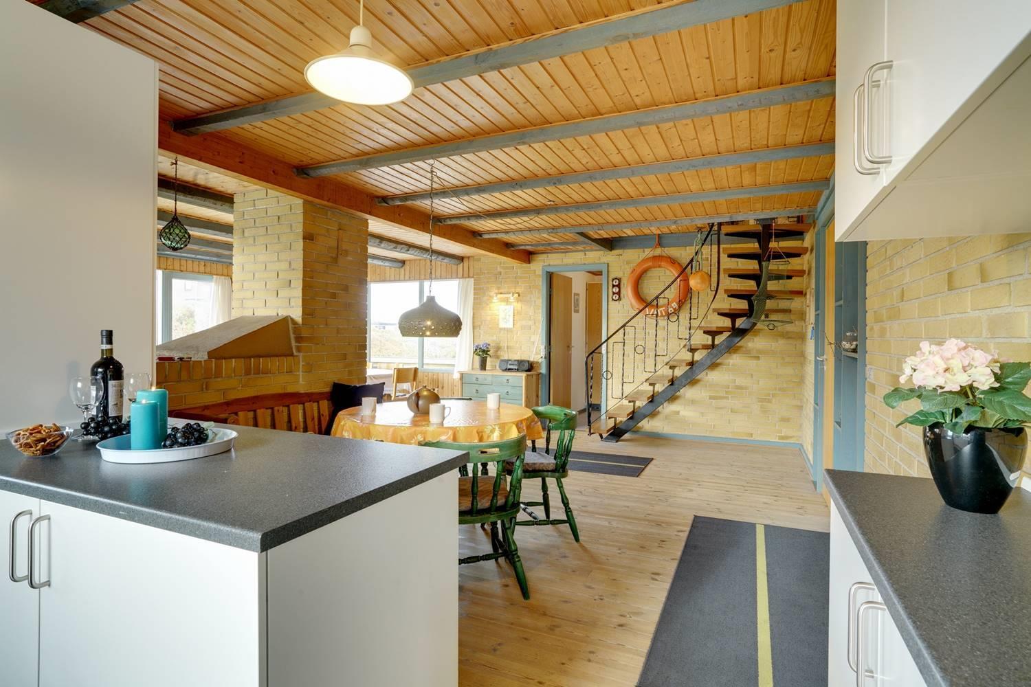 Der er en skøn havudsigt fra balkonen. I huset anden stue som ligger i åben forbindelse med køkkenet, kan den flotte udsigt også nydes.