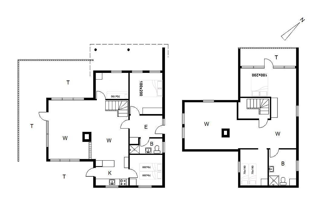 Sengestørrelse: 1 dobbeltseng med 2 madrasser 70 x 200 cm + 2 dobbeltsenge 180 x 200 cm + 2 enkeltsenge 70 x 190 cm + 1 køjeseng 70 x 190 cm.