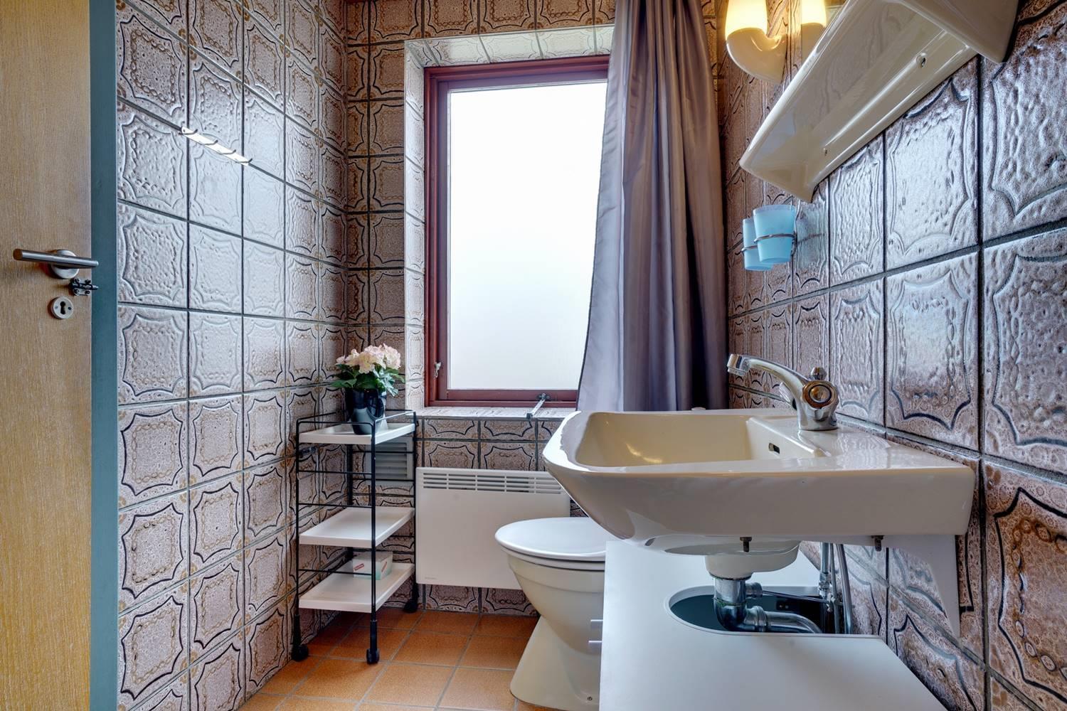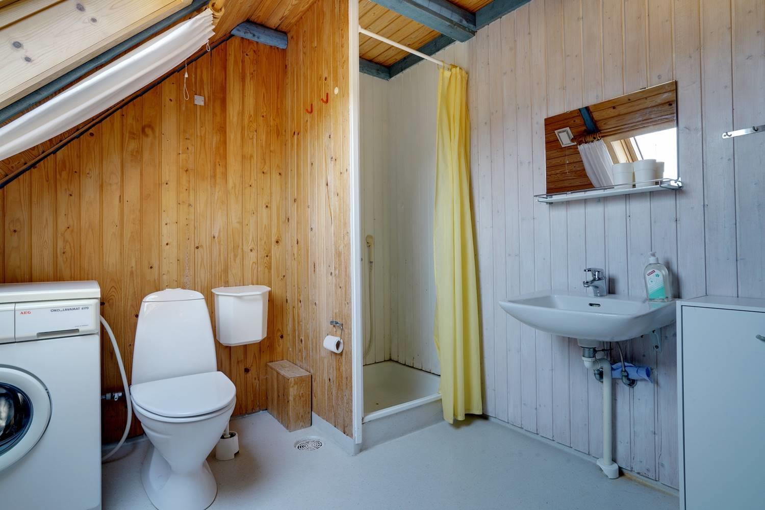 Huset er indrettet med 2 badeværelser, den ene er på 1. salen, hvor der også er 2 soverum og en opholdsstue.