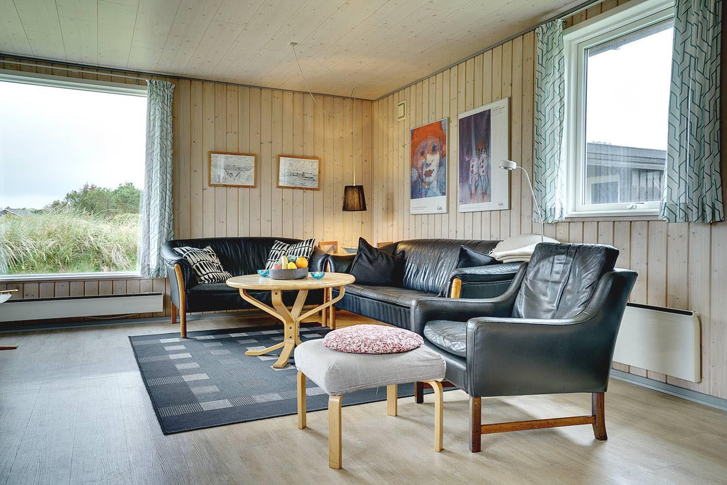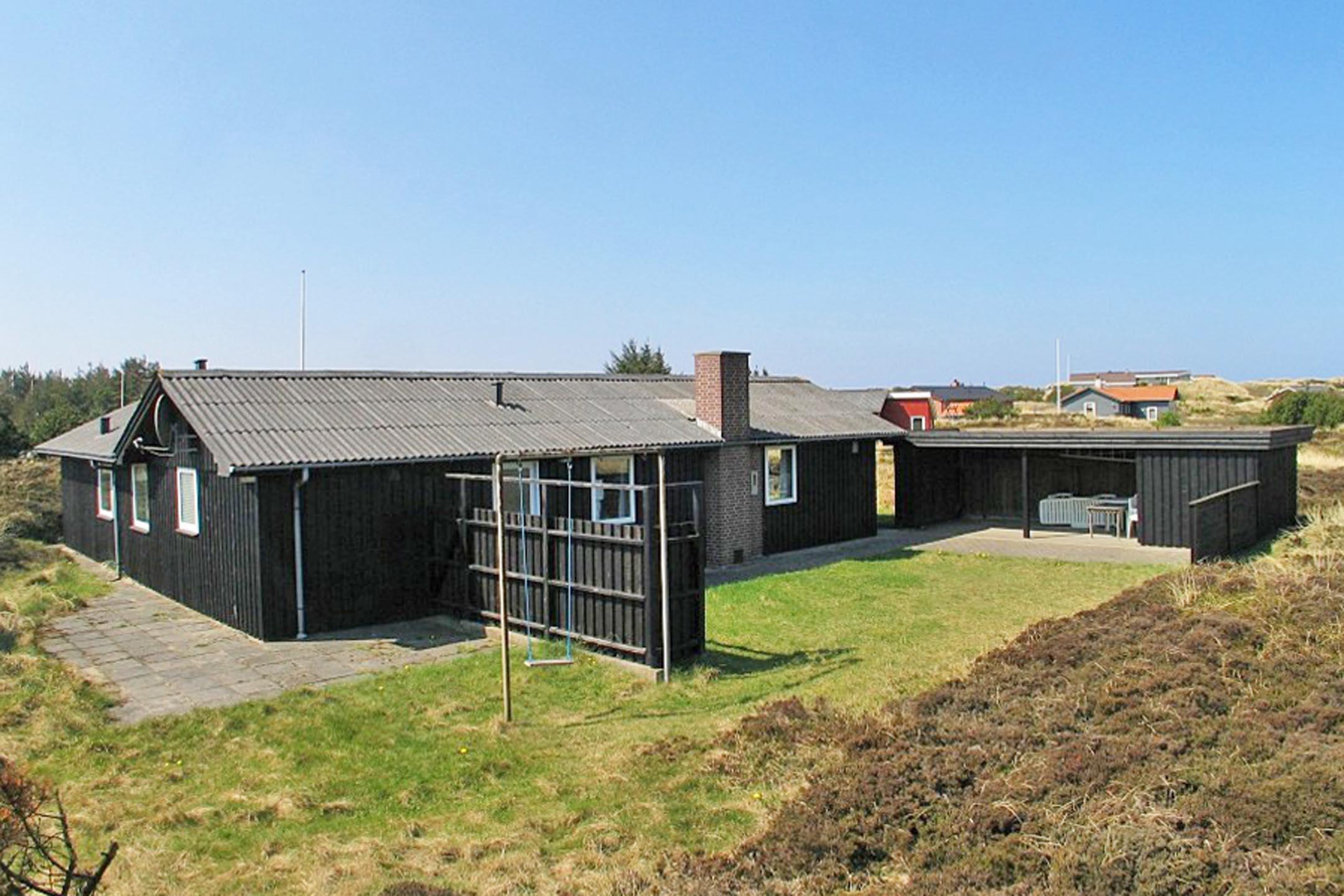 Rummeligt feriehus ved Henne Strand med sauna, brændeovn og flere terrasser på en naturskøn grund.