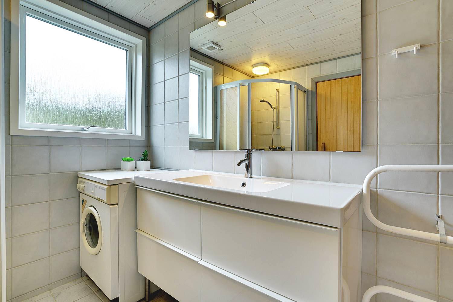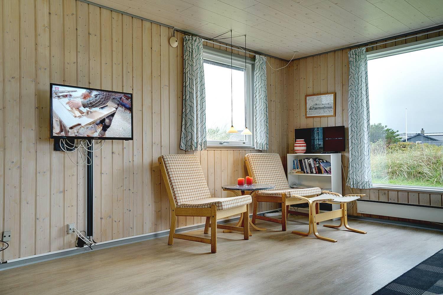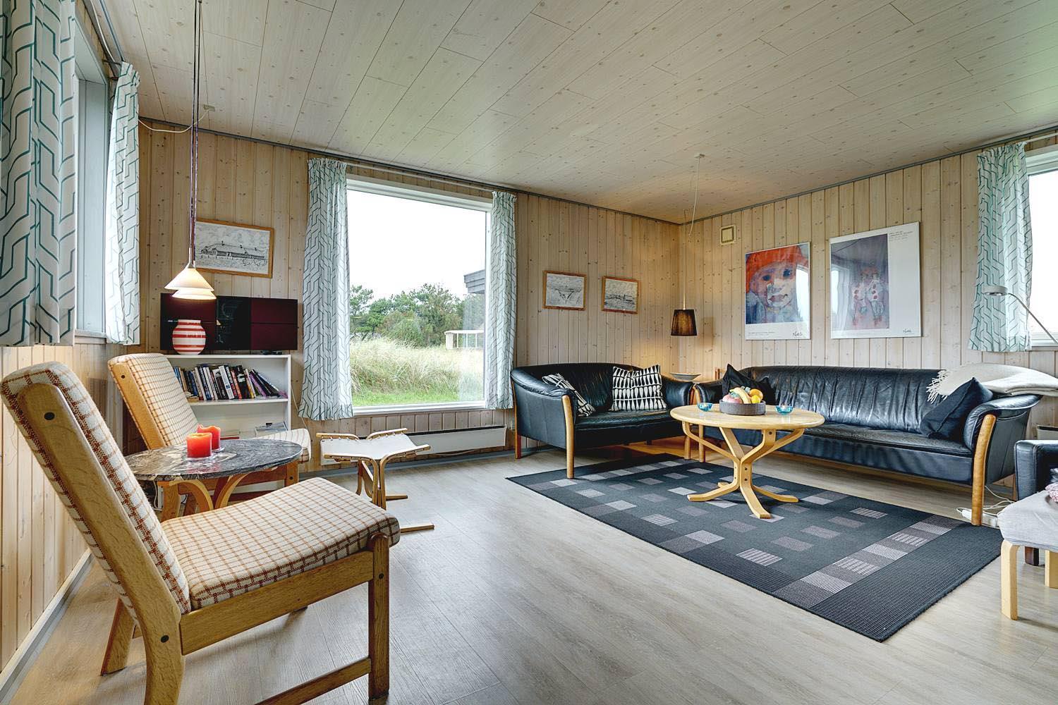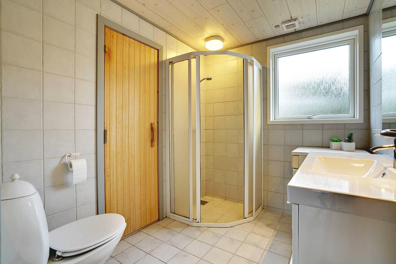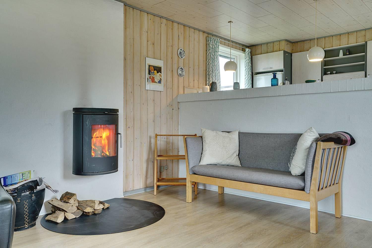 Rummeligt feriehus beliggende på en pragtfuld naturgrund i rolige omgivelser. Køkken ligger i åben forbindelse med den hyggelig stue med brændeovn. Overalt er huset indrettet i lyse, venlige farver. Der er flere skønne terrasser hvoraf den ene er overdækket, og en der er helt lukket. Her er altid mulighed for at finde læ.