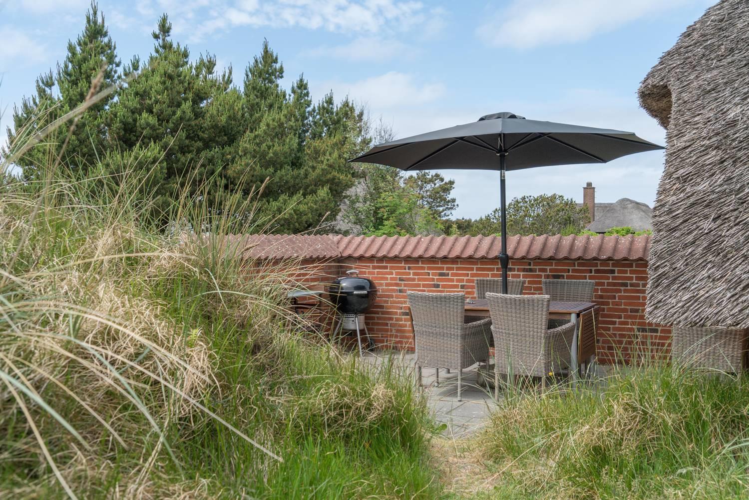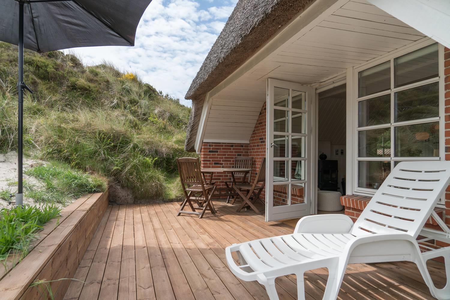 De tre terrasser giver rig mulighed for at nyde udendørslivet i private omgivelser. Start dagen med morgenkaffen på én terrasse, slap af med en bog på en anden, og afslut dagen med en hyggelig grillaften under åben himmel. Her er masser af plads til at nyde naturen og Vesterhavets friske luft.