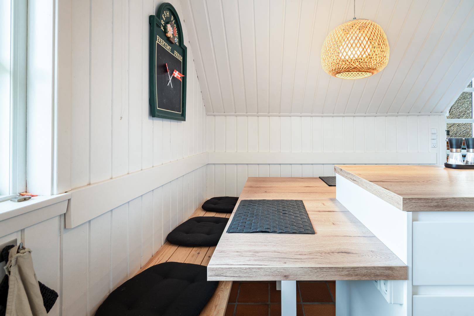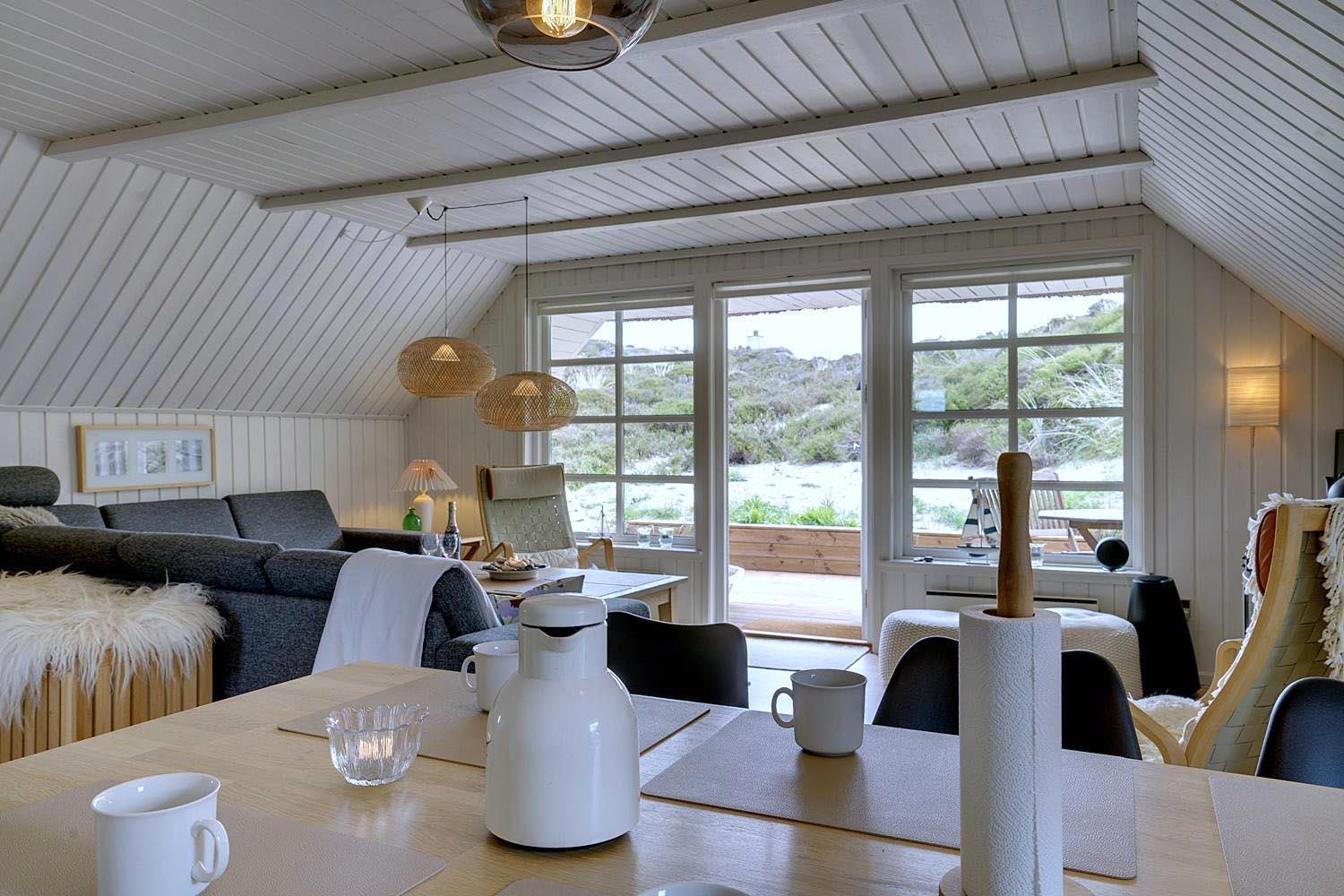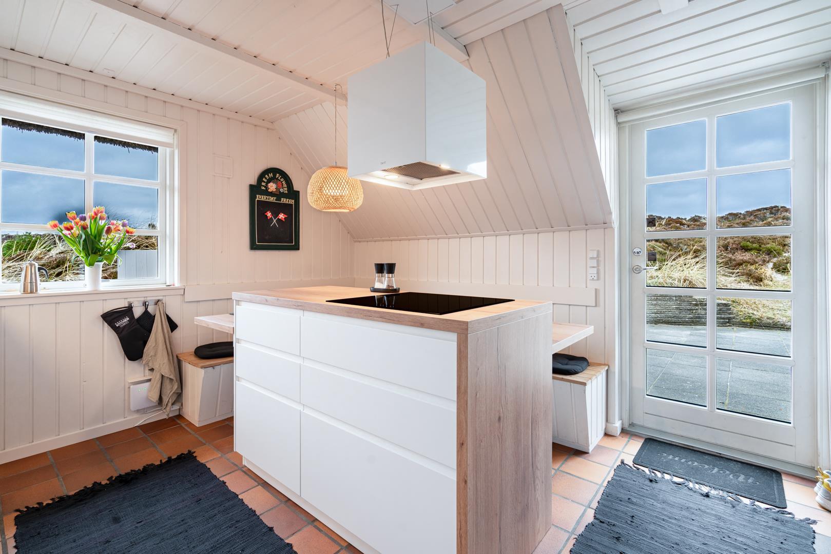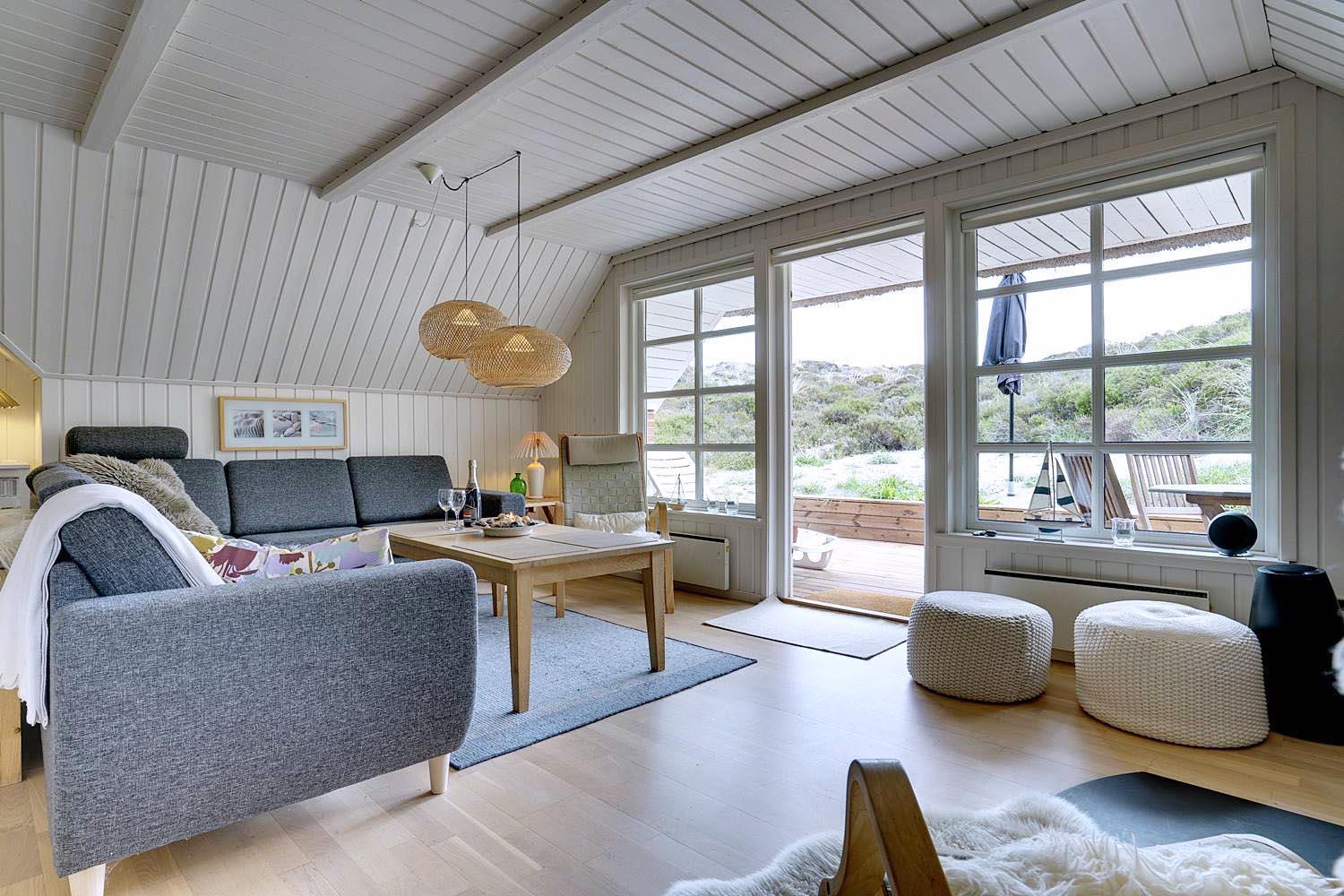 Huset fremstår lyst og venligt med en hyggelig stue, der er smagfuldt indrettet med komfortable møbler. Fra stuen er der direkte udgang til tre dejlige, ugenerte terrasser, hvor du kan følge solen dagen lang eller finde læ, når du ønsker det. Køkkenet er blevet opgraderet i 2022 med et lækkert, moderne design og alt, hvad du har brug for til at lave skønne feriemåltider.