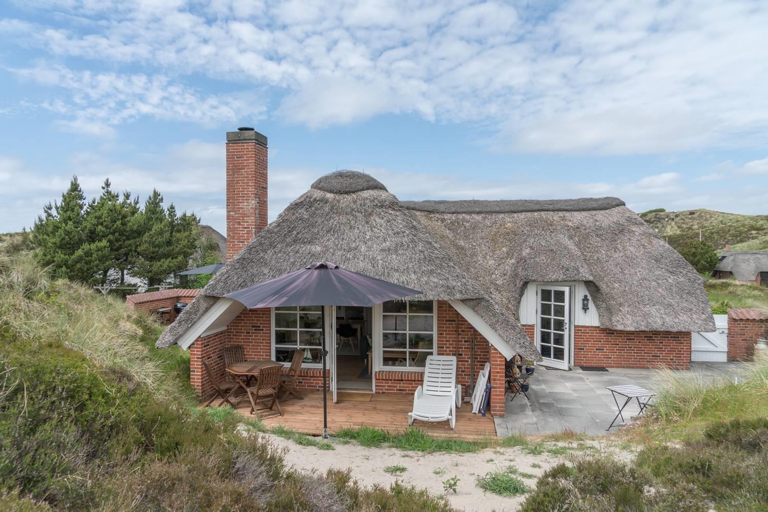 Dette charmerende og velholdte feriehus med stråtag er beliggende på Multebærvej 8 Henne Strand. Her kan du opleve ægte ferieidyl og nyde stilheden i smukke, naturlige omgivelser – langt væk fra hverdagens stress og jag.