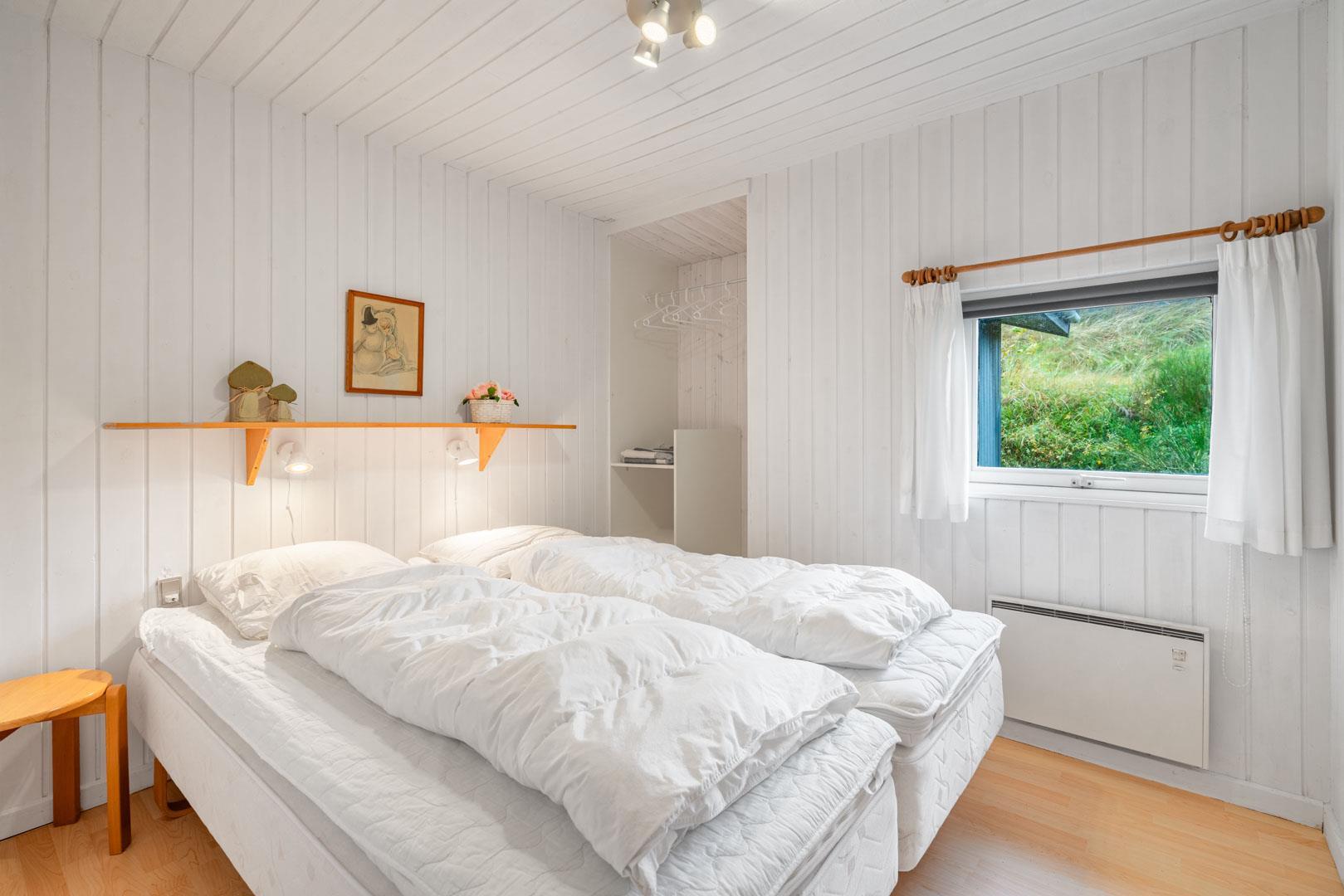 Dette hyggelige feriehus ligger på en dejlig, ugeneret stor klitgrund med gode læ forhold og meget tæt på stranden . Flot køkken som ligger i åben forbindelse til stor rummelig stue med brændeovn og indrettet med gode komfortable møbler. 3 gode soverum alle med dobbeltsenge.