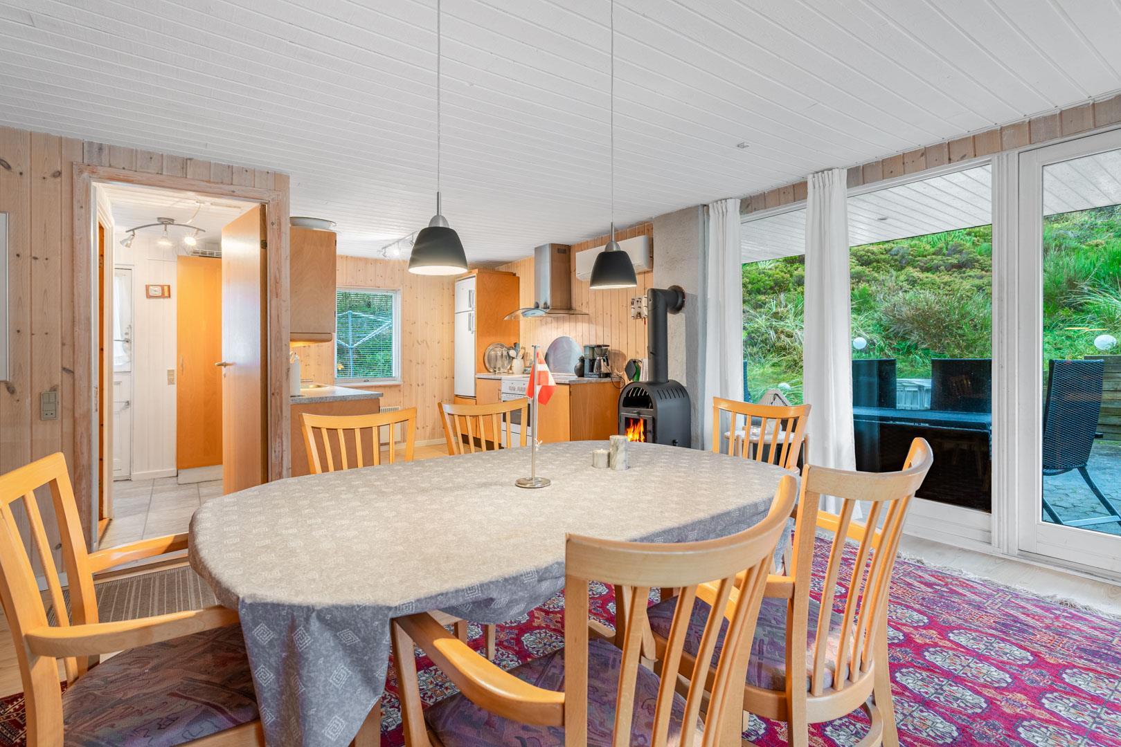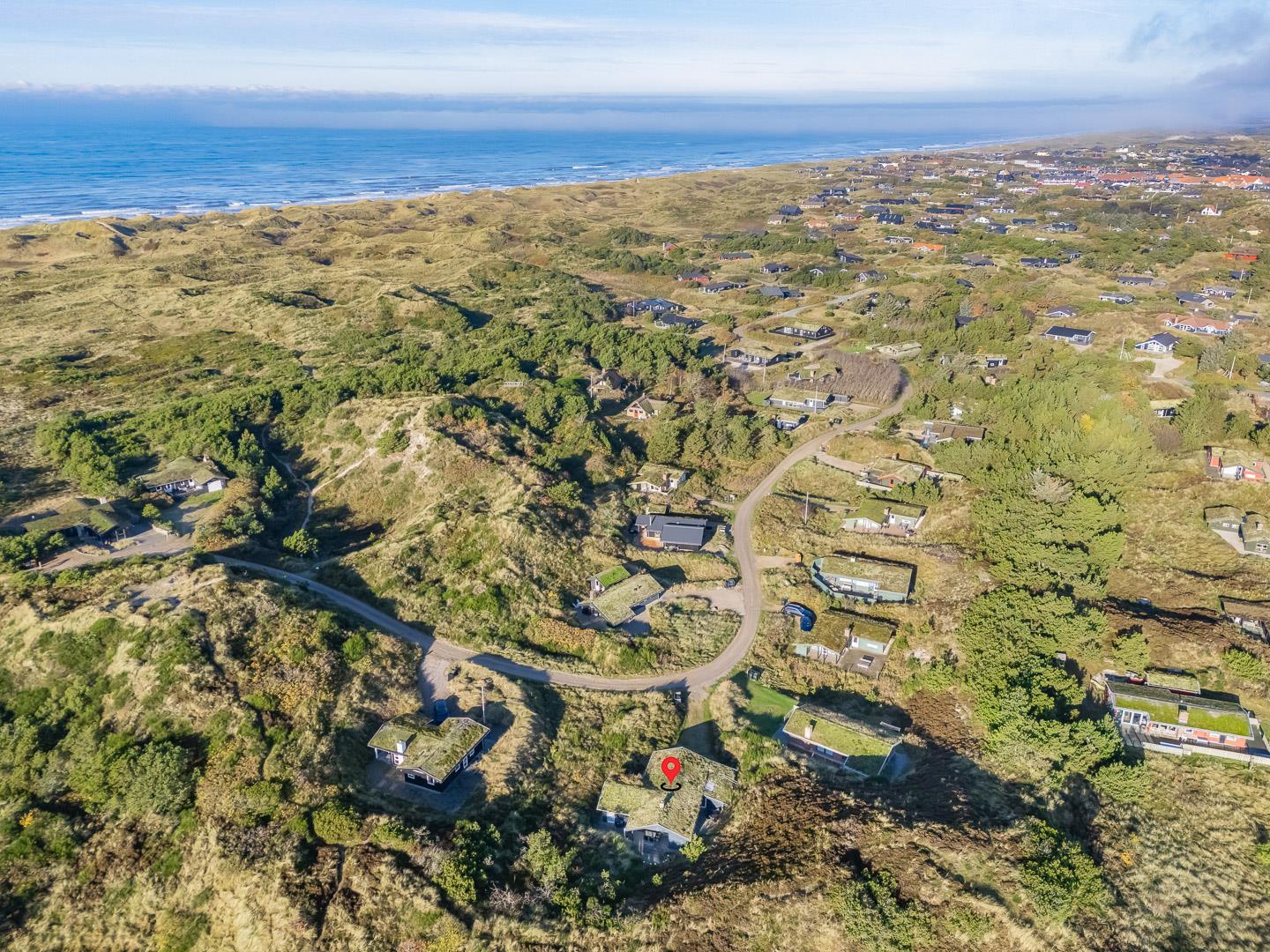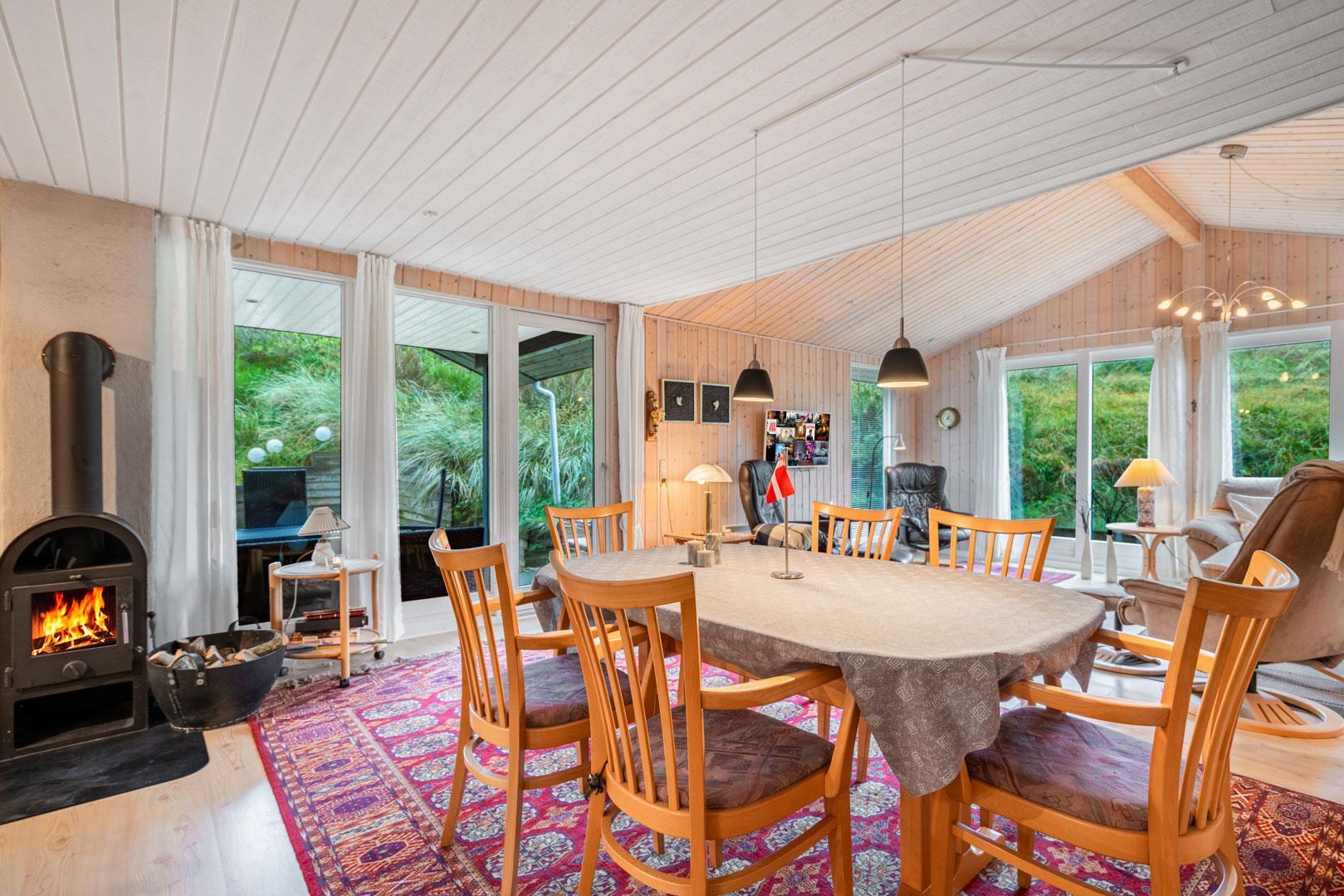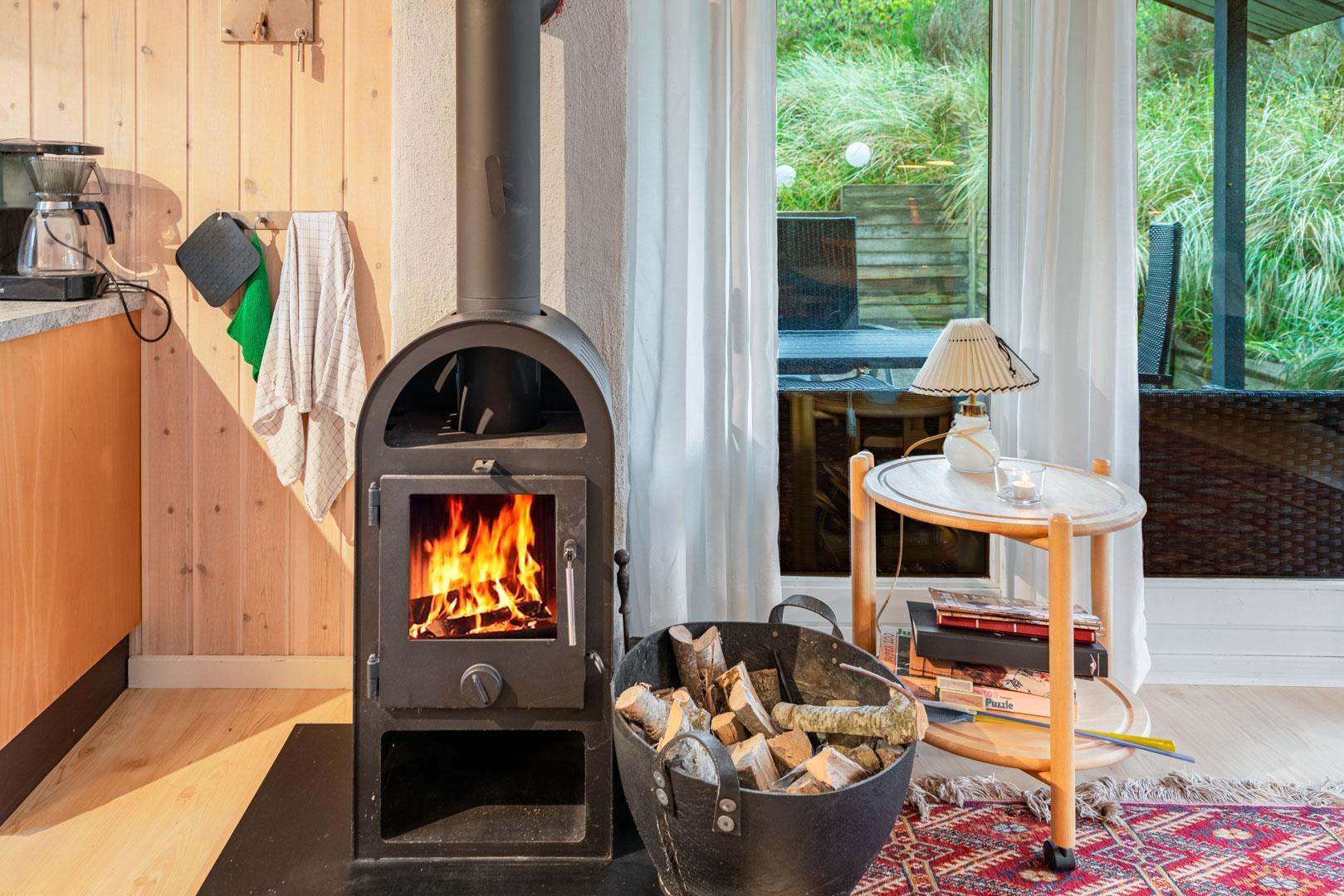 Hyggeligt feriehus tæt på stranden med stor klitgrund, brændeovn og moderne faciliteter til en afslappende ferie.