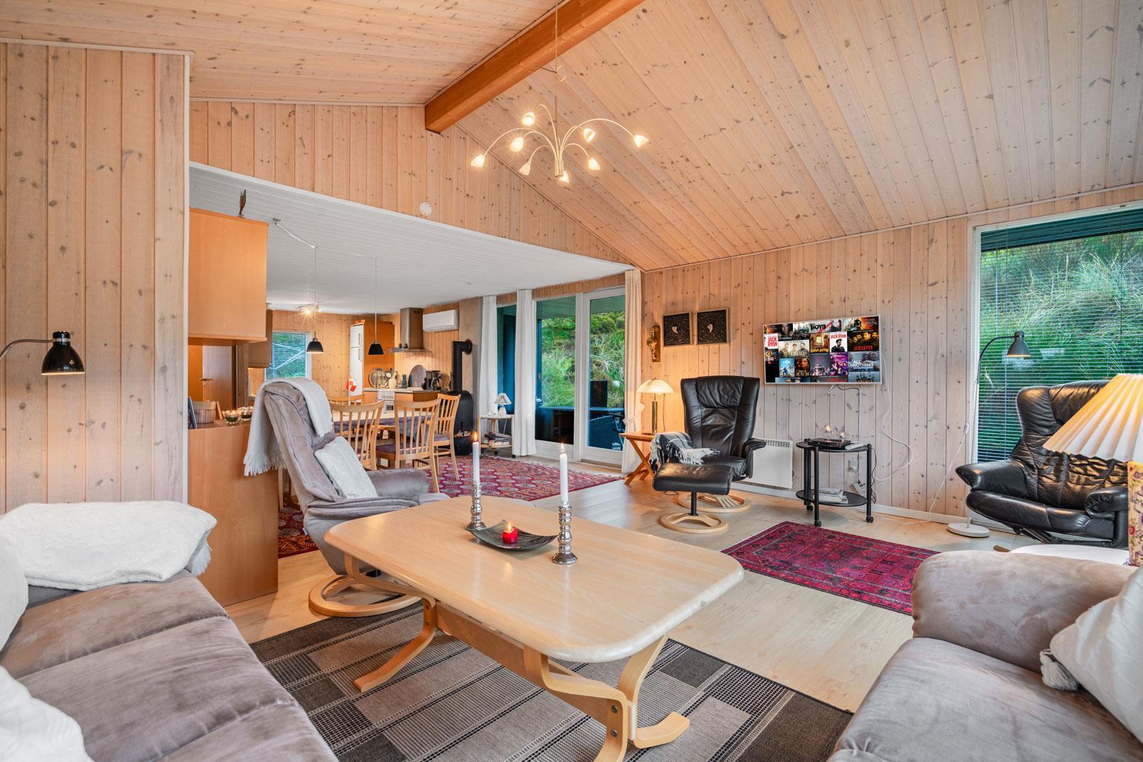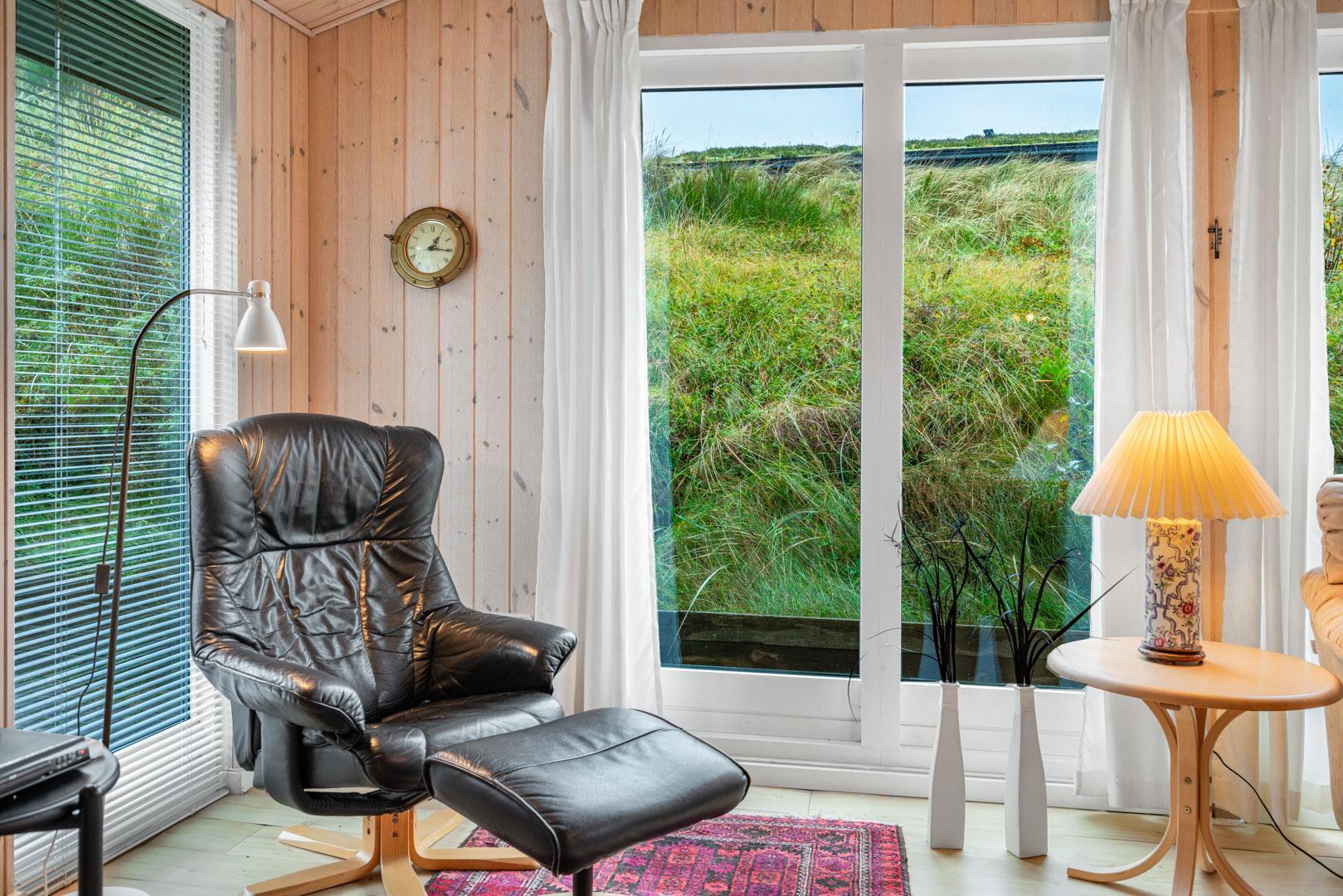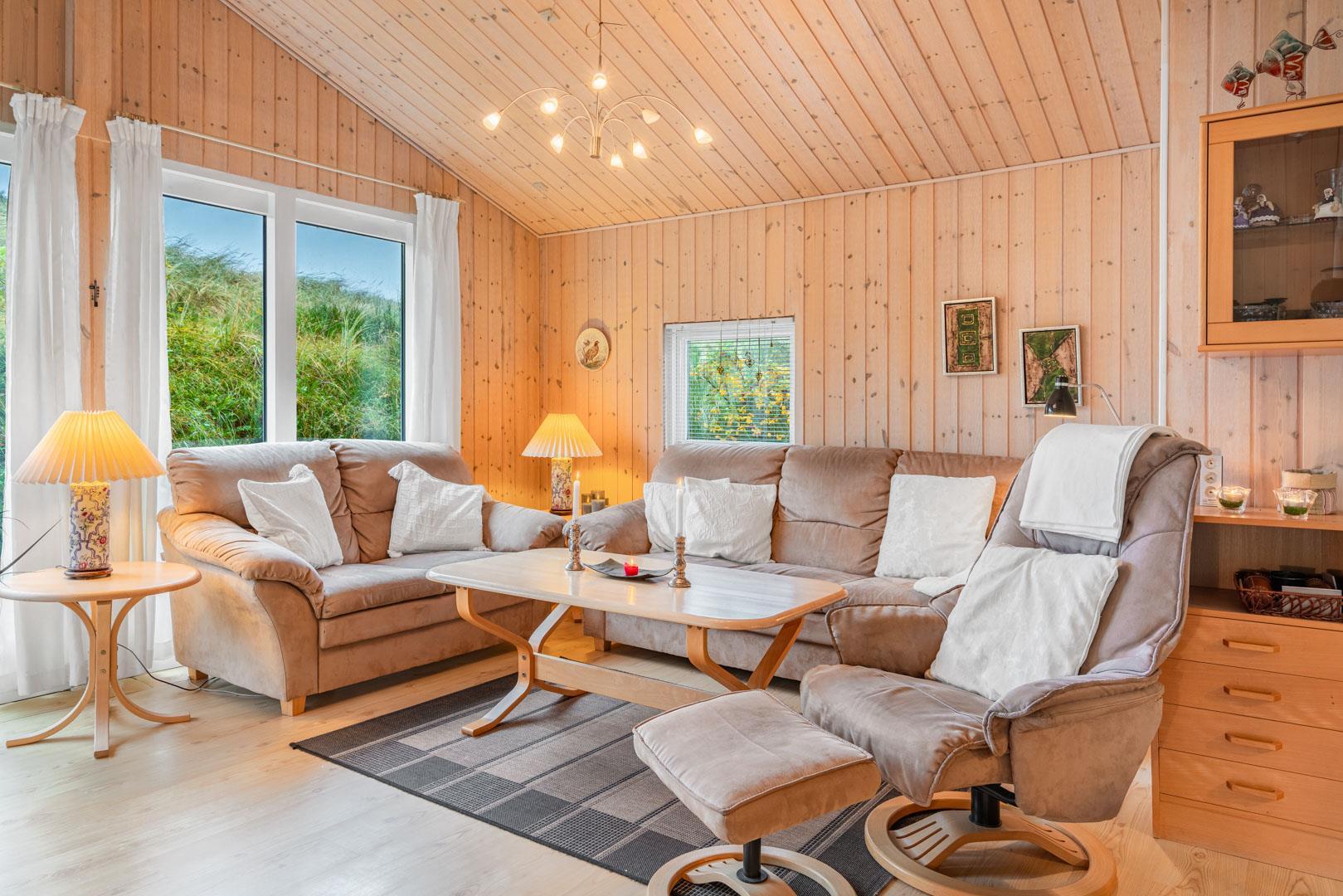 Hyggeligt feriehus tæt på stranden med stor klitgrund, brændeovn og moderne faciliteter til en afslappende ferie.