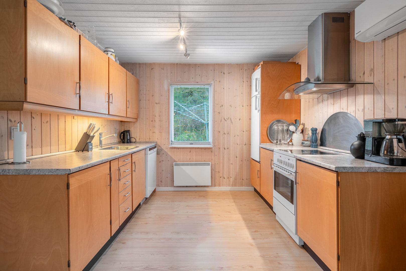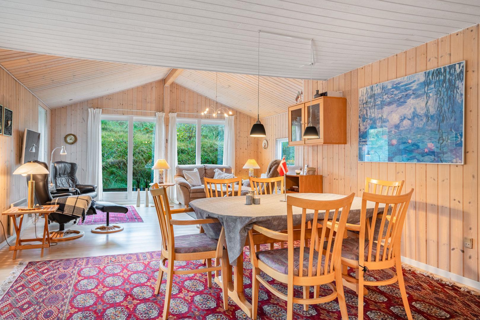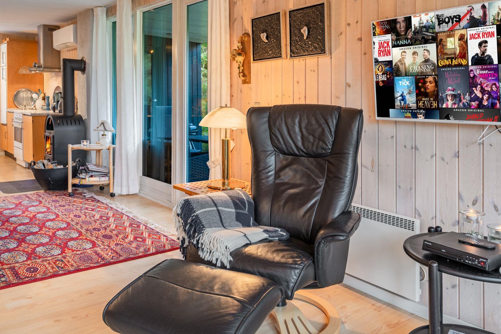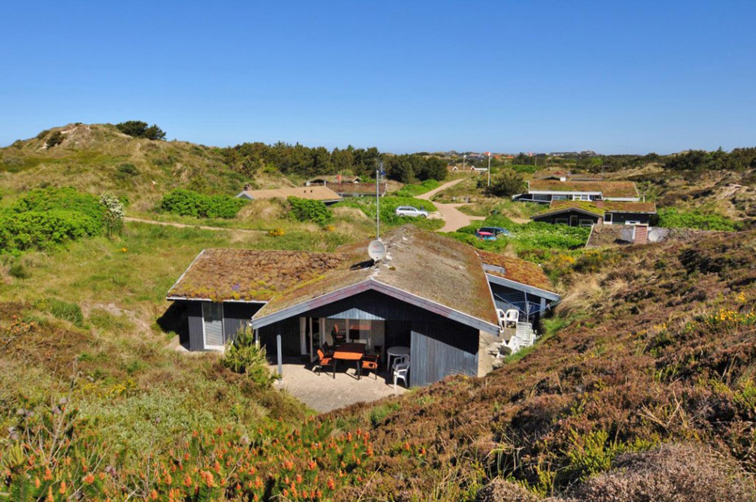 Hyggeligt feriehus tæt på stranden med stor klitgrund, brændeovn og moderne faciliteter til en afslappende ferie.
