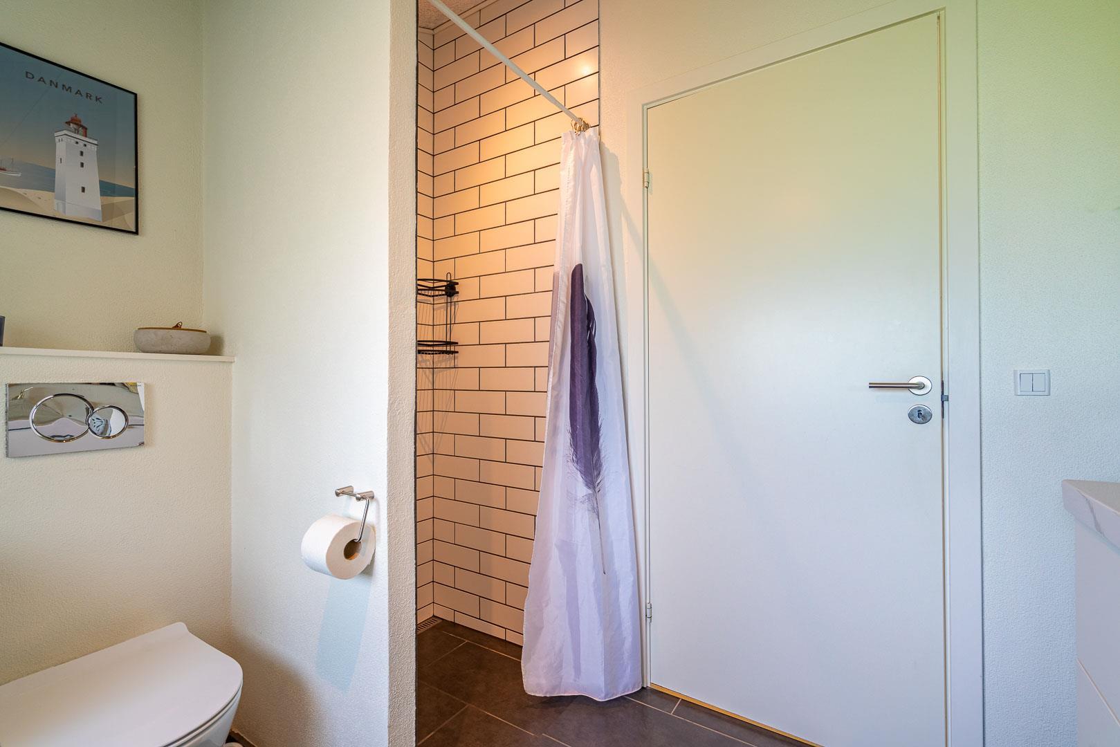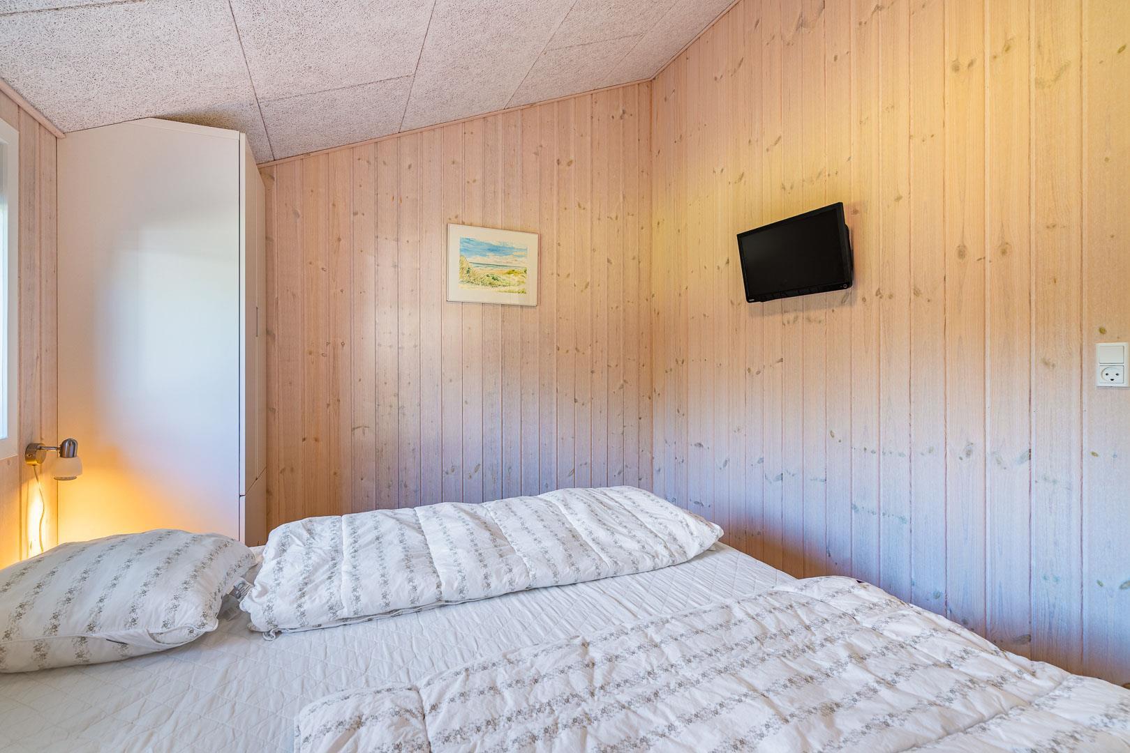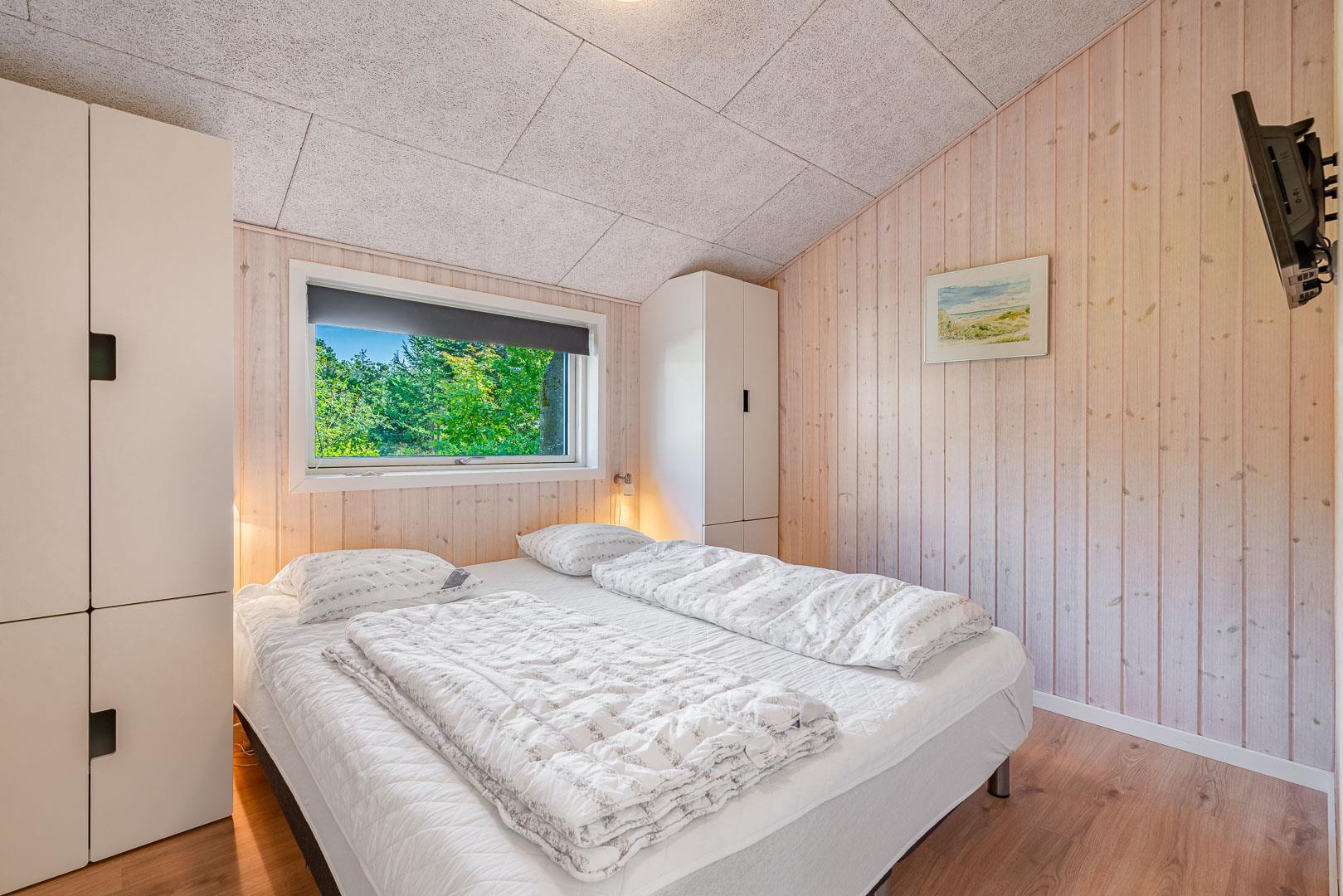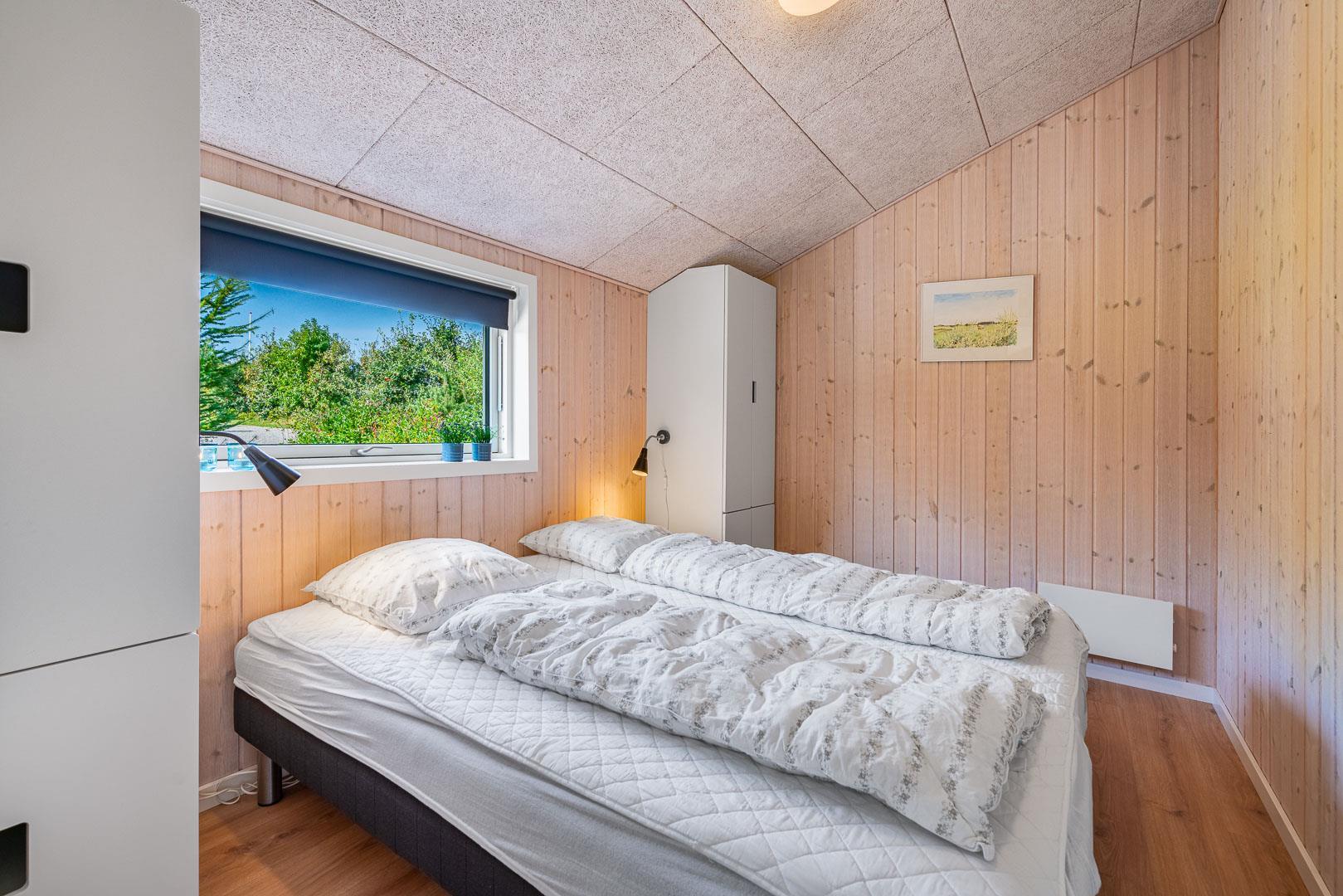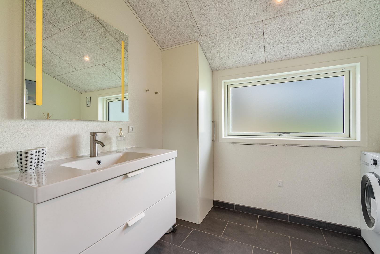 De tre lyse soveværelser, hvoraf to er udstyret med dobbeltsenge og et med to enkeltsenge samt badeværelse med vaskemaskine fuldender ferieboligens indretning og sikrer, at alle feriegæster føler sig hjemme og godt tilpas.