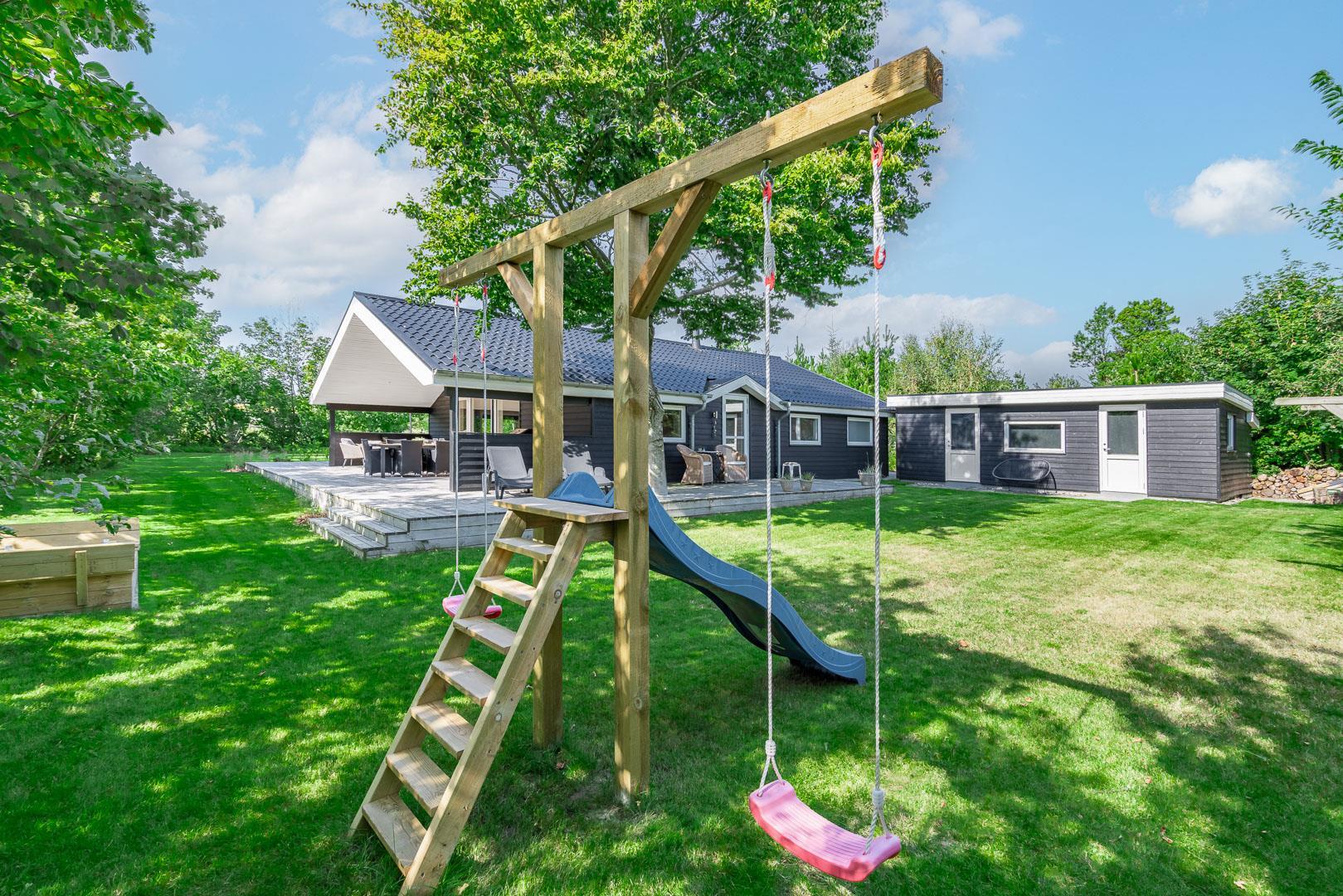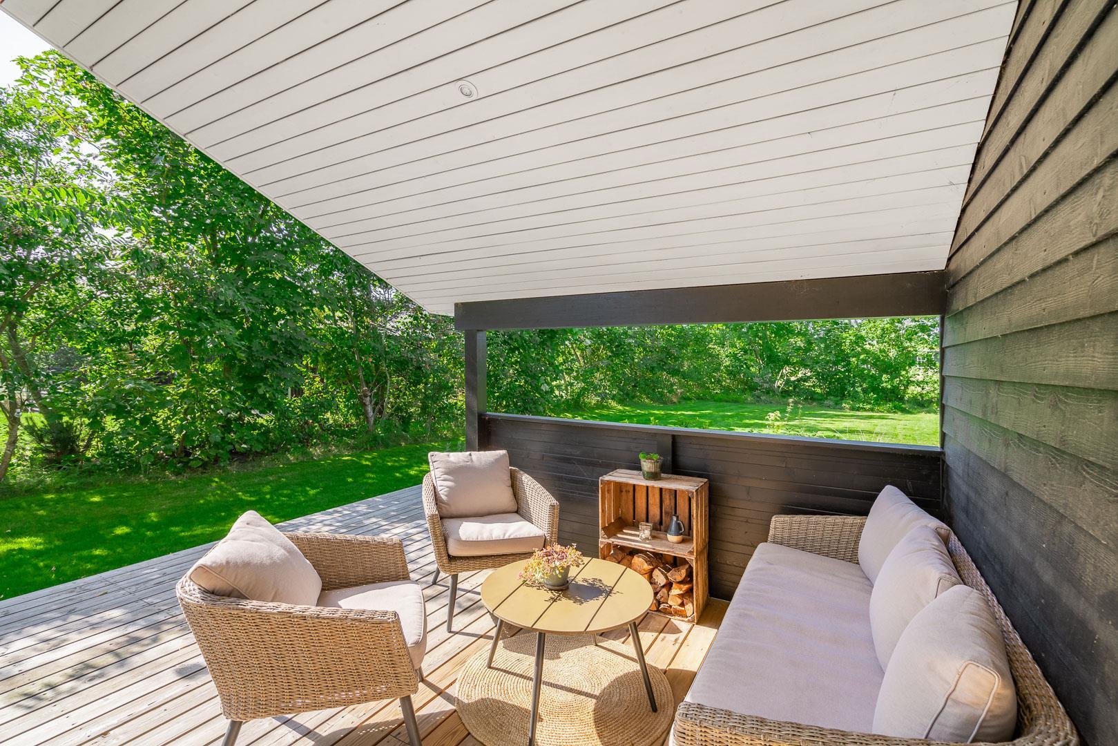 Udenfor venter en skøn grund med rigeligt plads til leg og boldspil, så både børn og voksne kan nyde det udendørs liv i fulde drag. Med kort afstand til områdets fine golfbane og Henne Strand, en af Vestkystens mest betagende badestrande, er dette sommerhus det perfekte udgangspunkt for en uforglemmelig ferieoplevelse.