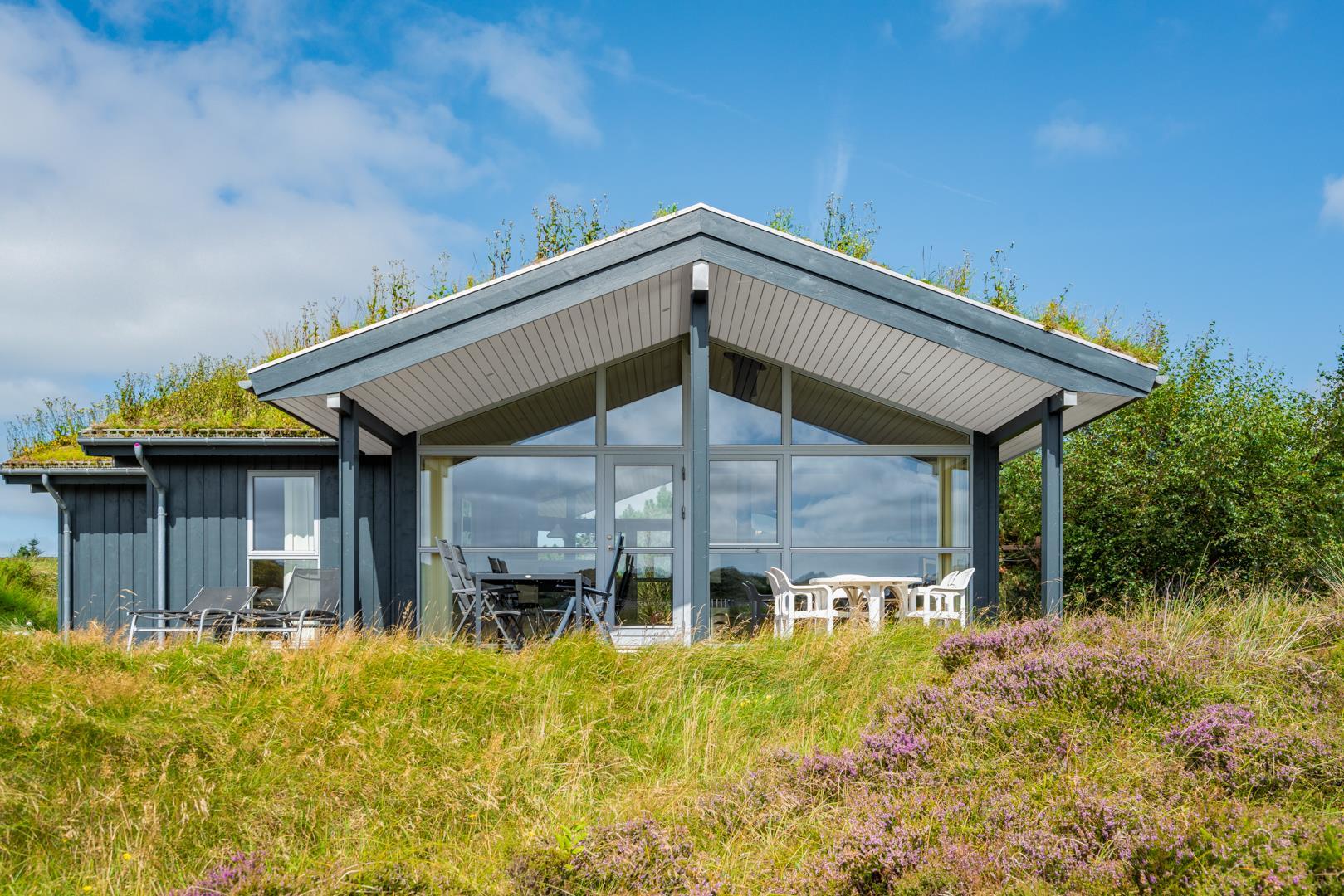 Dette charmerende sommerhus på 92 m² byder på alt, hvad der skal til for en afslappende ferie med ægte skandinavisk hygge – brændeovn, sauna, spabad og en fantastisk udsigt over klitterne.