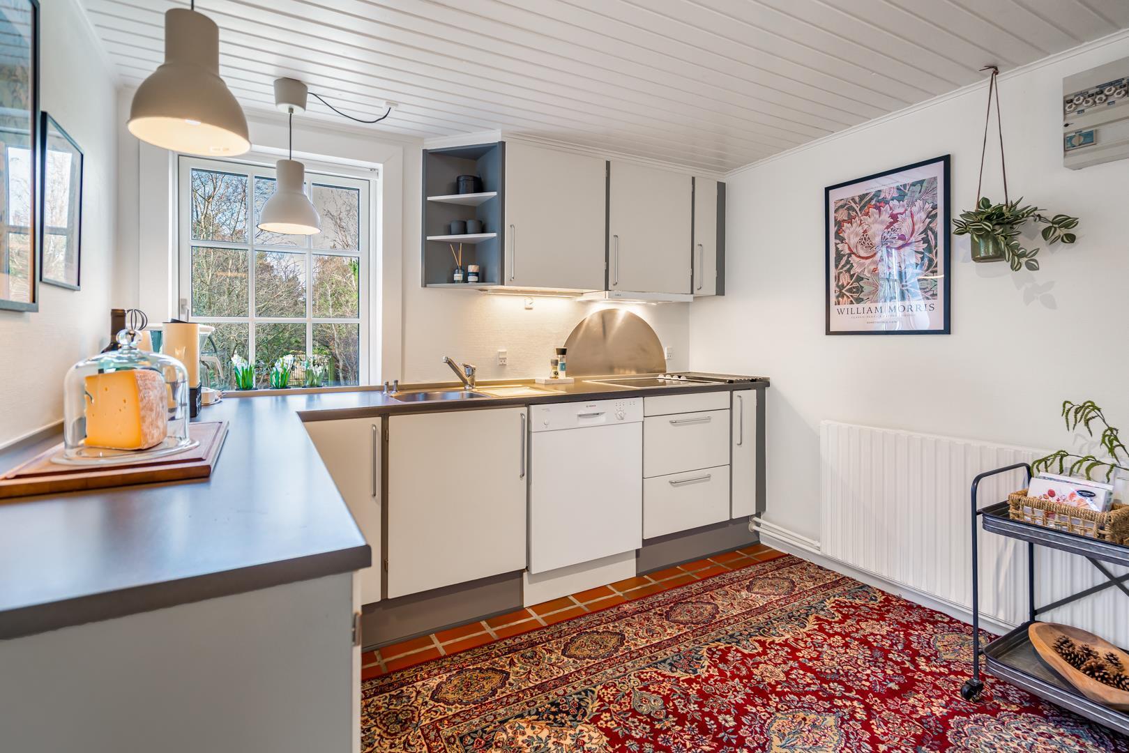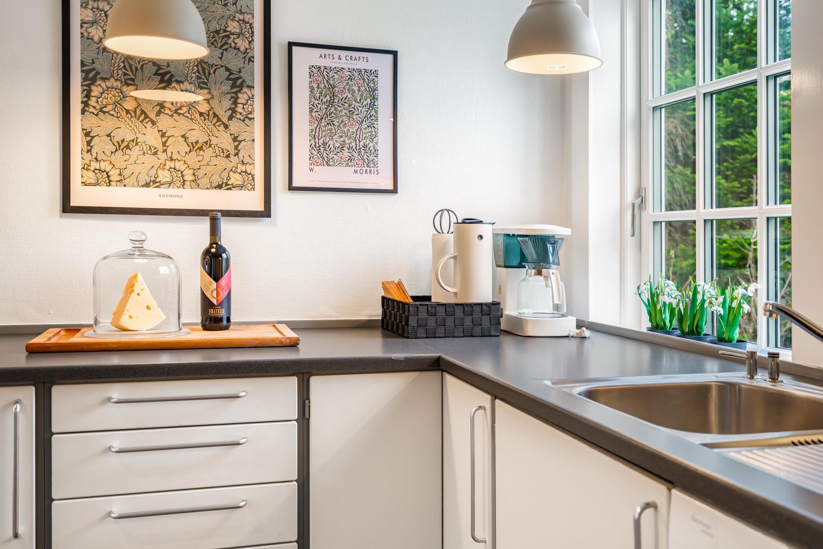 I det moderne køkken finder I både opvaskemaskine og god bordplads – ideelt til fælles madlavning og hyggelige måltider sammen.