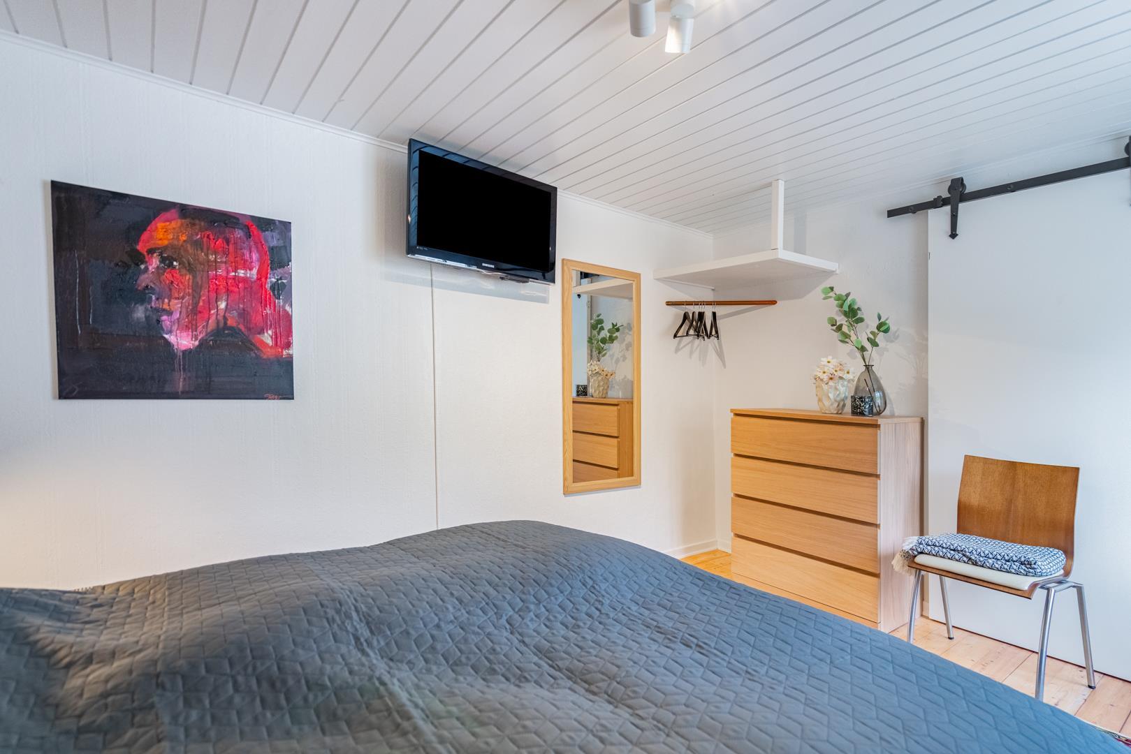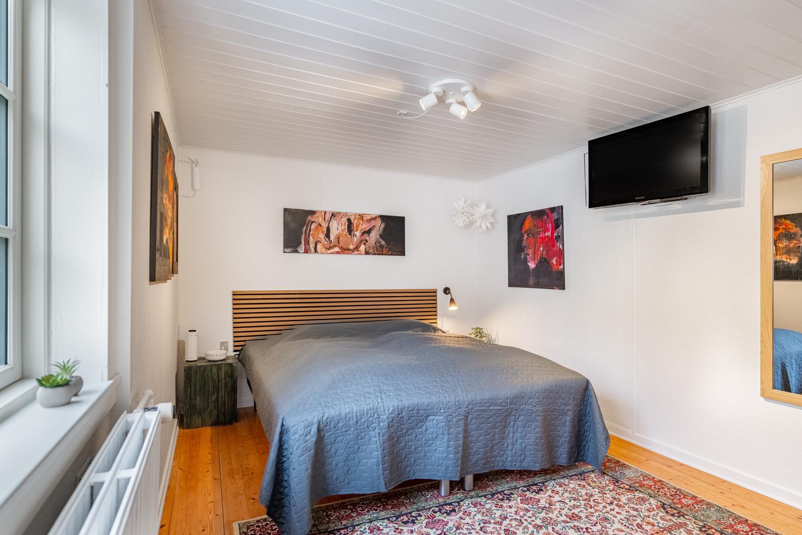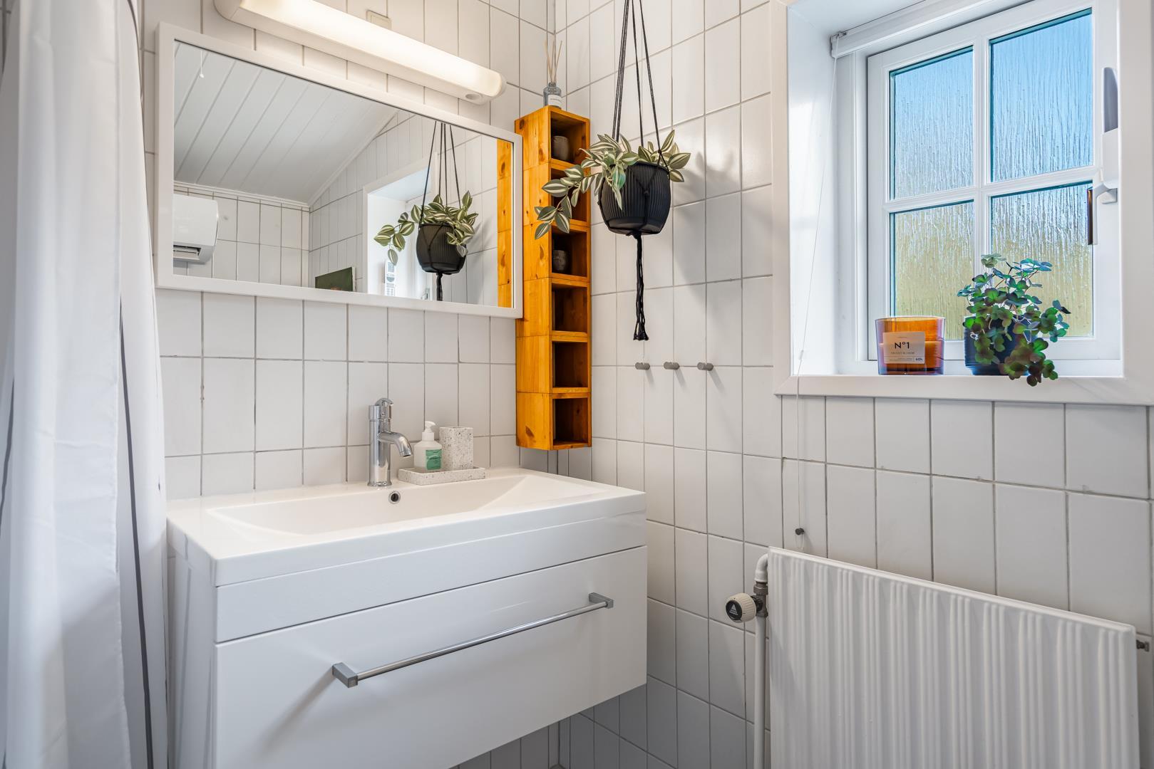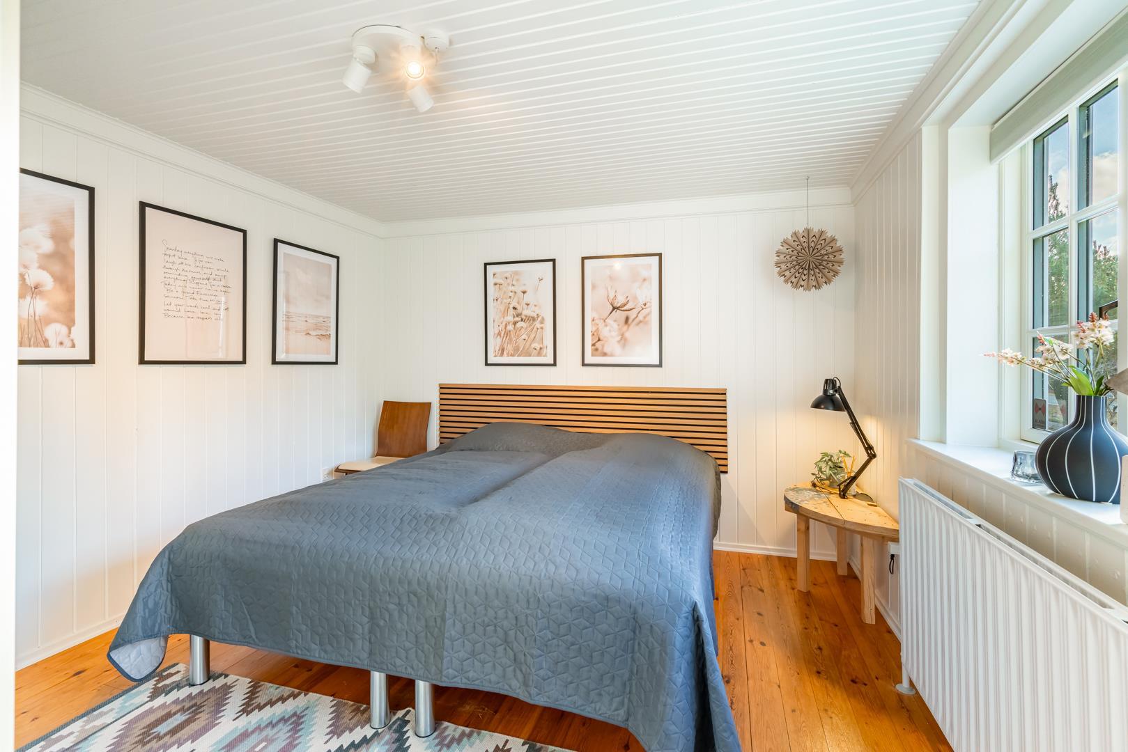 Sommerhuset har to gode soveværelser med komfortable dobbeltsenge (180 x 200 cm). Her er god plads til både par, børnefamilier og vennepar. Badeværelset er praktisk indrettet, og vandforbruget er allerede inkluderet i lejen – en ekstra lille fordel.