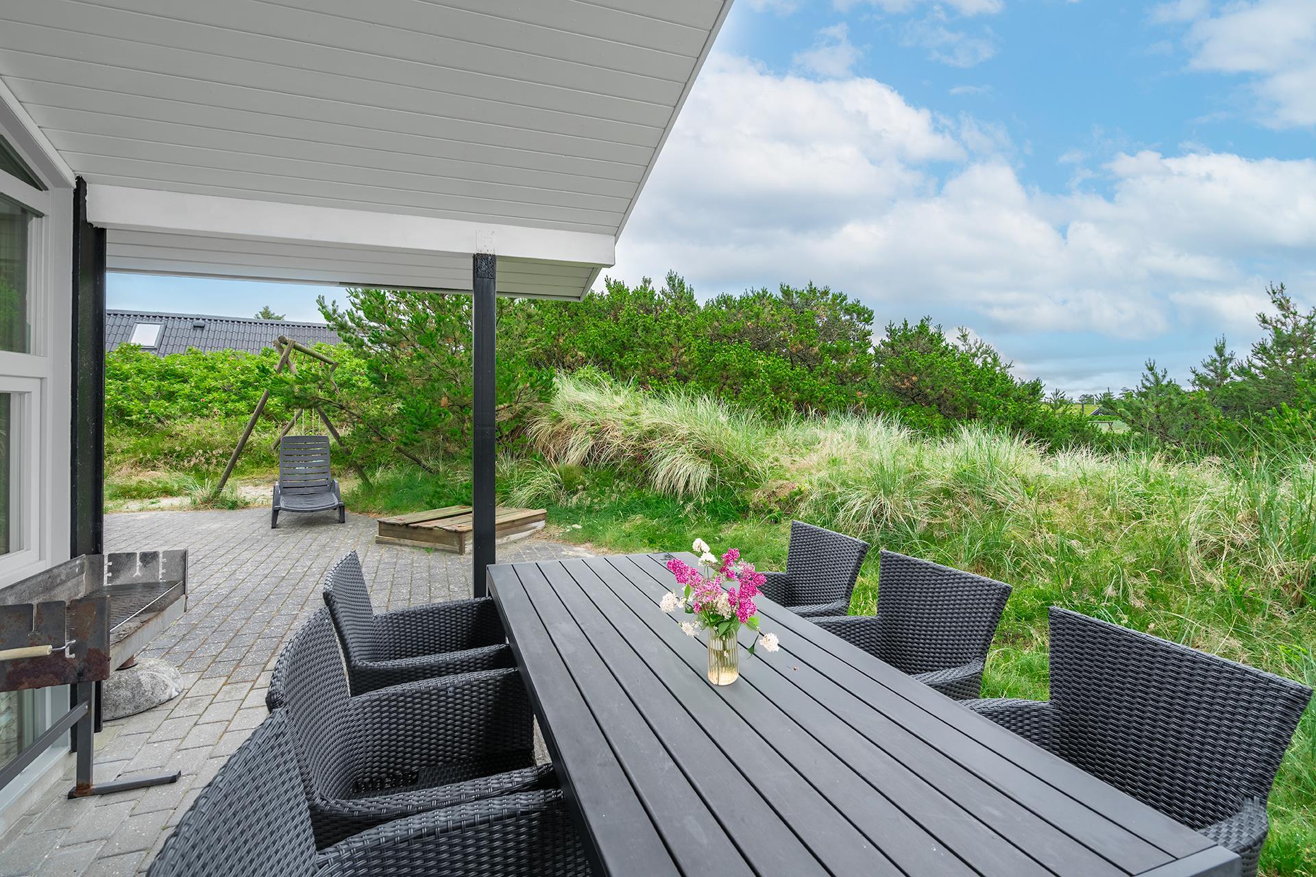 Oplev dette indbydende sommerhus, der ligger på en dejlig grund midt imellem marehalm og klitter, og lad dig fortrylle af den fredelige atmosfære og det beroligende brusen fra havet i baggrunden.