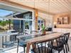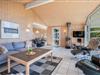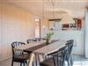 Feriehuset er lyst og velindrettet, og byder dig velkommen med åbne arme, med lyse farver og skønne møbler der skaber en følelse af harmoni og ro. Køkkenet, der smelter sammen med stuen, inviterer til hyggelige stunder og fælles måltider. I stuen finder du desuden brændeovnen der sørger for at skrue ekstra op for hyggen. Herfra er der udgang til de skønne terrasser, hvor der er gode muligheder for at finde læ og nyde naturens skønhed året rundt. Ved terrassen finder du et gyngestativ og en sandkasse – god underholdning til de mindste feriegæster.