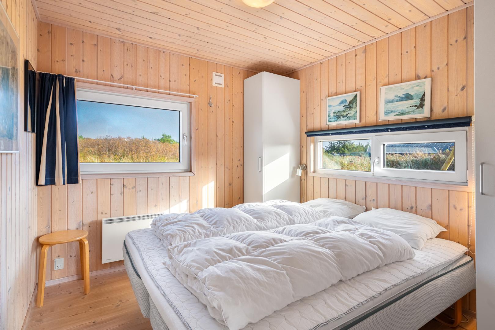 På en pragtfuld og ugeneret grund ved fredningslinien ud til stort fredet klitområde ligger dette skønne feriehus. Huset er hyggeligt og personligt indrettet. Der er både overdækket og åbne terrasser, hvorfra den fantastiske udsigt over klitterne kan nydes. Foretrækker ikke ryger.