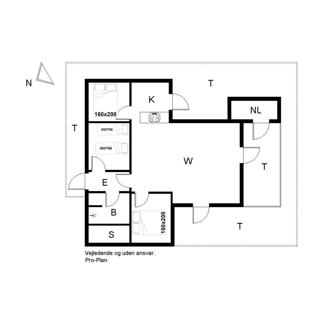 Sengestørrelser: 2 dobbeltsenge 160x200 cm. + 2 enkeltsenge 90x200 cm.