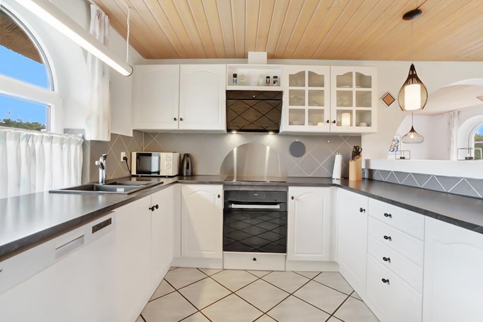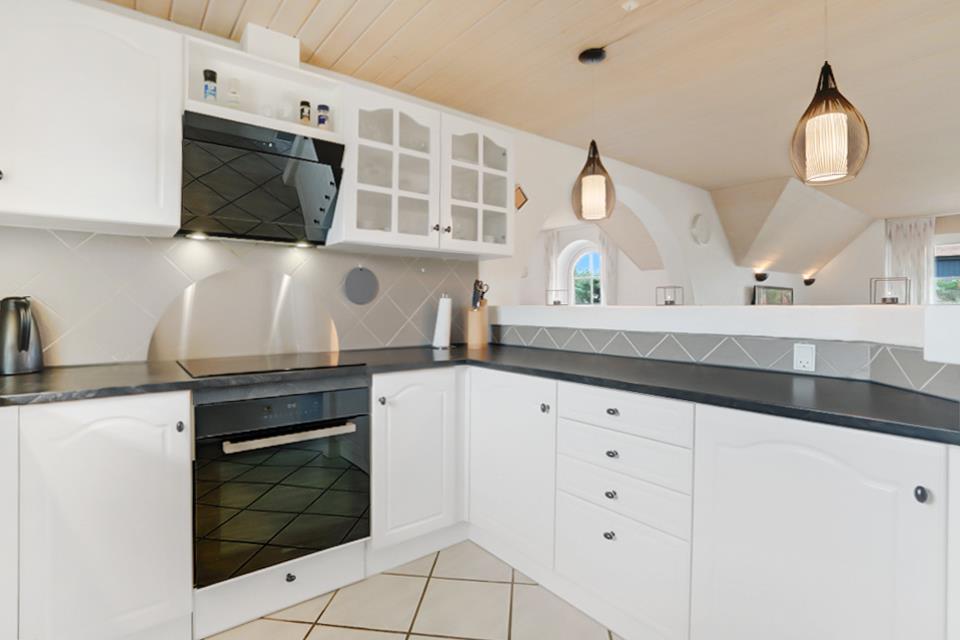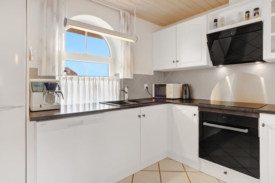 Køkkenet er moderne udstyret og gør madlavningen til en fornøjelse. Opvaskemaskine, vaskemaskine og tørretumbler gør opholdet nemmere og er praktiske, især ved længere ferier.