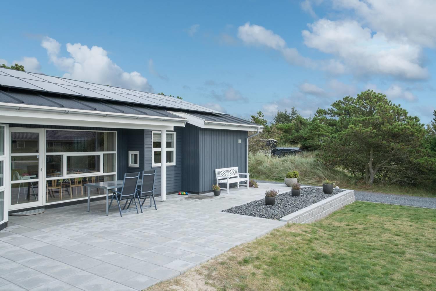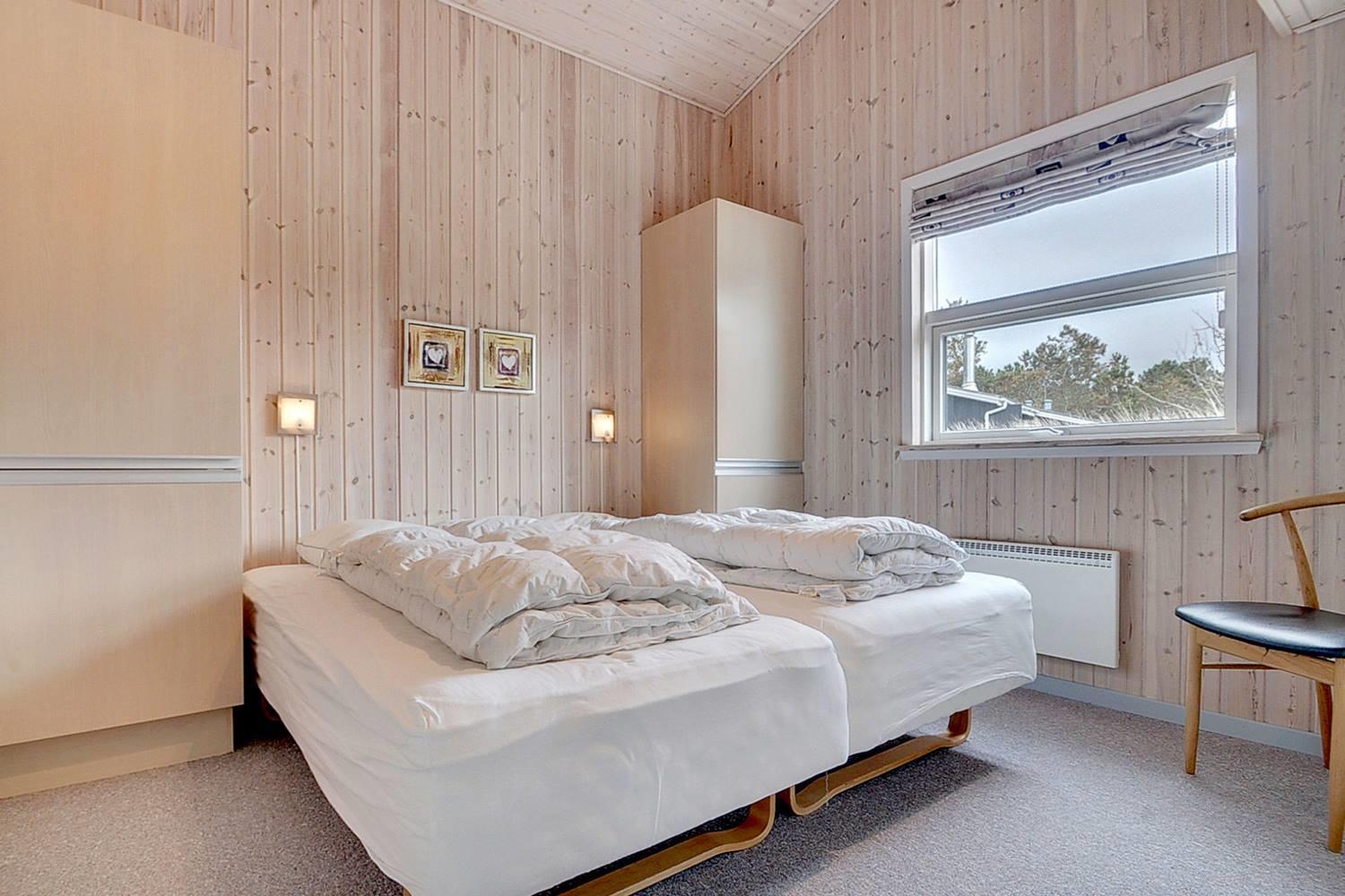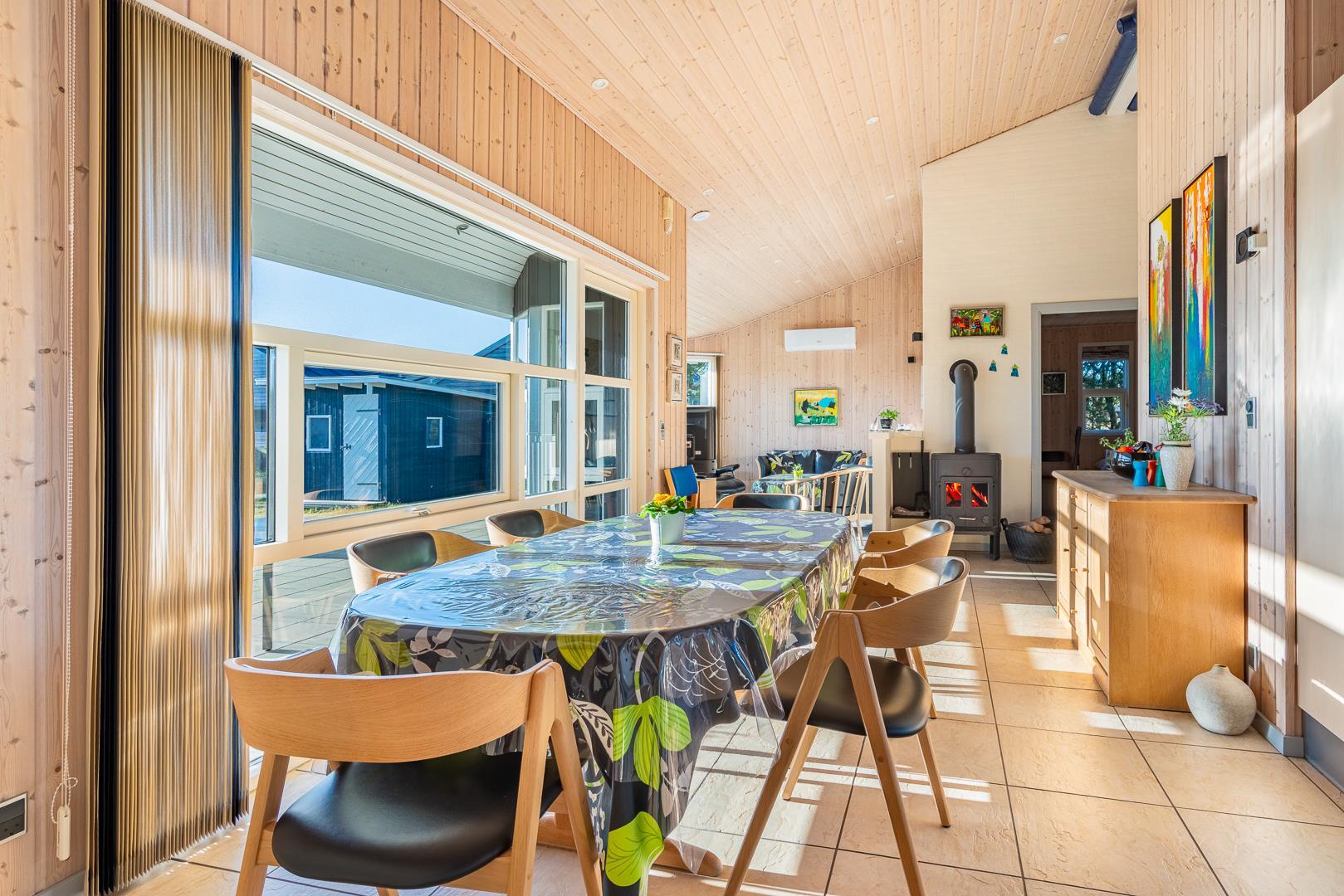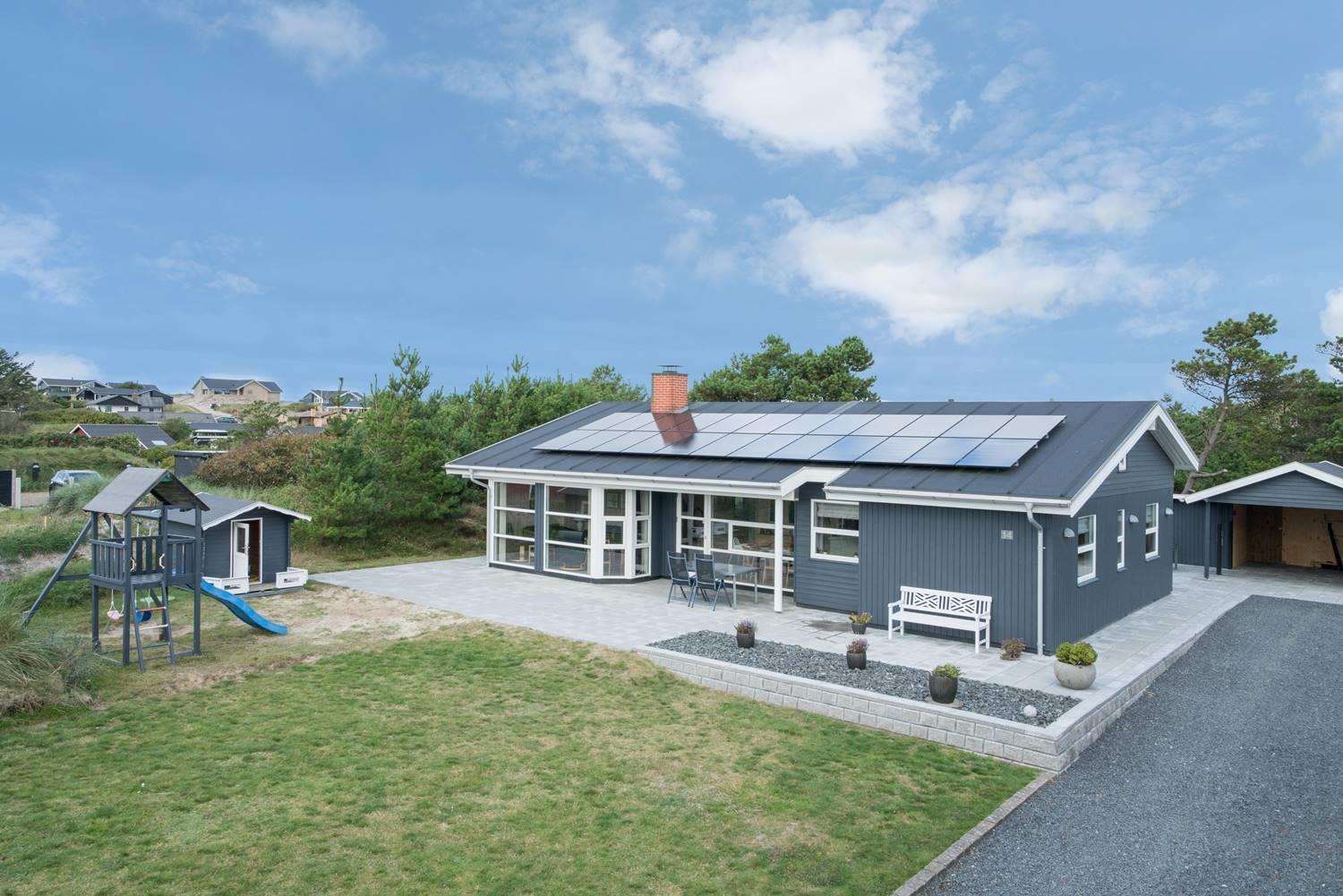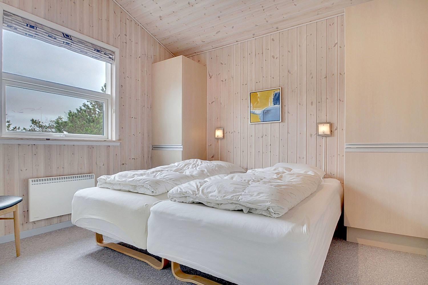 På en skøn naturgrund i roligt område - tæt på by og hav - ligger dette velholdte sommerhus med 4 værelser. Alle senge er kvalitets boxmadrasser. Der er 2 gode badeværelser med bruser og gulvvarme, det ene råder over stor sauna. Skøn, lys spisestue i åben forbindelse med veludstyret køkken, hvorfra den flotte udsigt over området kan nydes. Der er et lille kontor med både Wi-Fi og kablet net forbindelse. Hems med TV. Huset har endvidere et ventilationsanlæg, der sørger for et godt indeklima samt IHC (Flex-Control). Hoveddøren åbnes med en kode, som udleveres af Købmand Hansens Feriehusudlejning. Bagved huset er der dejlig og ugenert solterrasse. Huset vedligeholdes løbende for at sikre gæsterne en god ferie.