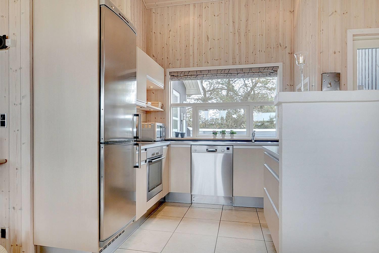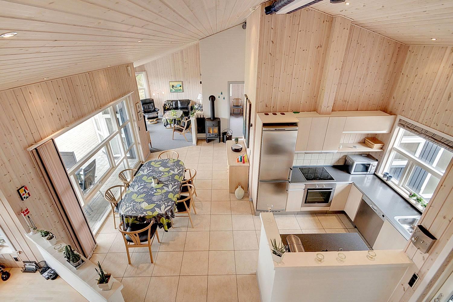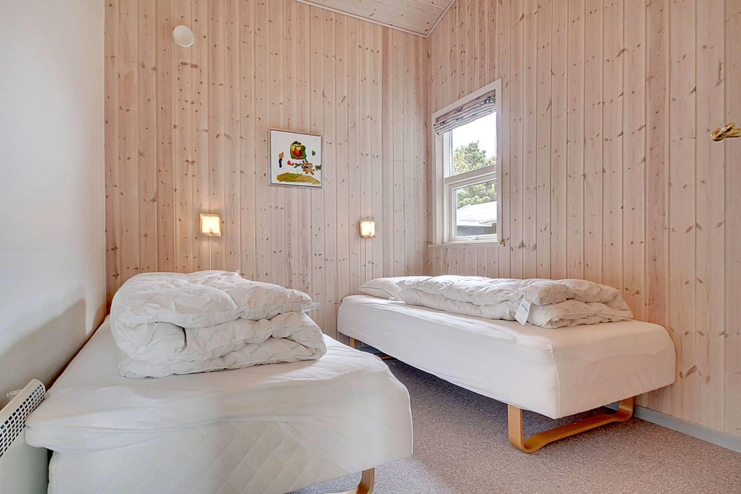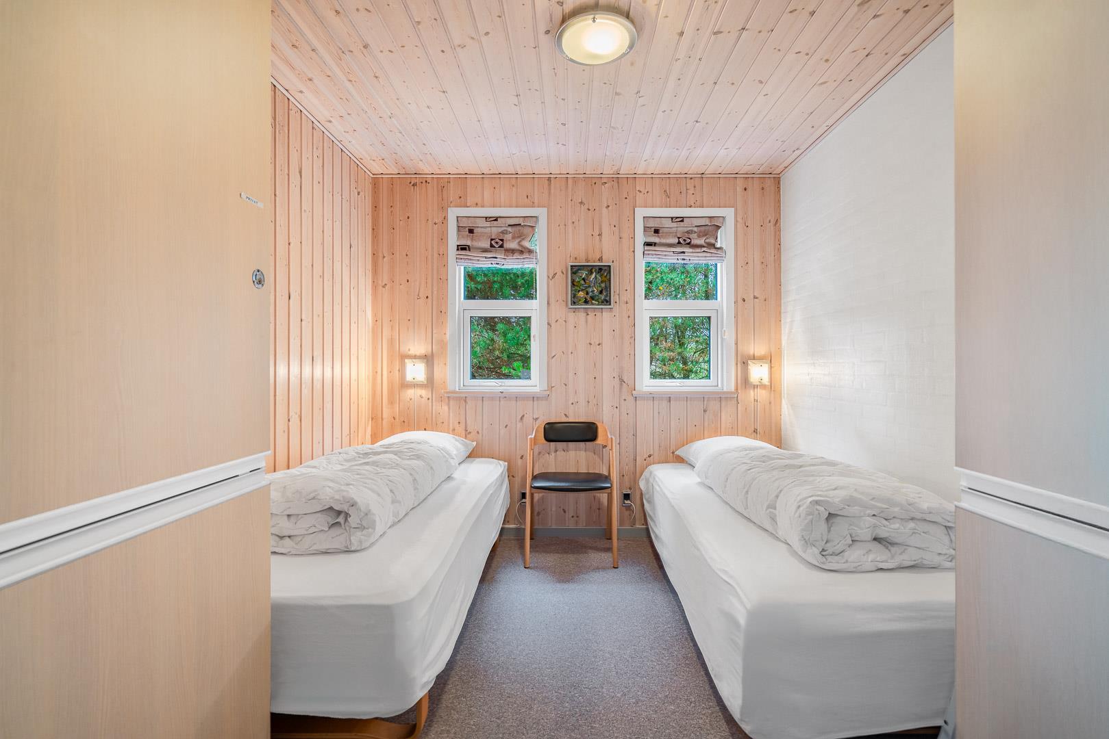 På en skøn naturgrund i roligt område - tæt på by og hav - ligger dette velholdte sommerhus med 4 værelser. Alle senge er kvalitets boxmadrasser. Der er 2 gode badeværelser med bruser og gulvvarme, det ene råder over stor sauna. Skøn, lys spisestue i åben forbindelse med veludstyret køkken, hvorfra den flotte udsigt over området kan nydes. Der er et lille kontor med både Wi-Fi og kablet net forbindelse. Hems med TV. Huset har endvidere et ventilationsanlæg, der sørger for et godt indeklima samt IHC (Flex-Control). Hoveddøren åbnes med en kode, som udleveres af Købmand Hansens Feriehusudlejning. Bagved huset er der dejlig og ugenert solterrasse. Huset vedligeholdes løbende for at sikre gæsterne en god ferie.