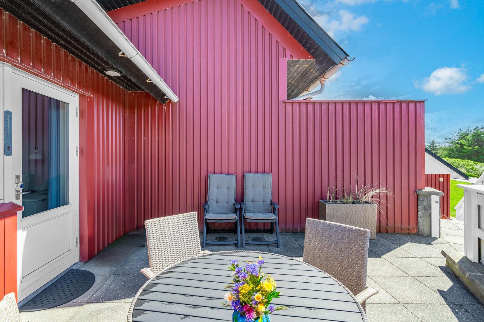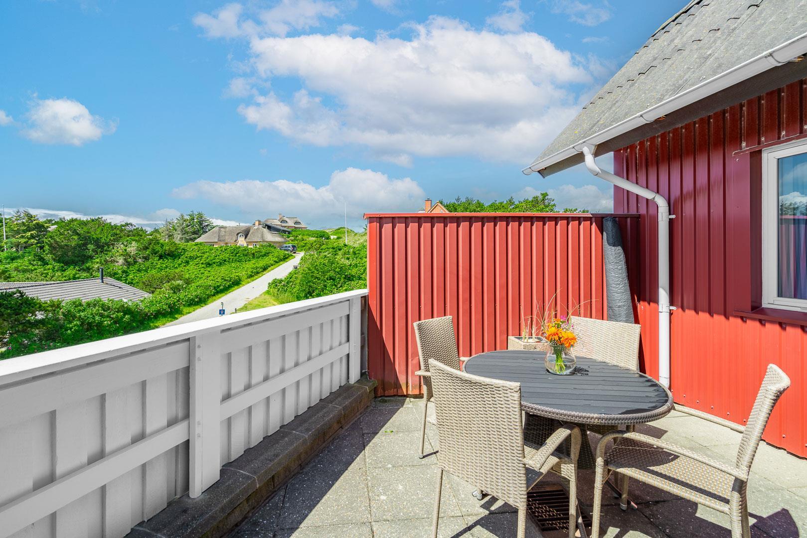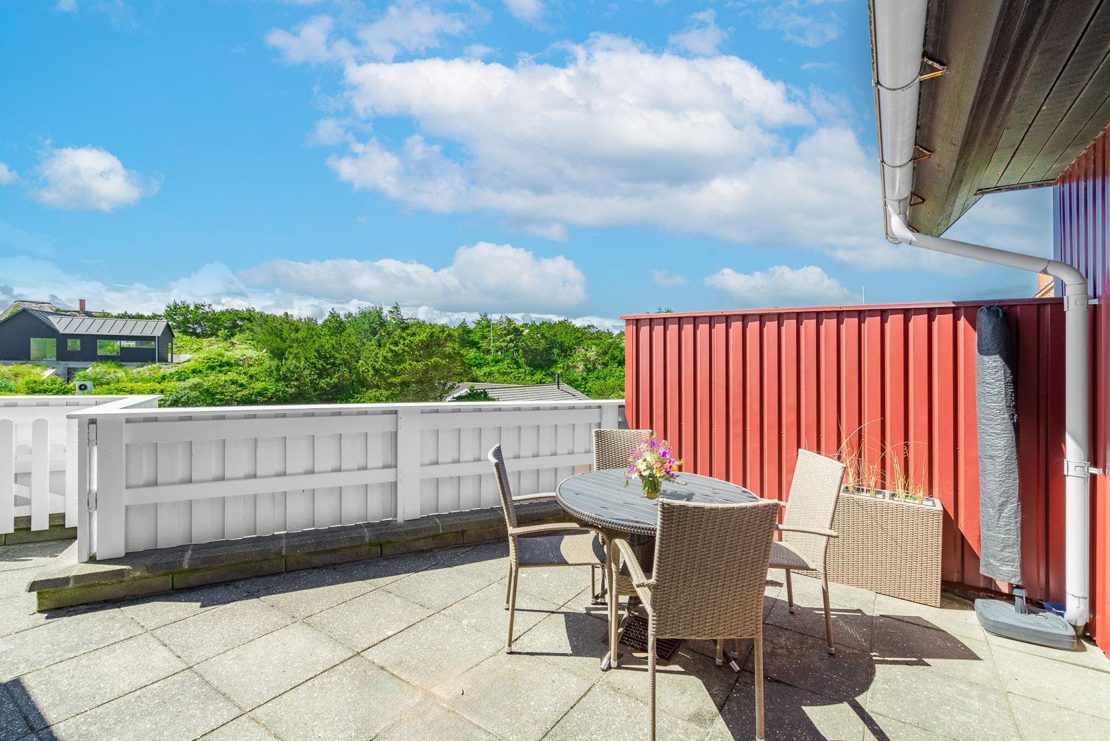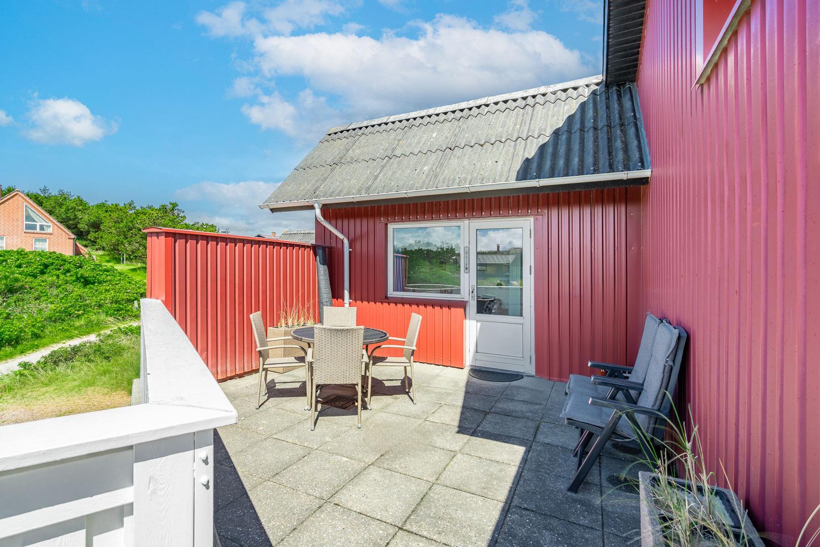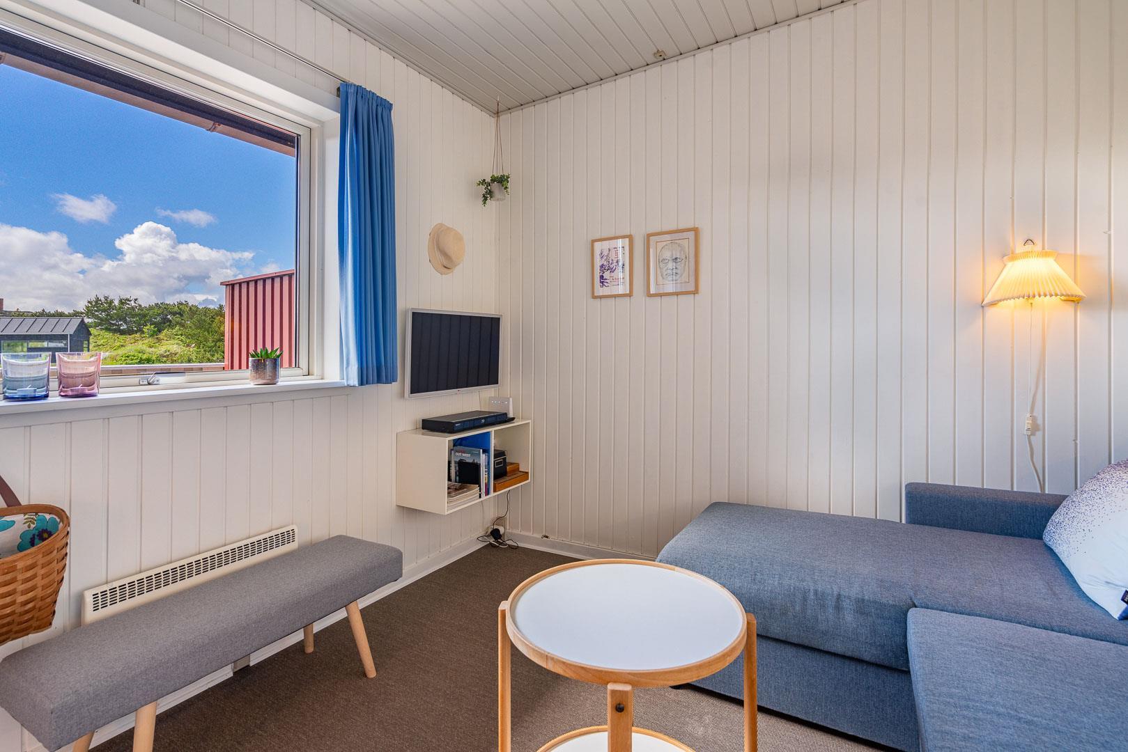Til ferielejligheden er der en privat sydvendt terrasse, som giver dig mulighed for at nyde solens stråler hele dagen – perfekt til at nyde morgenkaffen eller en hyggelig middag under åben himmel. Der er adgang til TV med danske, tyske og internationale kanaler, wifi, Blu-ray-afspiller og DAB-radio, så underholdningen er sikret, hvis du ønsker en aften indendørs.