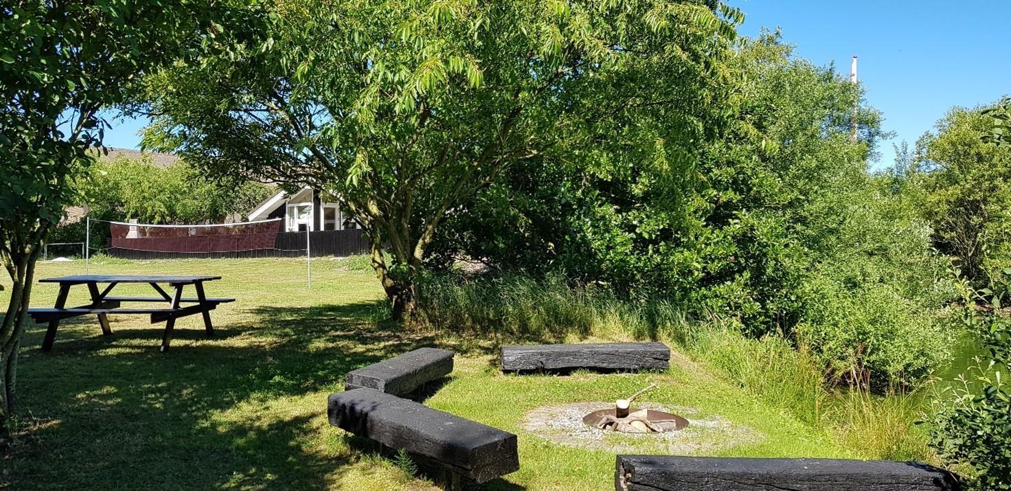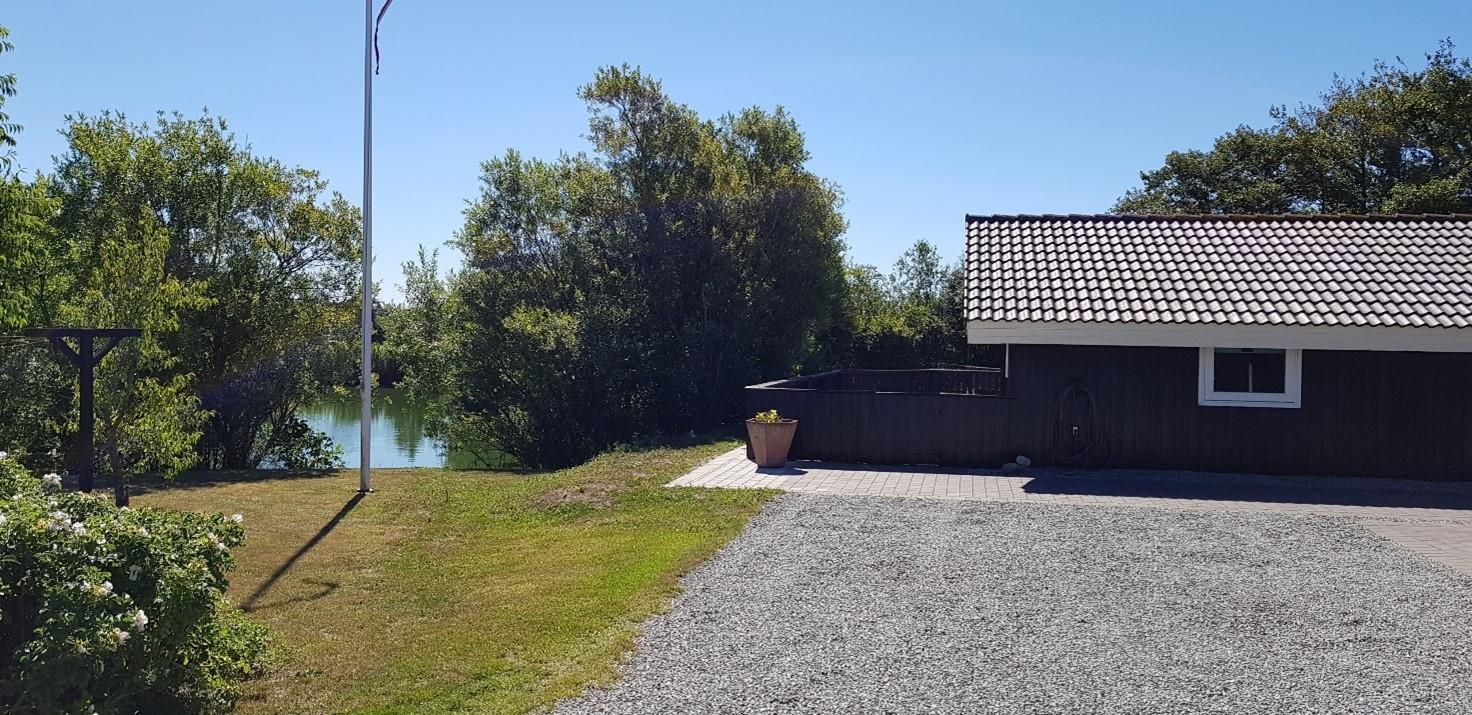 Udenfor venter et skønt område hvor du bl.a. finder en lukket terrasse og en smuk sø. Grunden er perfekt til naturskønne gåture rundt om søren og roligt samvær. Den hyggelige bålplads ved søren giver mulighed for madlavning over åben ild, mens gyngestativet og basketballkurven sørger for masser af legemuligheder.