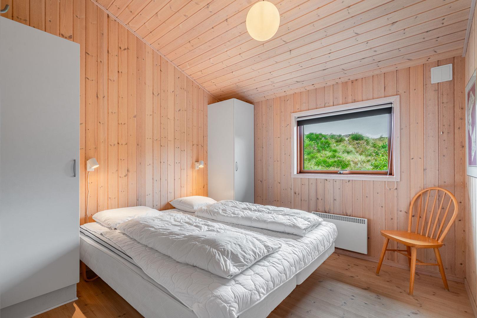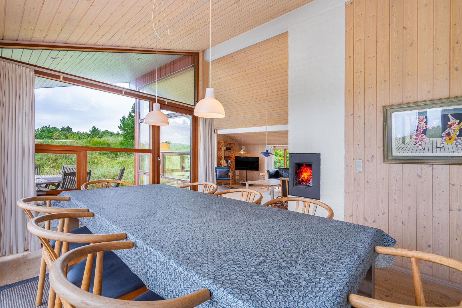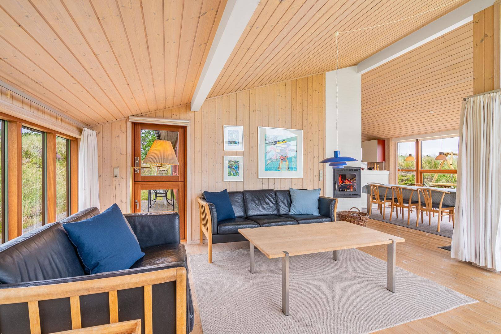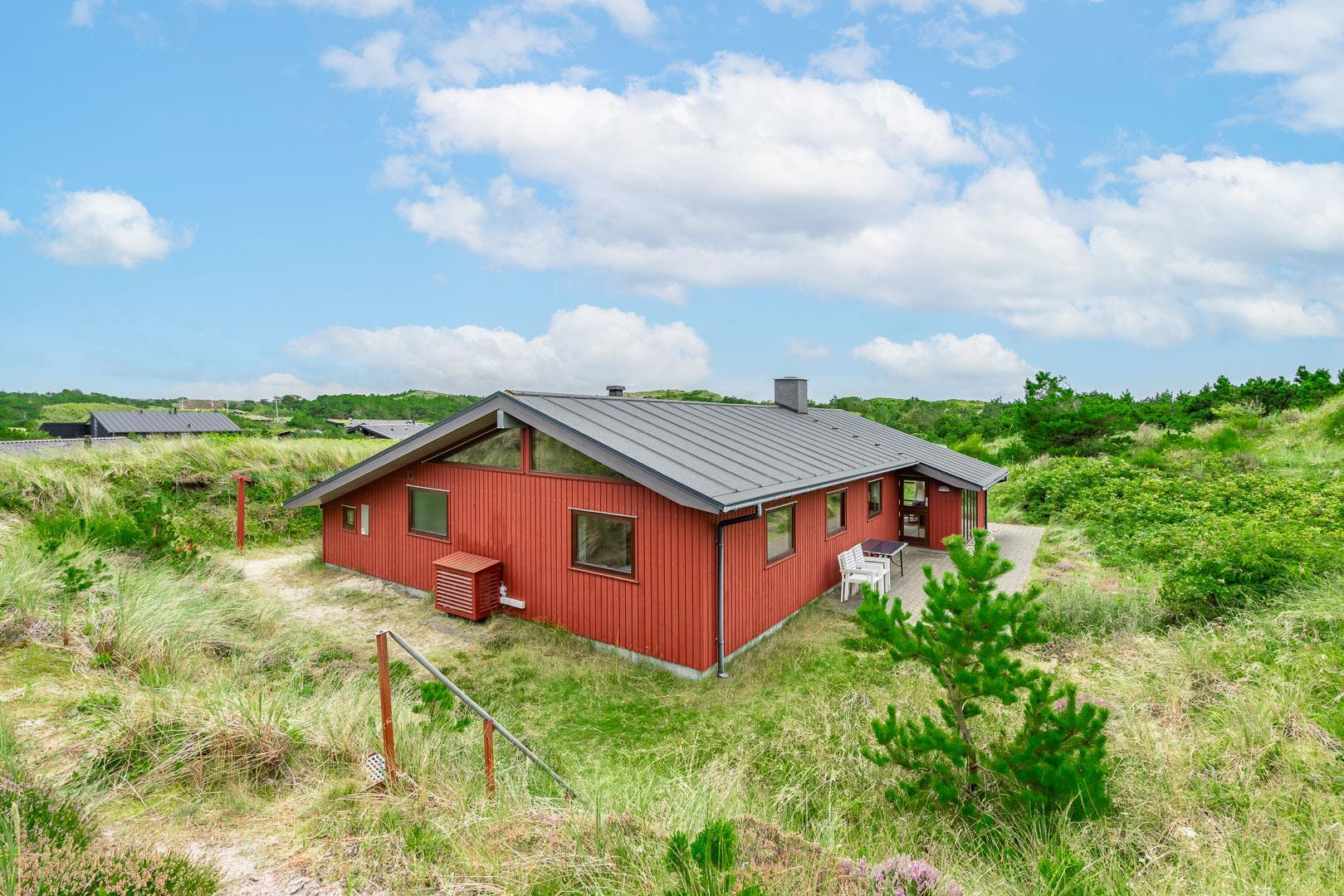 På en pragtfuld og ugeneret grund ved frednings linjen ud til stort klitområde ligger dette skønne og velholdte feriehus. Huset er hyggeligt og personligt indrettet. Der er udgang til overdækket terrasse fra spisepladsen samt udgang til åben terrasse fra stuen. Her kan den fantastiske udsigt over klitterne nydes. Køkken med opvaskemaskine og separat fryser. Centralt placeret brændeovn samt varmepumpe, sørger for at holde energi omkostningerne nede. Badeværelse med spa, sauna, vaskemaskine og tørretumbler. Her tilbydes 3 store værelser, alle med skabe. Der er modem med gratis internetopkobling. Ejer foretrækker at huset bebos af Ikke-Rygere. Et lyst og venligt hus, som danner gode rammer for en perfekt ferie ved Vesterhavet.