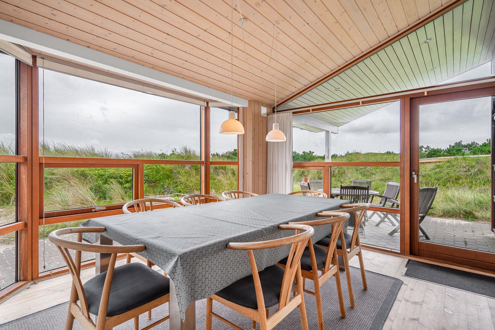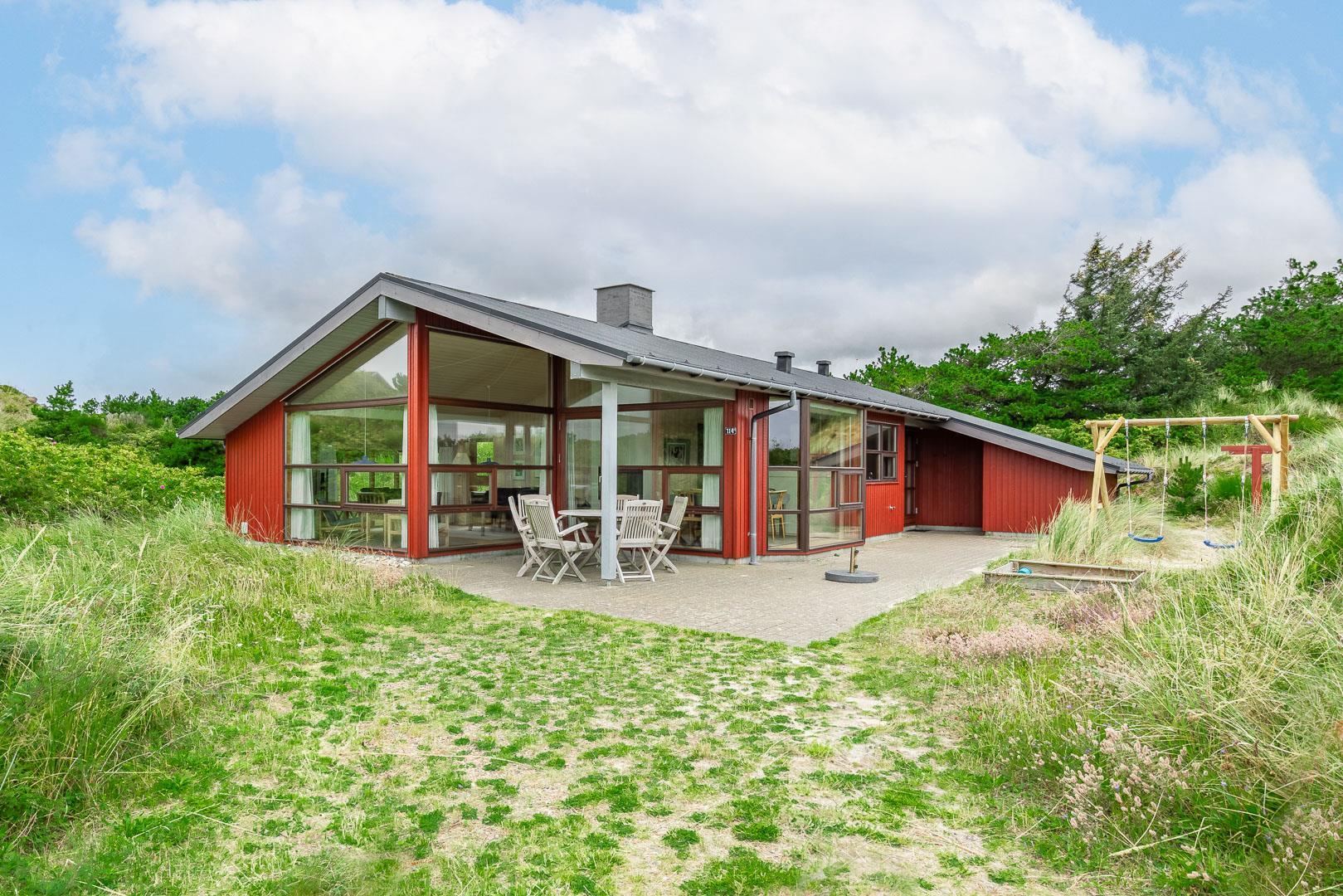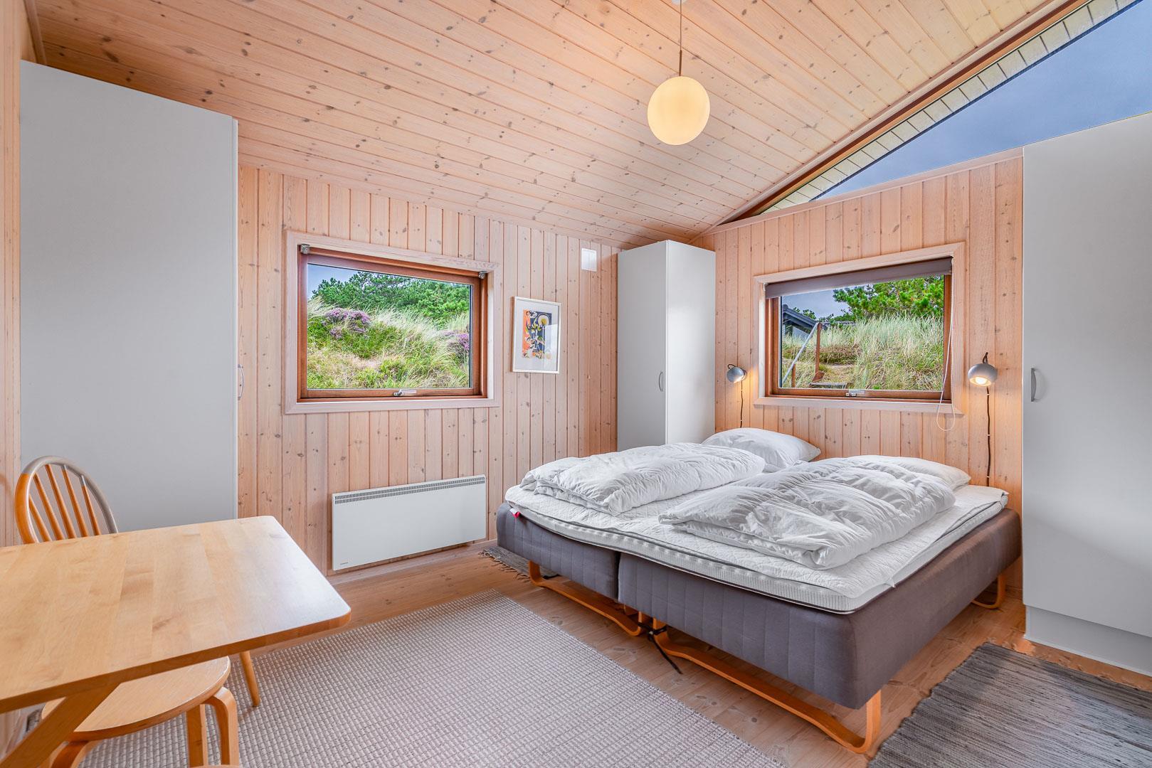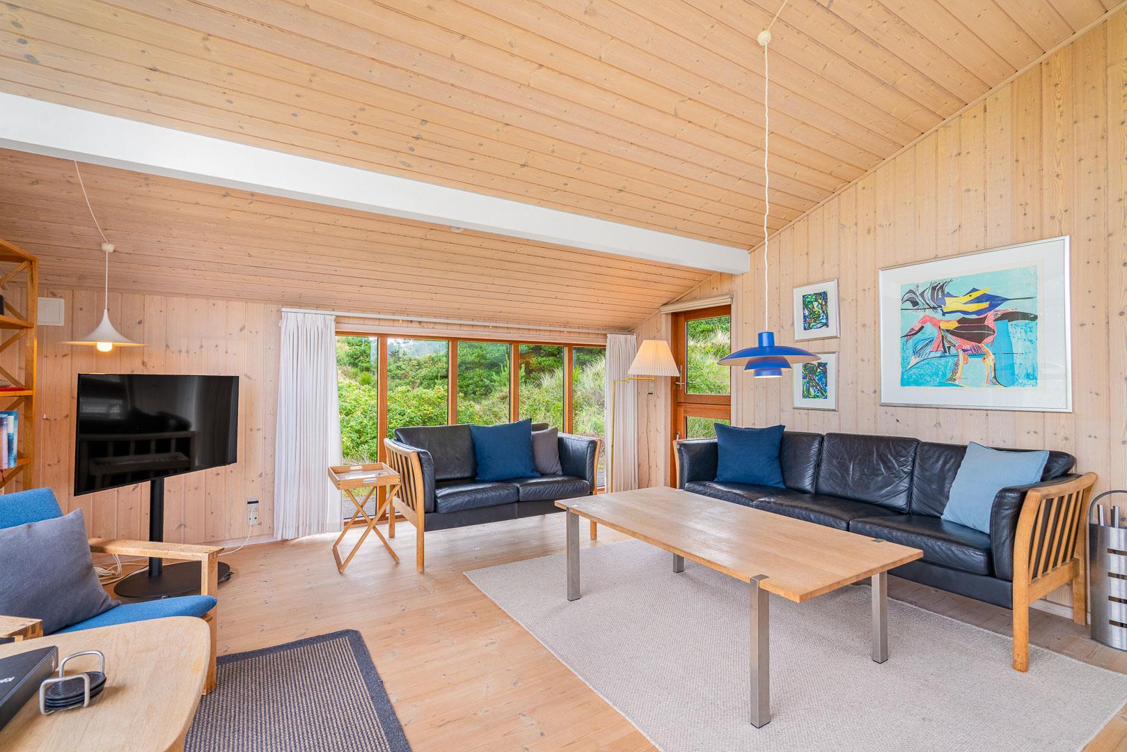 På en pragtfuld og ugeneret grund ved frednings linjen ud til stort klitområde ligger dette skønne og velholdte feriehus. Huset er hyggeligt og personligt indrettet. Der er udgang til overdækket terrasse fra spisepladsen samt udgang til åben terrasse fra stuen. Her kan den fantastiske udsigt over klitterne nydes. Køkken med opvaskemaskine og separat fryser. Centralt placeret brændeovn samt varmepumpe, sørger for at holde energi omkostningerne nede. Badeværelse med spa, sauna, vaskemaskine og tørretumbler. Her tilbydes 3 store værelser, alle med skabe. Der er modem med gratis internetopkobling. Ejer foretrækker at huset bebos af Ikke-Rygere. Et lyst og venligt hus, som danner gode rammer for en perfekt ferie ved Vesterhavet.