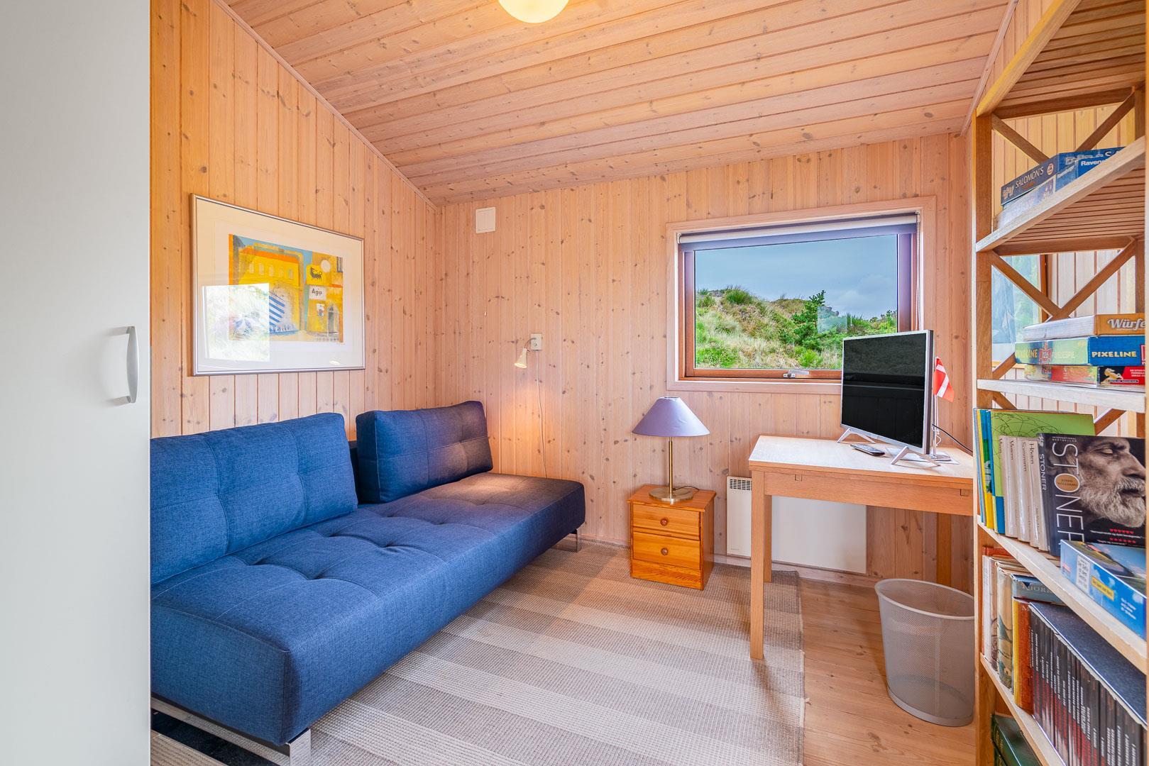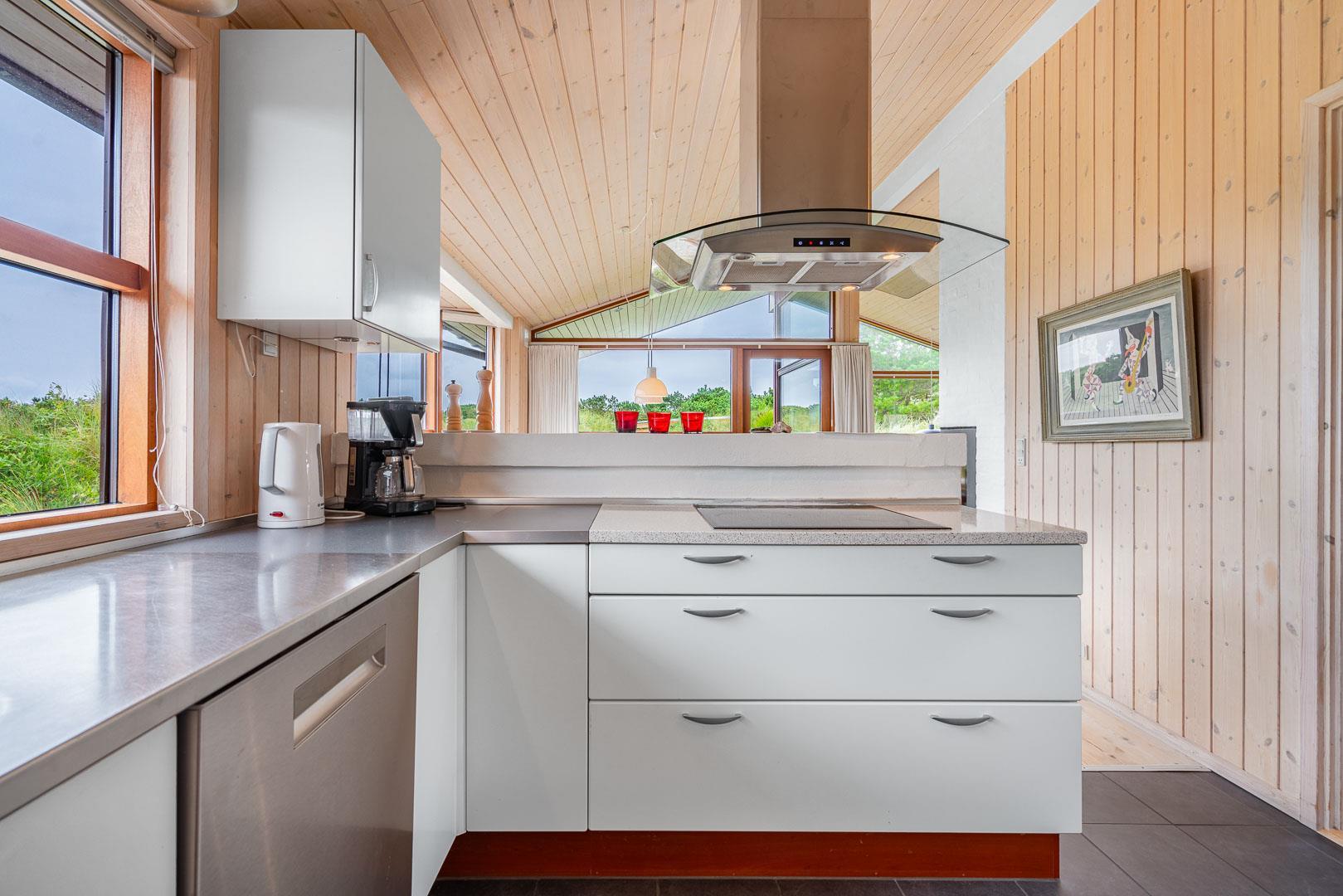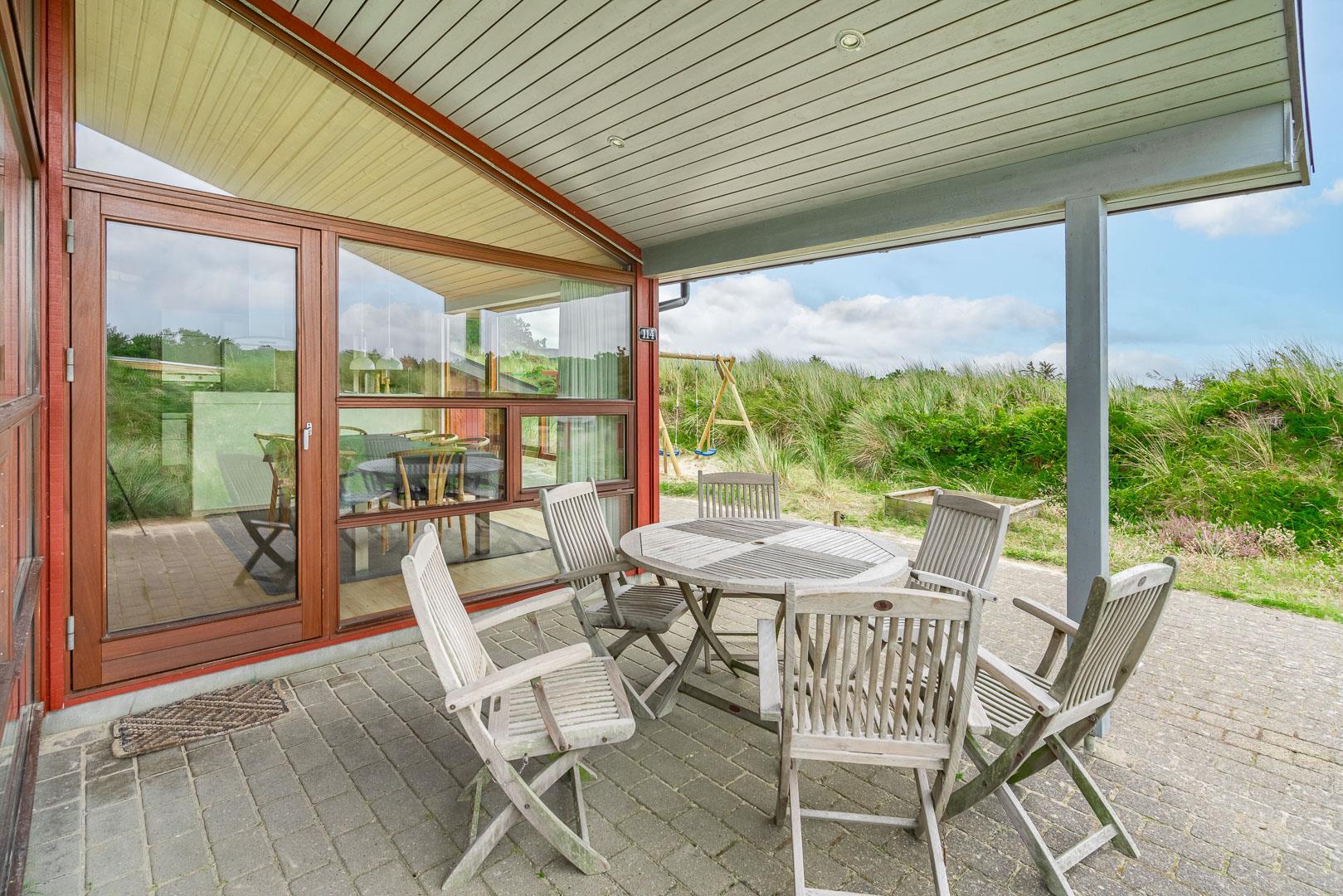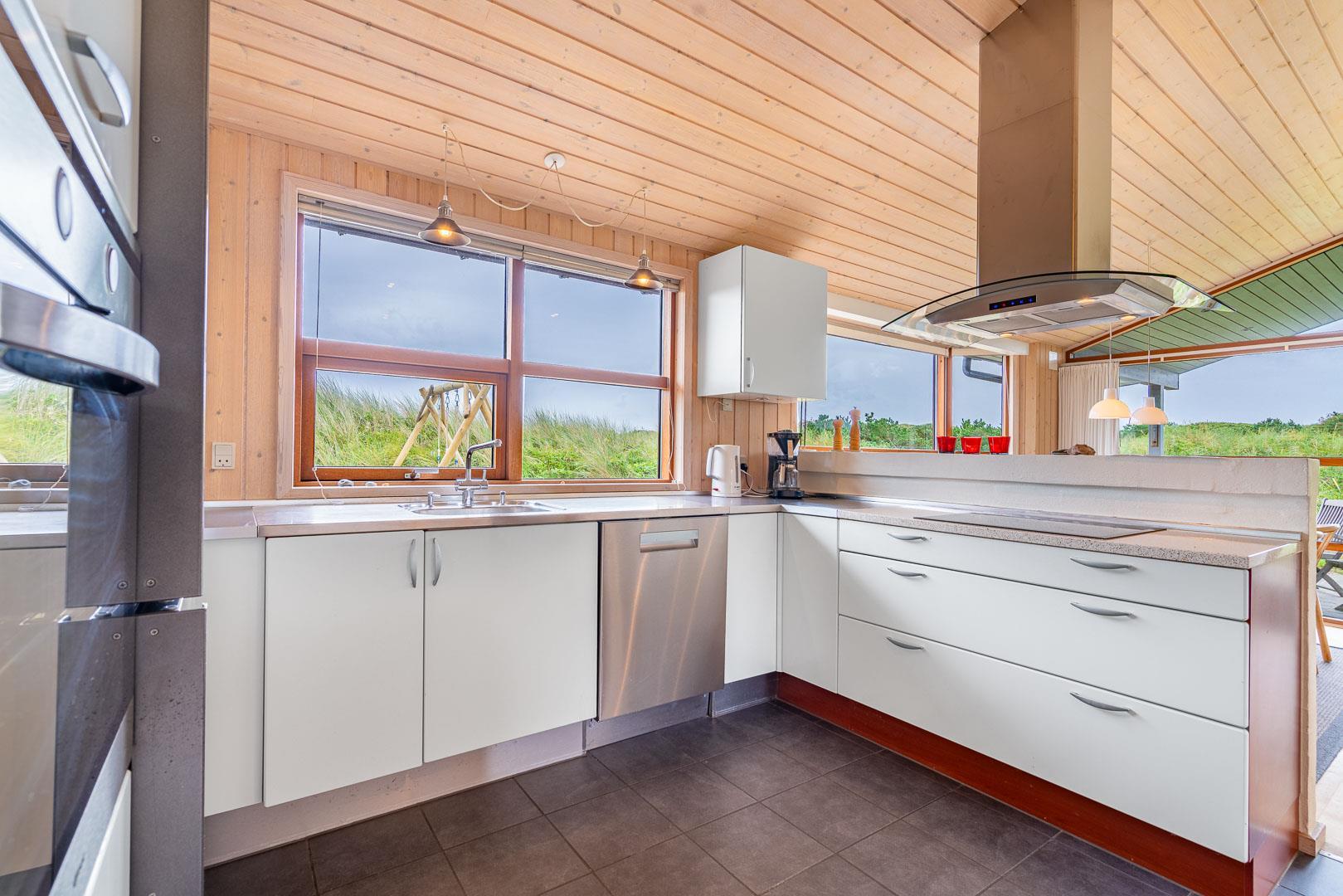 På en pragtfuld og ugeneret grund ved frednings linjen ud til stort klitområde ligger dette skønne og velholdte feriehus. Huset er hyggeligt og personligt indrettet. Der er udgang til overdækket terrasse fra spisepladsen samt udgang til åben terrasse fra stuen. Her kan den fantastiske udsigt over klitterne nydes. Køkken med opvaskemaskine og separat fryser. Centralt placeret brændeovn samt varmepumpe, sørger for at holde energi omkostningerne nede. Badeværelse med spa, sauna, vaskemaskine og tørretumbler. Her tilbydes 3 store værelser, alle med skabe. Der er modem med gratis internetopkobling. Ejer foretrækker at huset bebos af Ikke-Rygere. Et lyst og venligt hus, som danner gode rammer for en perfekt ferie ved Vesterhavet.