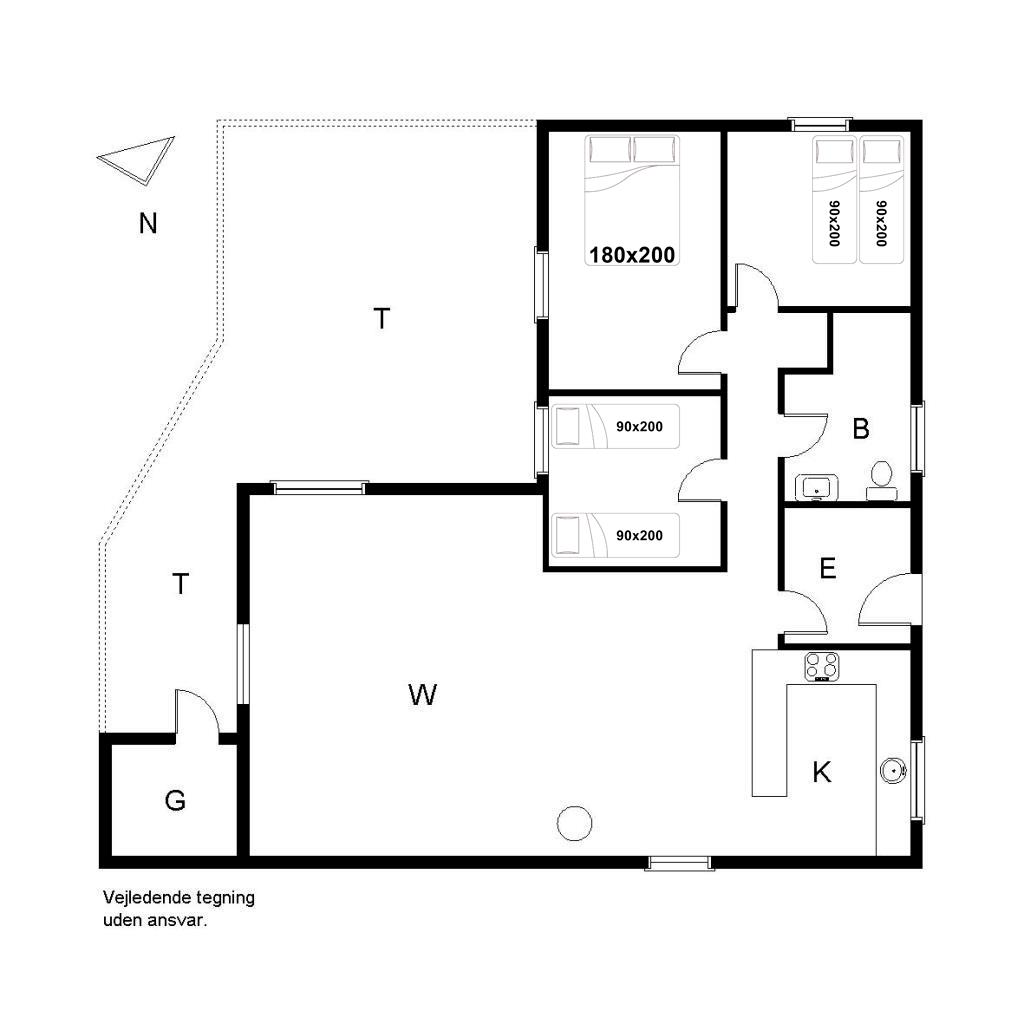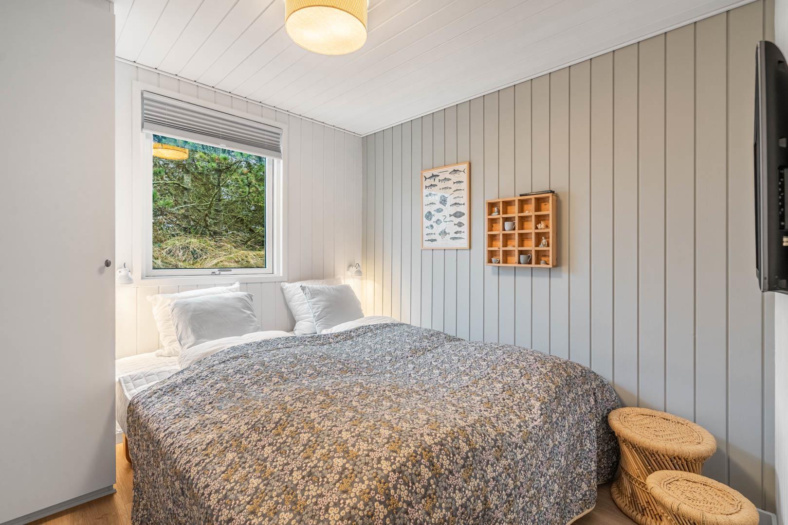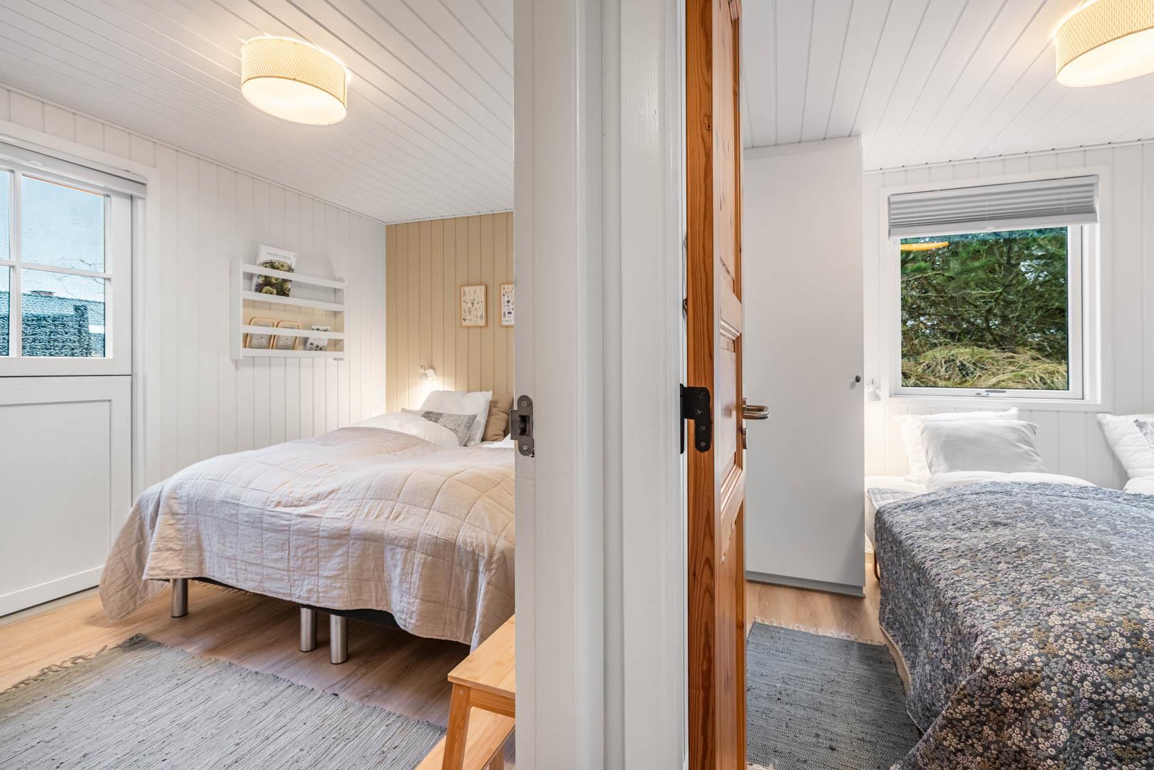 Sommerhuset har tre skønne soveværelser. To af værelserne er indrettet med rummelige dobbeltsenge (180x200 cm, hver med én stor madras), som giver masser af plads til afslapning. Det tredje værelse er udstyret med to enkeltsenge (80x200 cm), perfekt til både børn og voksne. Feriehuset har desuden et funktionelt badeværelse, der rummer alt det nødvendige, herunder en vaskemaskine, som gør det let at holde ferien praktisk og bekvem.