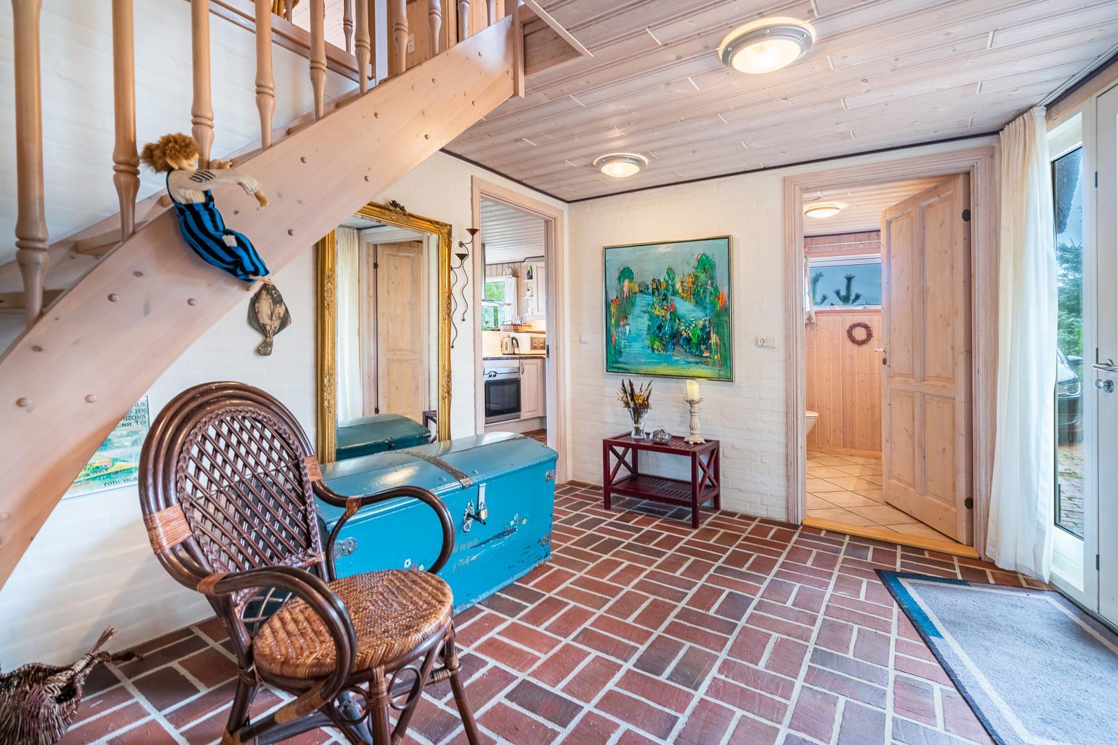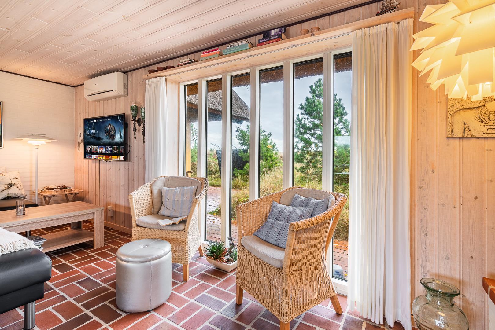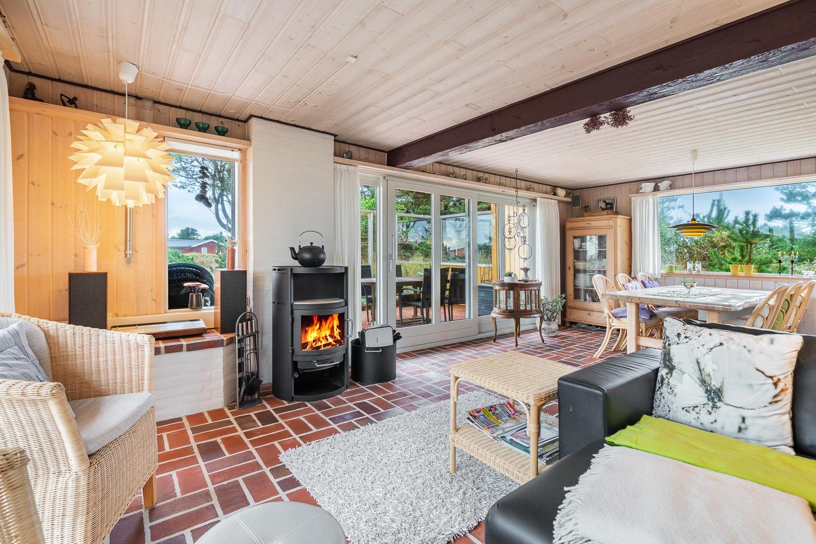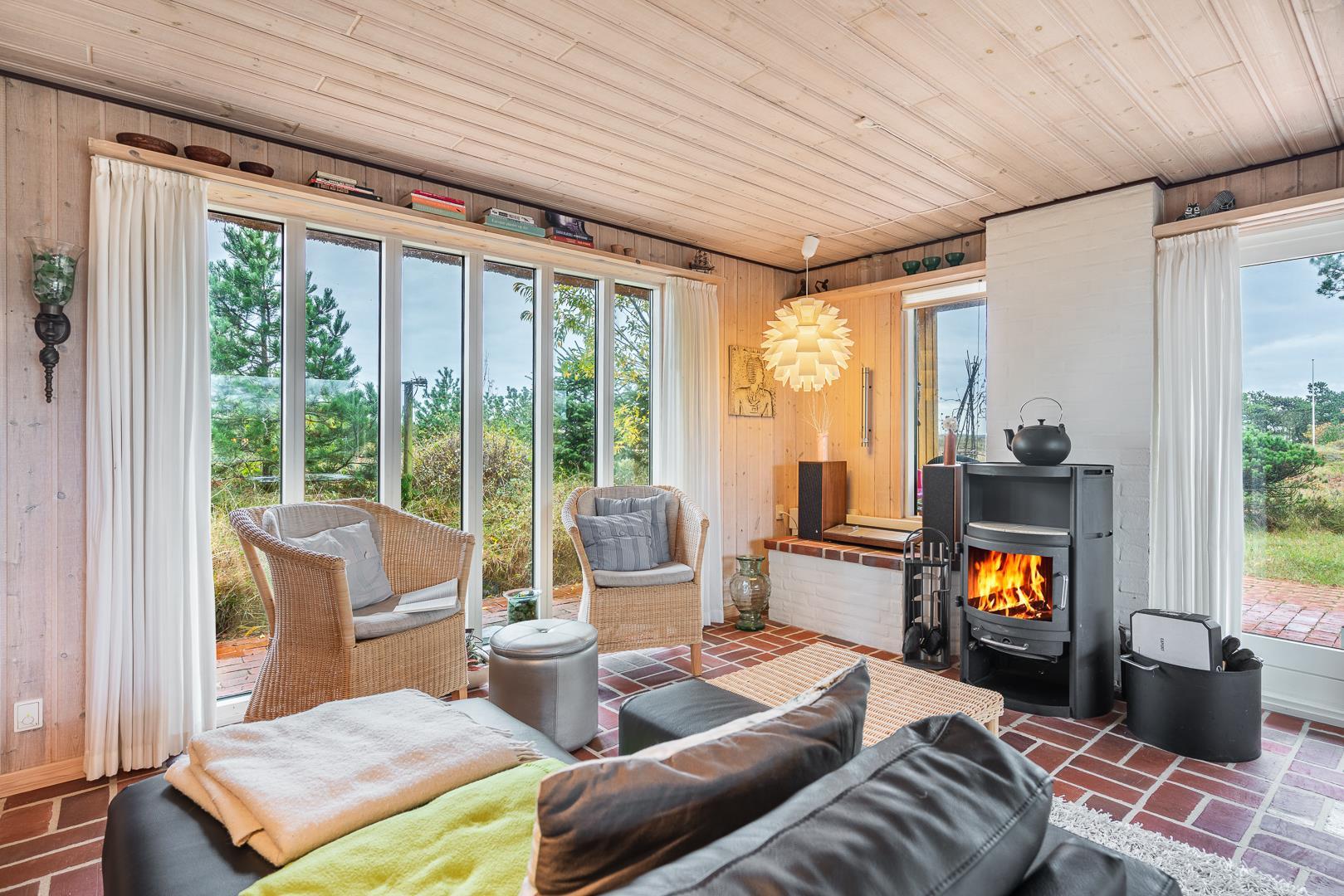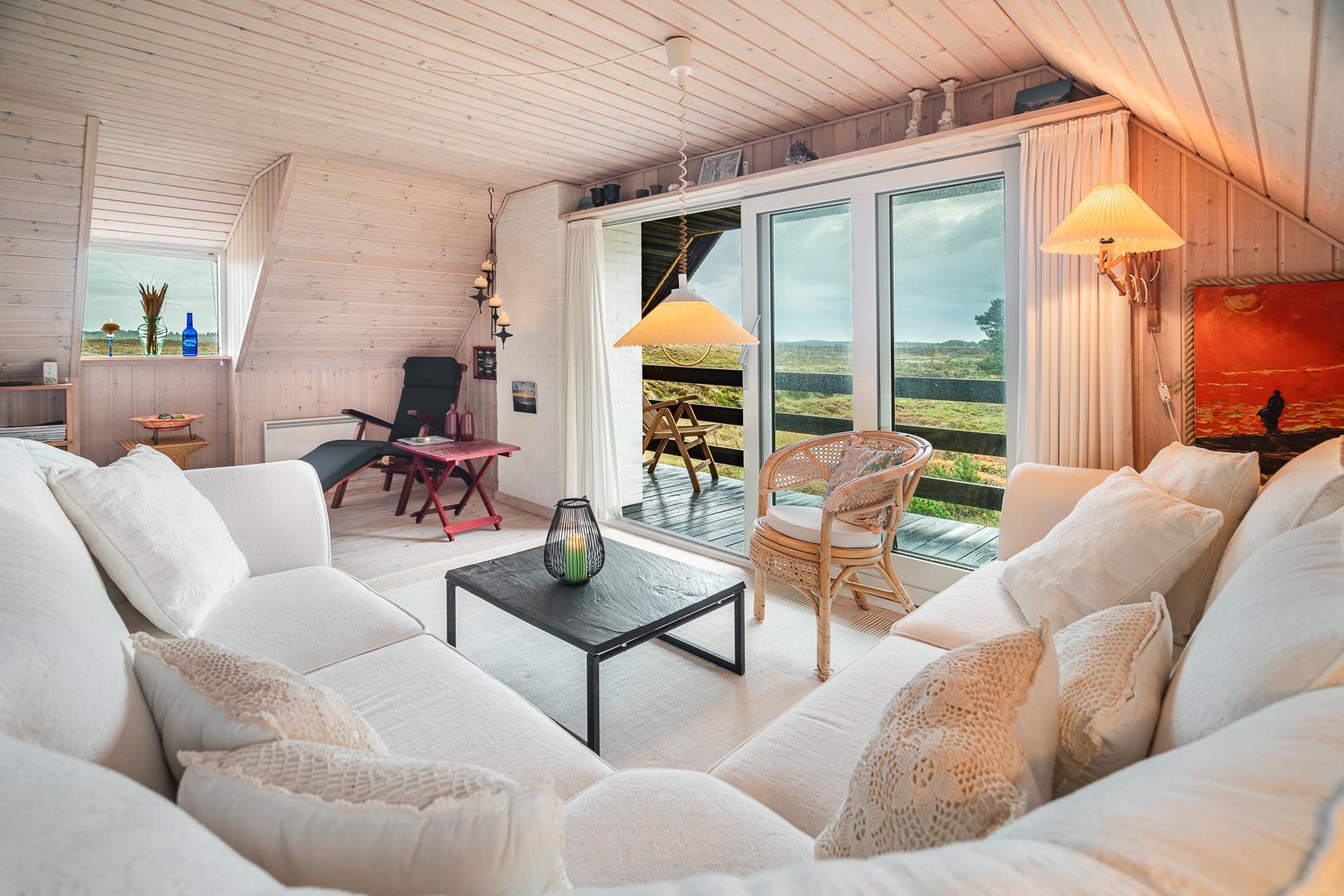 Hyggeligt og meget rummeligt stråtækt sommerhus på adressen Gøgevej 46, med en unik beliggenhed, med naturområdet som nærmeste nabo og med gode muligheder for at se råvildt. I sommerhusets stueplan er der en større køkken/alrum med brændeovn samt varmepumpe. Herfra er der panoramaudsigt fra de store vinduer ud over det flotte kuperede og fredsfyldte naturreservat. I stueplan er husets 2 badeværelser, hvor der i det store badeværelse er opsat spa og med adgang til sommerhusets sauna. På 1. salen er der ikke mindre en 3 soveværelser med 3 dobbelt senge. I det store soveværelse er der en mindre, men meget hyggeligt stue, hvor der yderligere er adgang til overdækket altan. Der er gå afstand til Vesterhavets bølger og Henne Strands dejlige handelsby, hvor der er gode muligheder for indkøb samt flere restauranter.