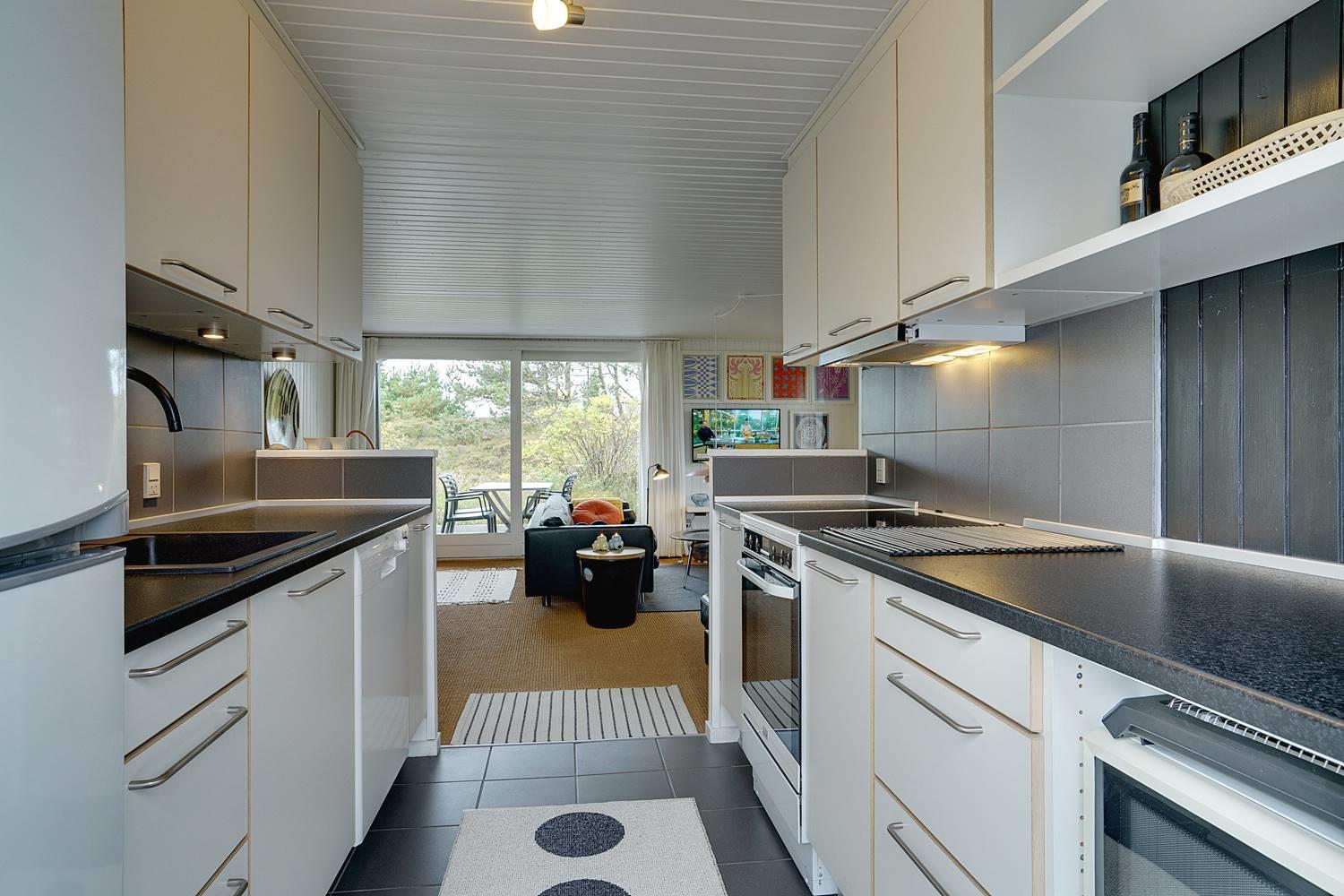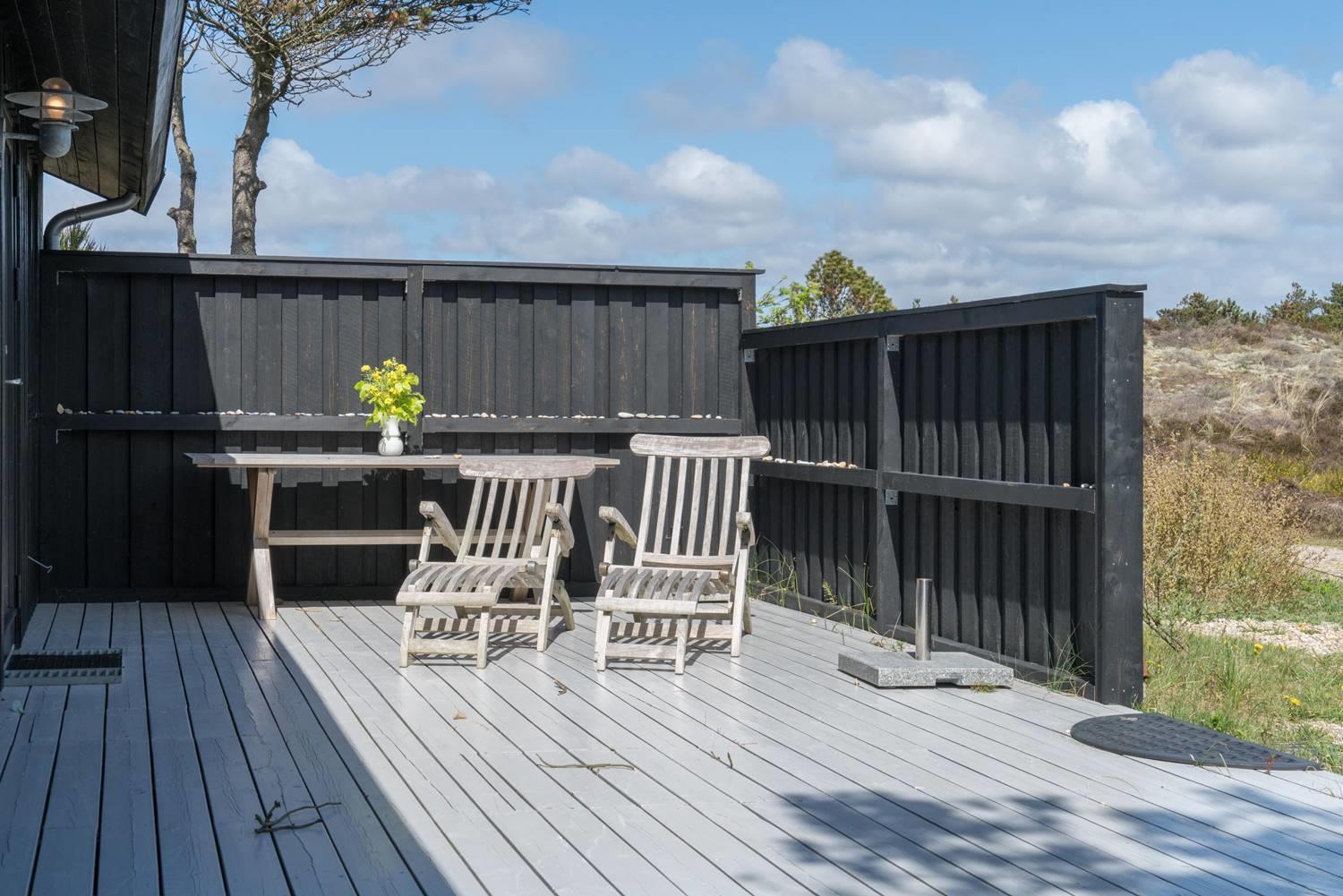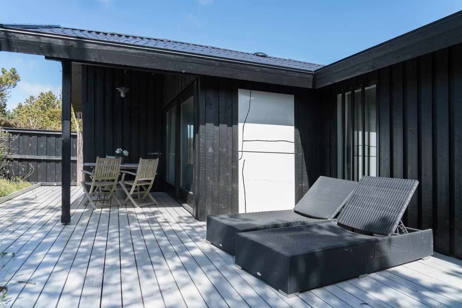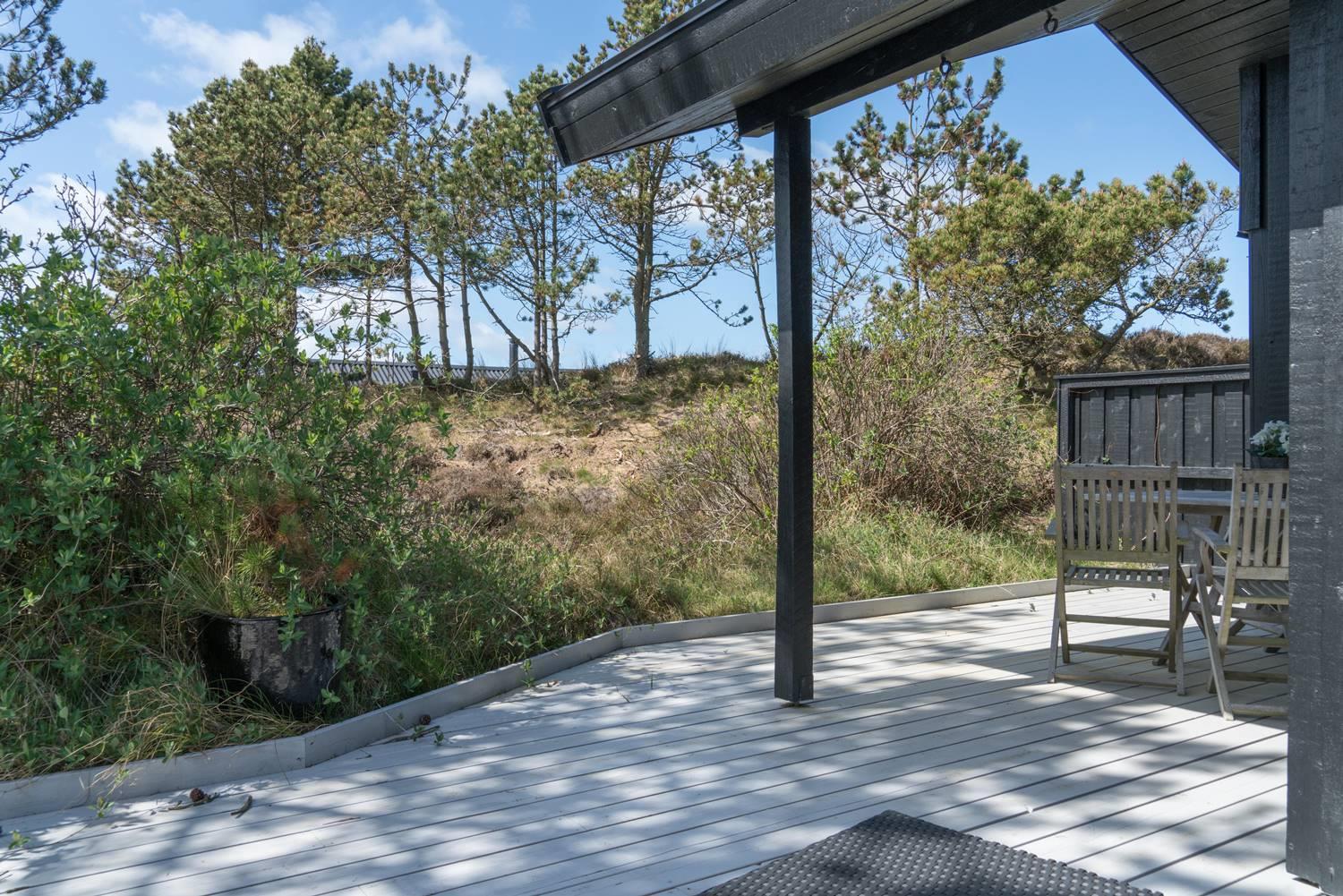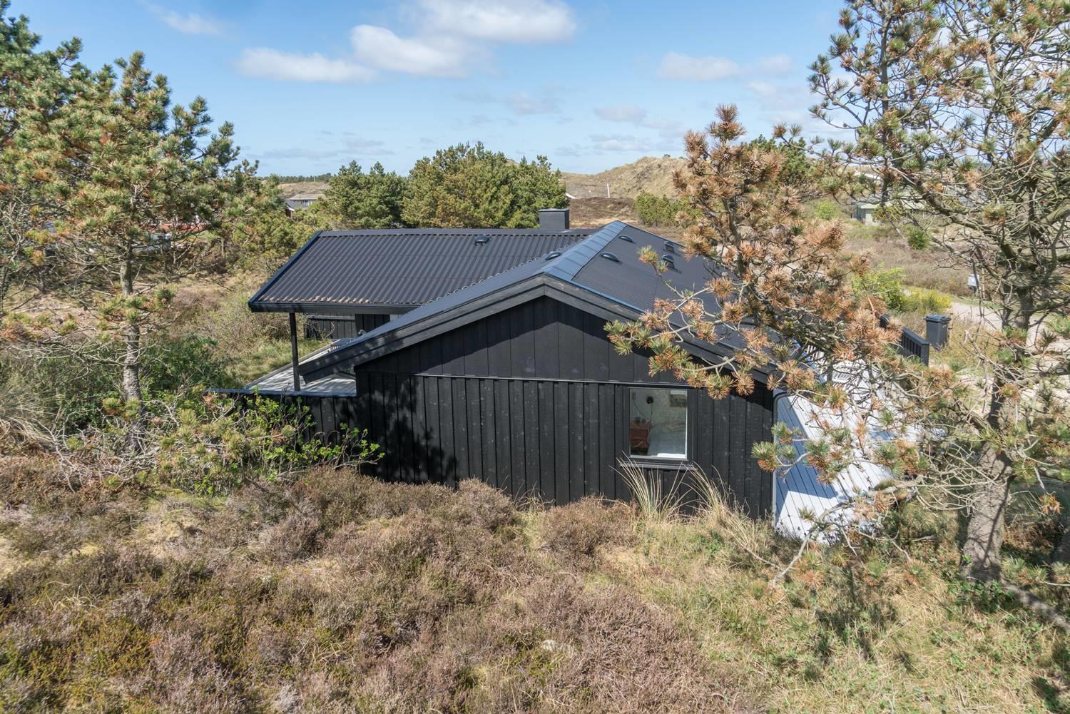 På en pragtfuld, ugeneret natur- og klitgrund, for ende af vej ligger dette dejlige og meget velholdte feriehus. Fra Stuen med TV og brændeovn, er der udgang til delvis overdækket og meget ugeneret terrasse. Nyere bad og nyere køkken med opvaskemaskine. Huset har 3 soverum fordelt på 2 værelser med dobbeltsenge og 1 værelse med enkelt senge. Bag huset kan naturen rigtig nydes, hvor der er lyngklædte klitter så langt øjet rækker. Et personligt og charmerende hus.