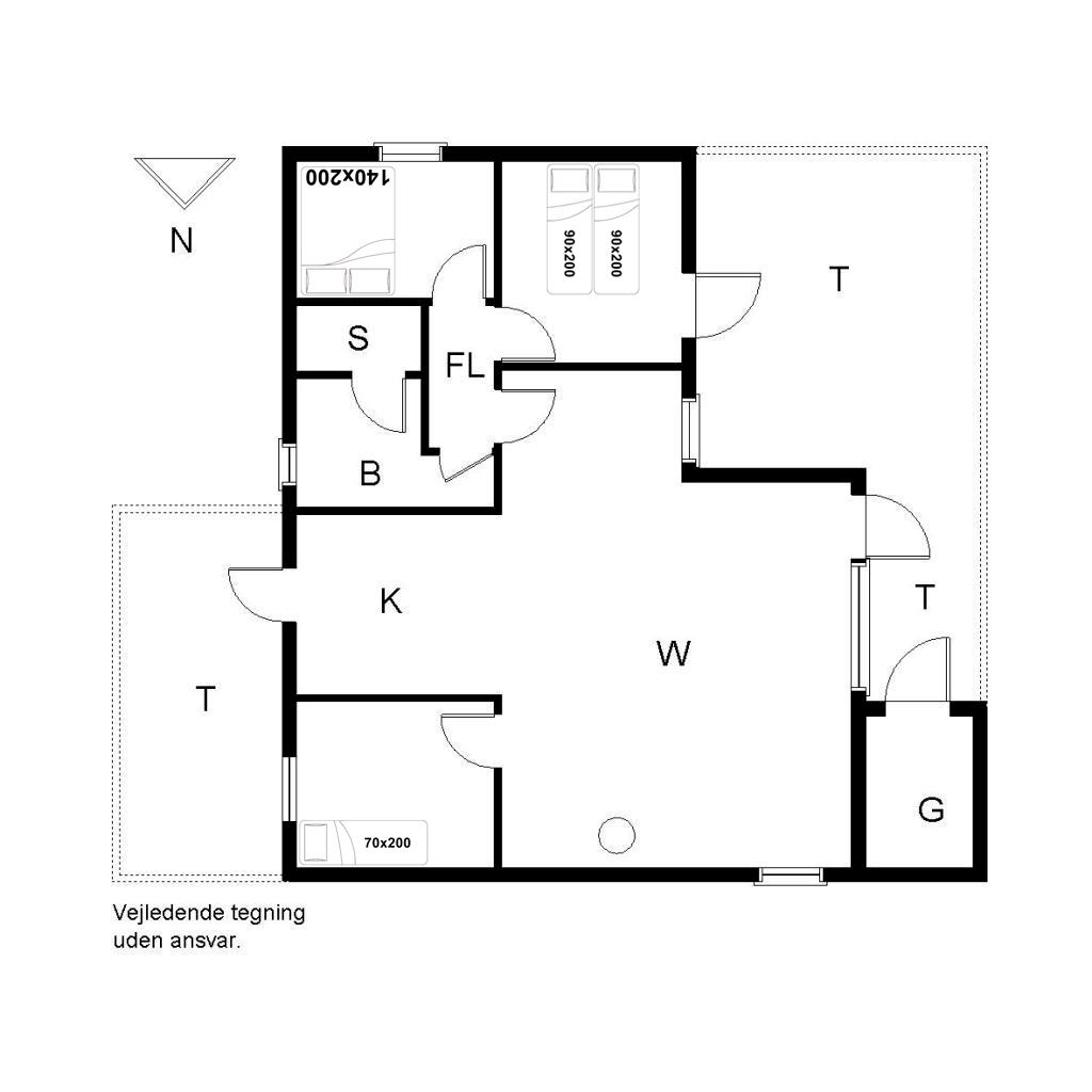 Sengestørrelser: 1 dobbeltseng med 2 madrasser á 90 x 200 cm + 1 dobbeltseng 140 x 200 cm + 1 enkeltseng 70 x 200 cm.