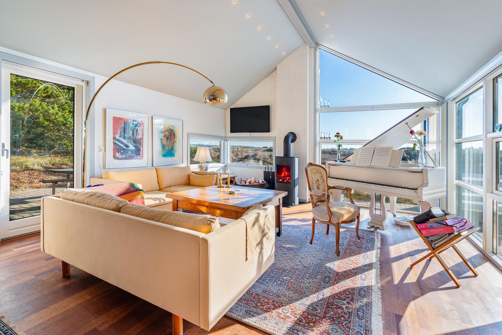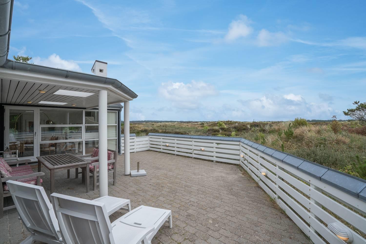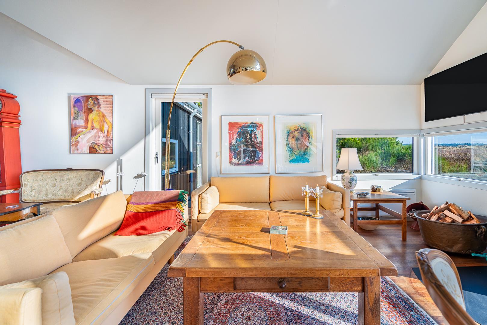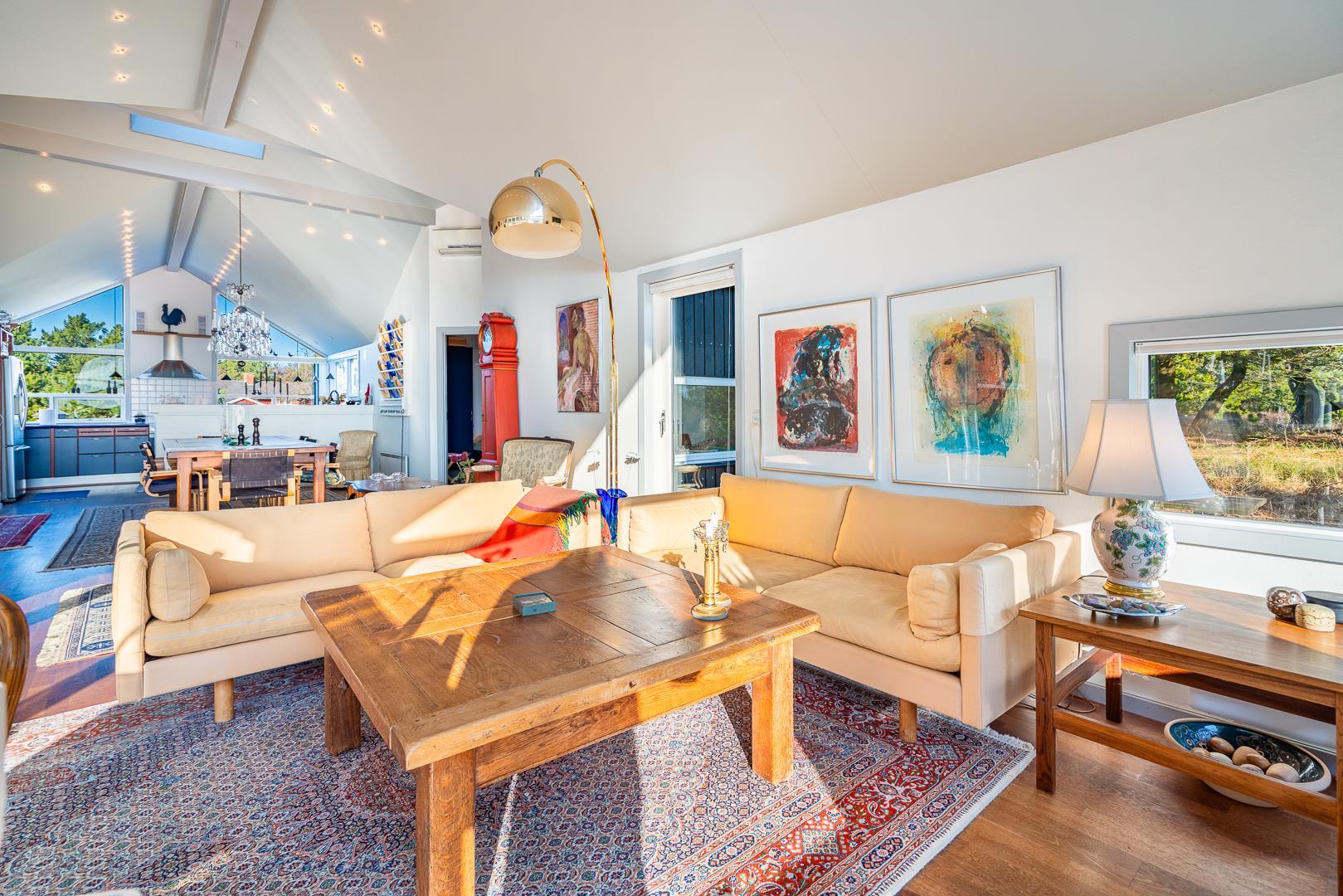 Et meget personligt indrettet sommerhus som emmer af hygge ude som inde. Huset er beliggende på en meget attraktiv grund i helt ugenerede omgivelser lige ud til stort fredet hedeområde. Den storslåede udsigt kan nydes i fulde drag fra huset hyggelige stue eller fra den delvis overdækkede og lukkede terrasse. Der er stor veludstyret køkken i åben forbindelse med den store rummelige spisestue/stue. 3 store soverum alle med god skabsplads og gode senge. Det ene soverum har TV. Der er ligeledes arbejdsværelse med TV. Der er 2 store, lukkede terrasser, hvorfra solen og stilhedes kan nydes. I dette skønne feriehus får du fornemmelse af, at her er et lyst og venligt feriehus, hvor der er lagt vægt på kvalitet og hyggelig indretning.