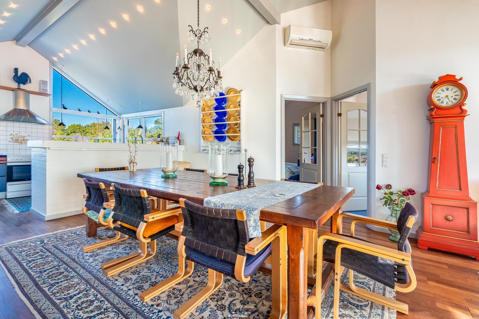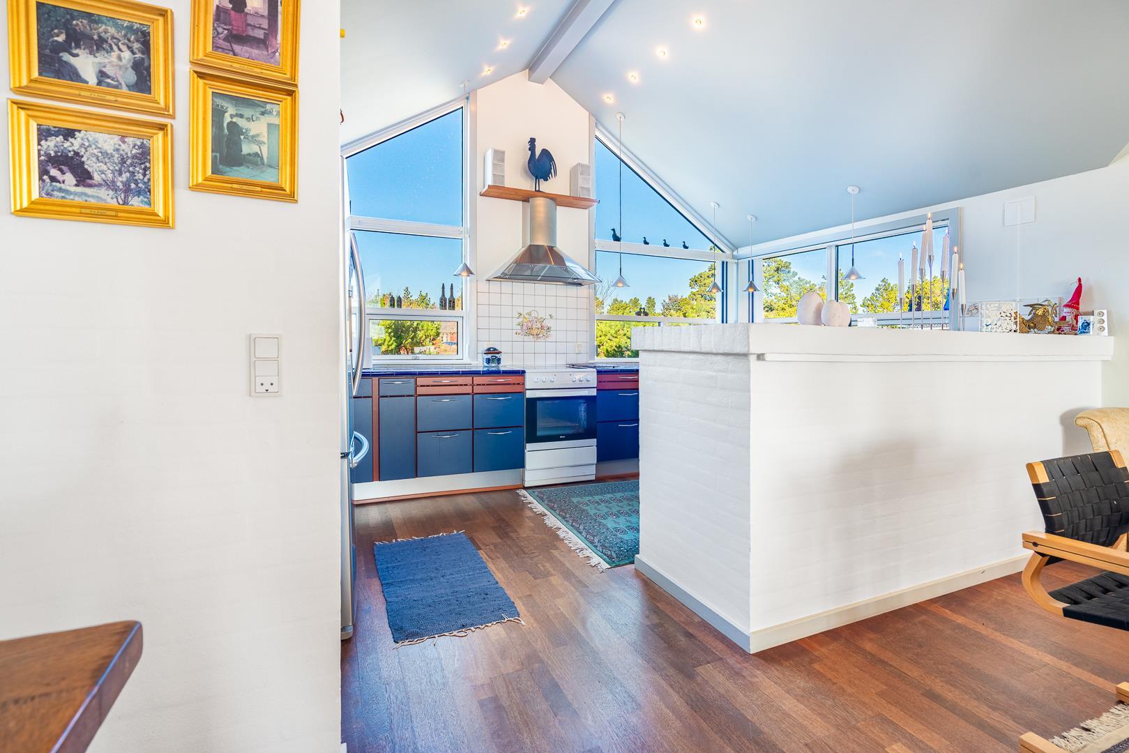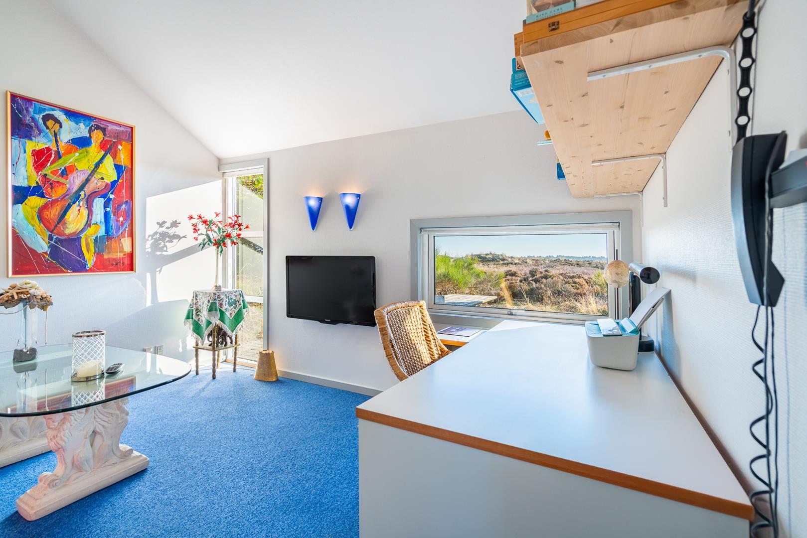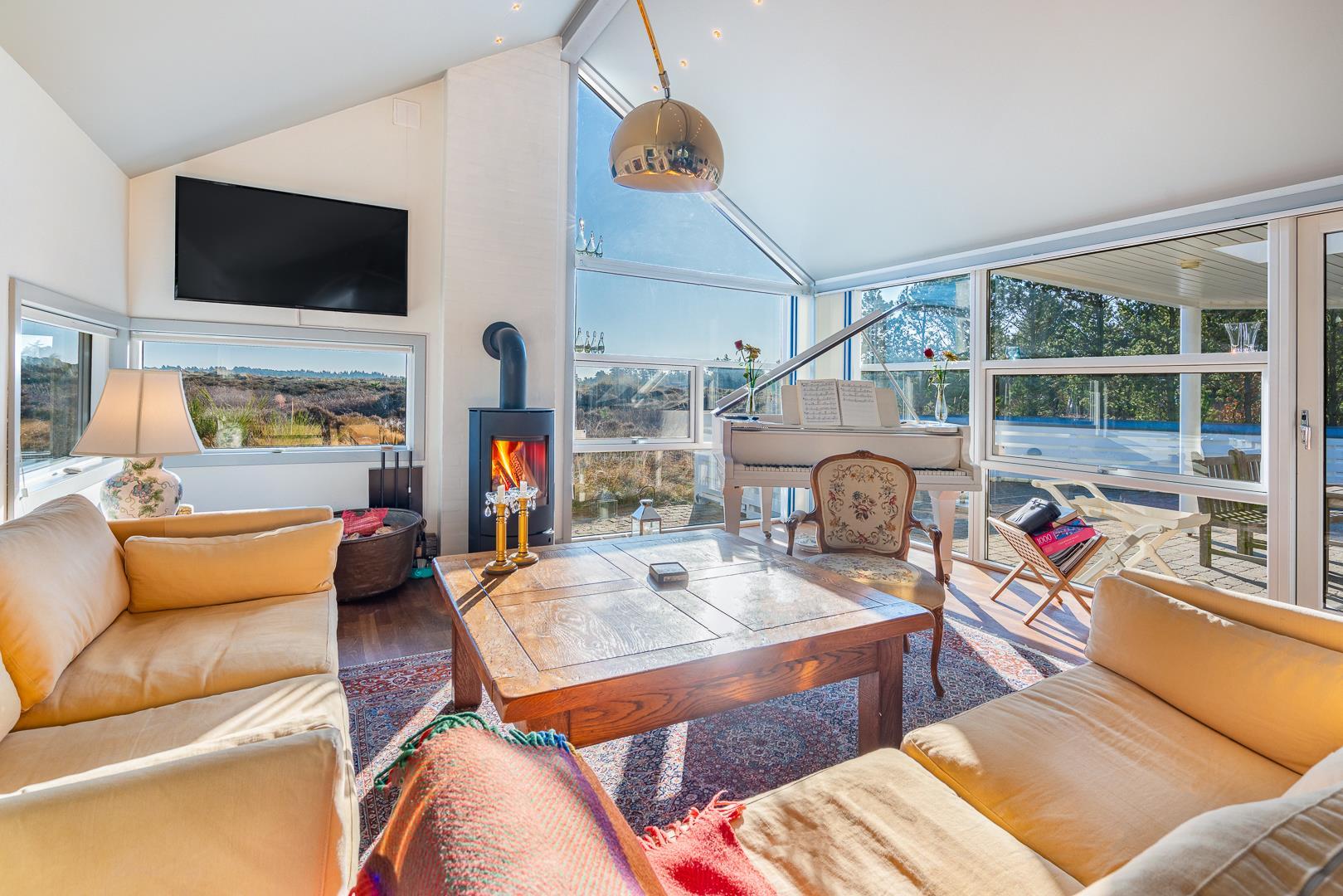 Et meget personligt indrettet sommerhus som emmer af hygge ude som inde. Huset er beliggende på en meget attraktiv grund i helt ugenerede omgivelser lige ud til stort fredet hedeområde. Den storslåede udsigt kan nydes i fulde drag fra huset hyggelige stue eller fra den delvis overdækkede og lukkede terrasse. Der er stor veludstyret køkken i åben forbindelse med den store rummelige spisestue/stue. 3 store soverum alle med god skabsplads og gode senge. Det ene soverum har TV. Der er ligeledes arbejdsværelse med TV. Der er 2 store, lukkede terrasser, hvorfra solen og stilhedes kan nydes. I dette skønne feriehus får du fornemmelse af, at her er et lyst og venligt feriehus, hvor der er lagt vægt på kvalitet og hyggelig indretning.