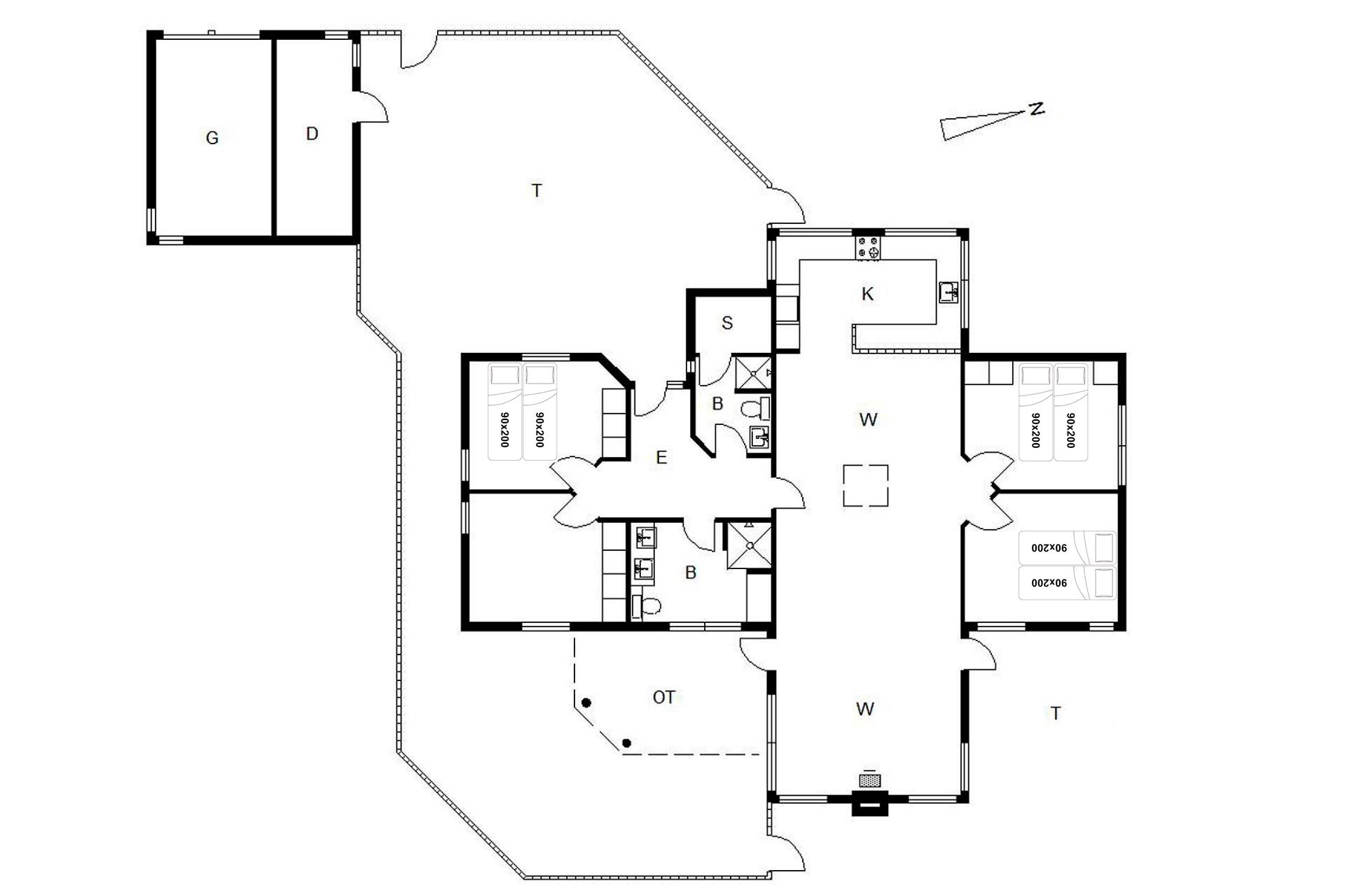Sengestørrelse: 3 dobbeltsenge med 2 madrasser 90 x 200 cm.