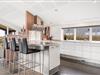 Husets hjerte består af en hyggelig stue med bløde sofaer og et stort fladskærms-tv samt et elegant, hvidt køkken med et sort, funklende klinkegulv. I rummet er der også et dejligt spisebord med plads til seks, og der er naturligvis også brændeovn til at skrue helt op for hyggen.