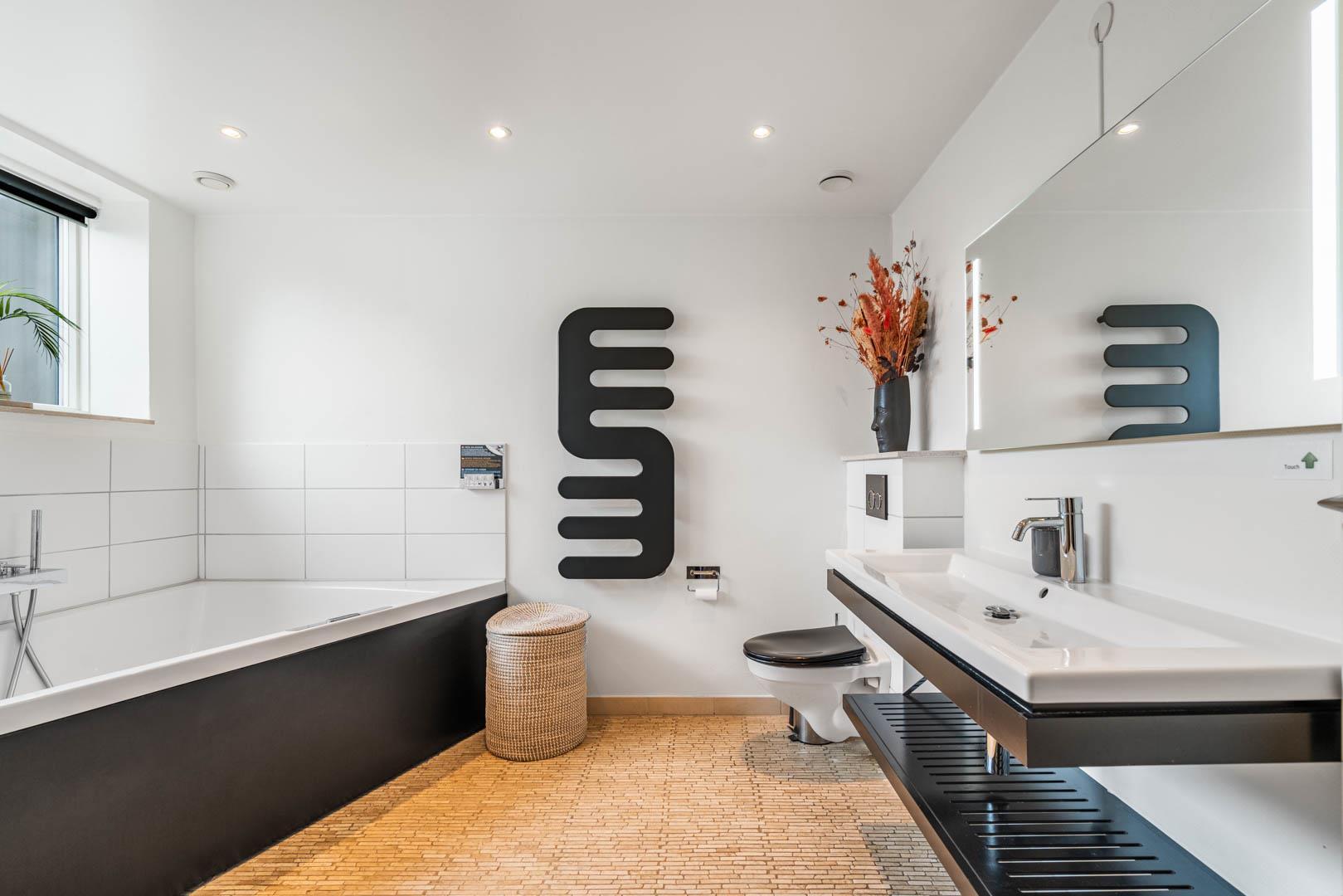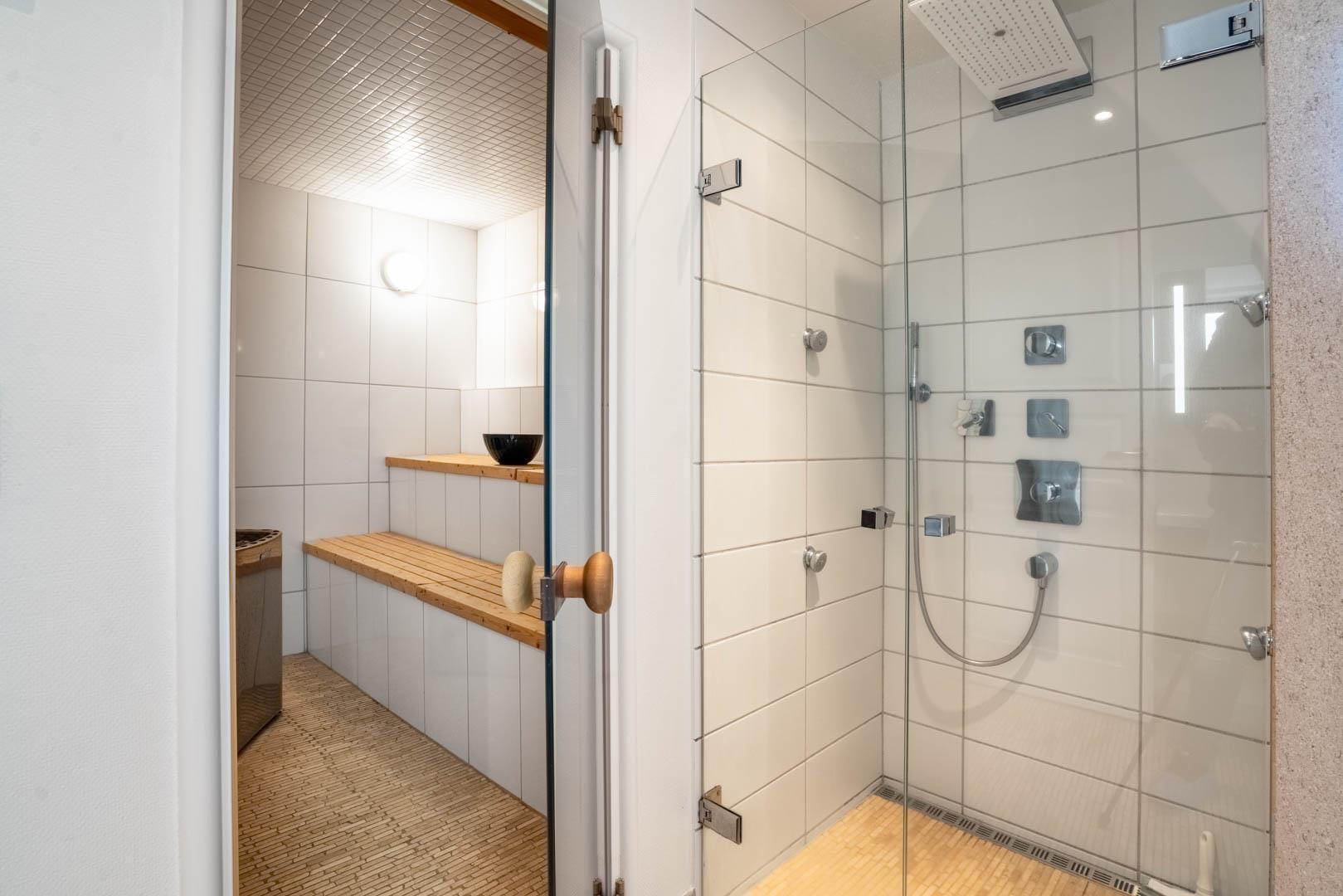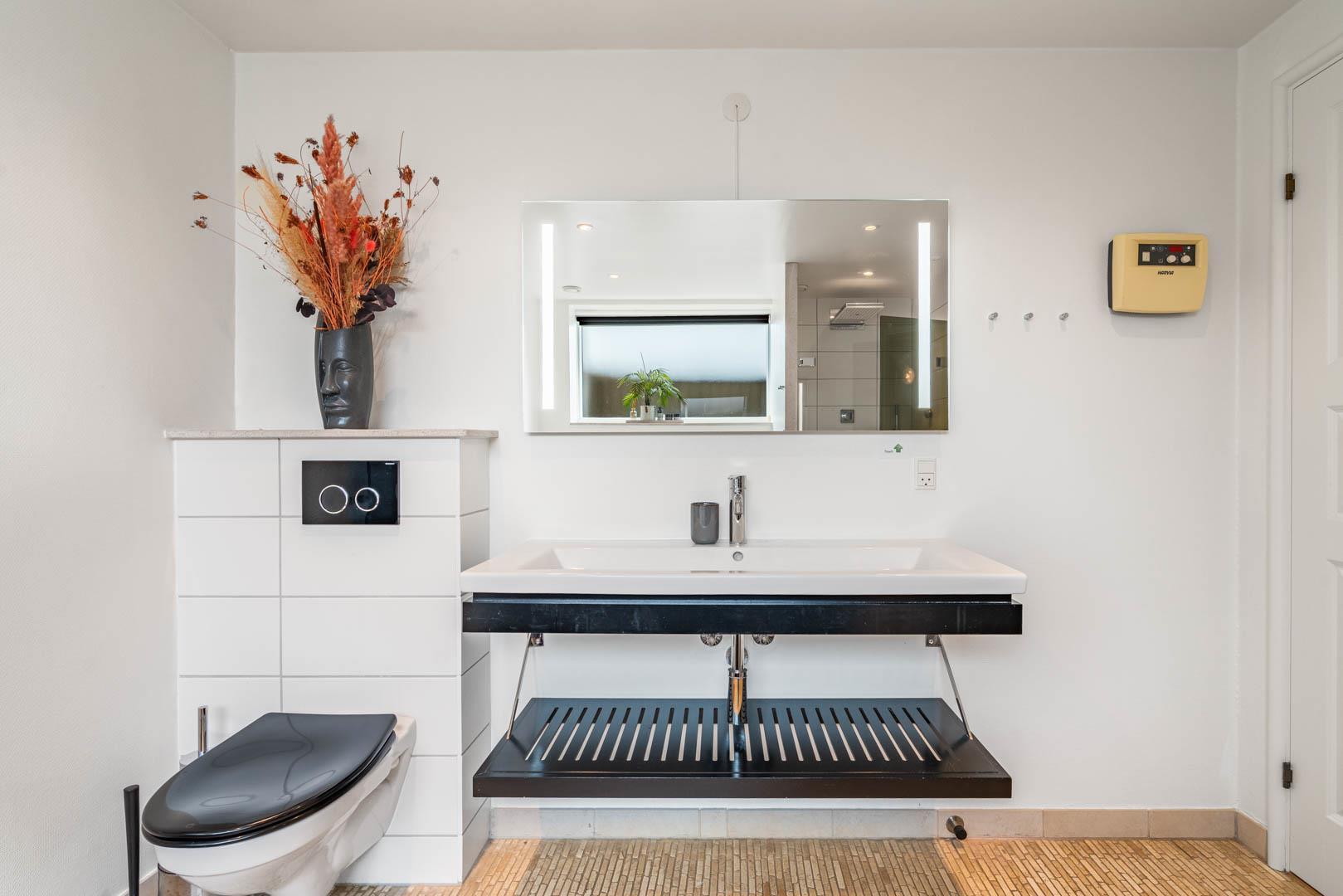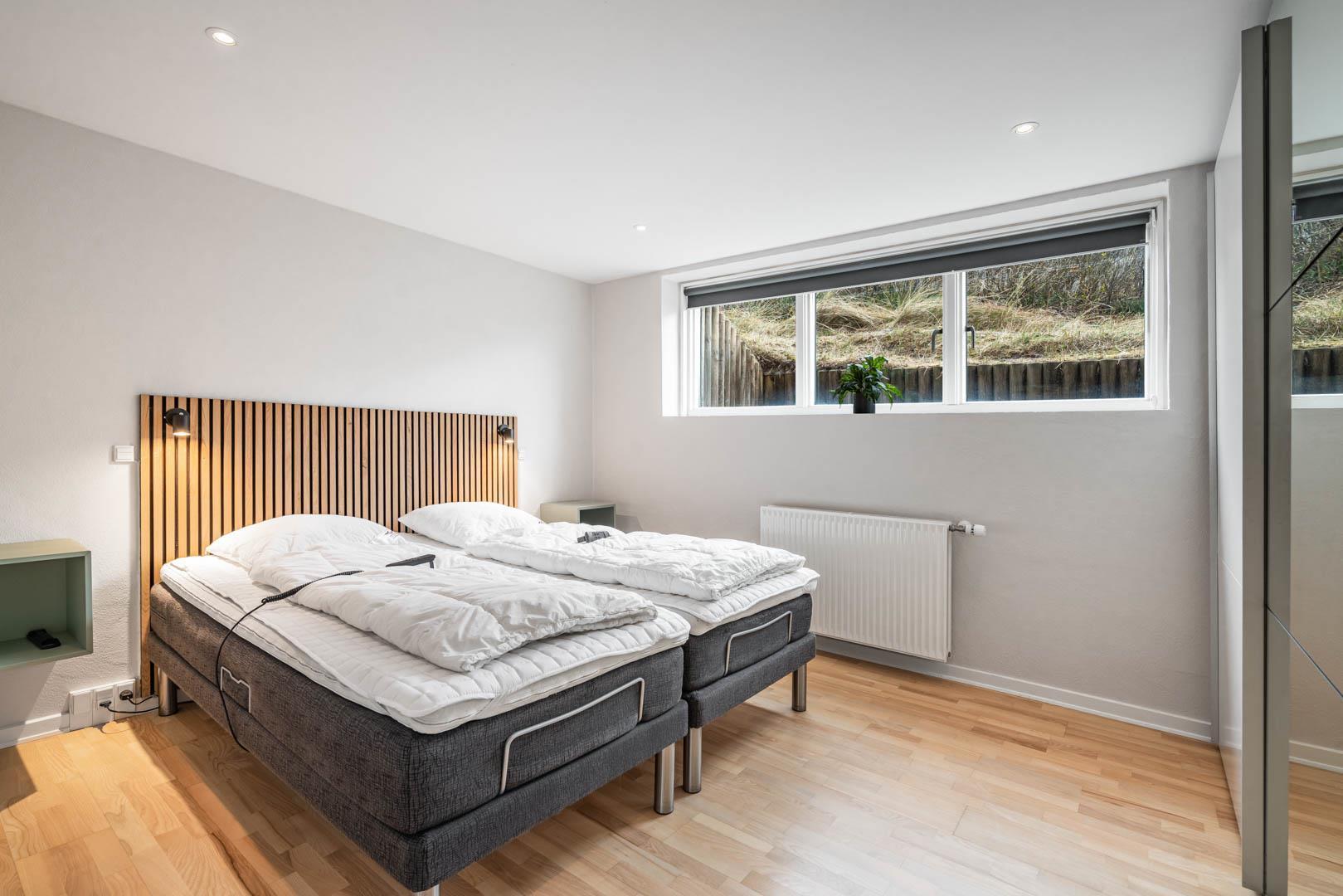 Feriehuset rummer i alt fire soveværelser og to store badeværelser, hvoraf det ene er et luksuriøst wellnessbadeværelse. Her er der dømt selvforkælelse med sauna og lækkert brusebad med regnvand, vandfald og massagefunktioner og ikke mindst et lækkert spabad, hvor I kan nyde en stund i det varme vand med kølige bobler i glasset.