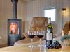 I opholdsrummet lukker kæmpestore glaspartier dagslyset og naturens farver ind i rummene og minder kontinuerligt om at sænke skuldrene og slappe helt af.
