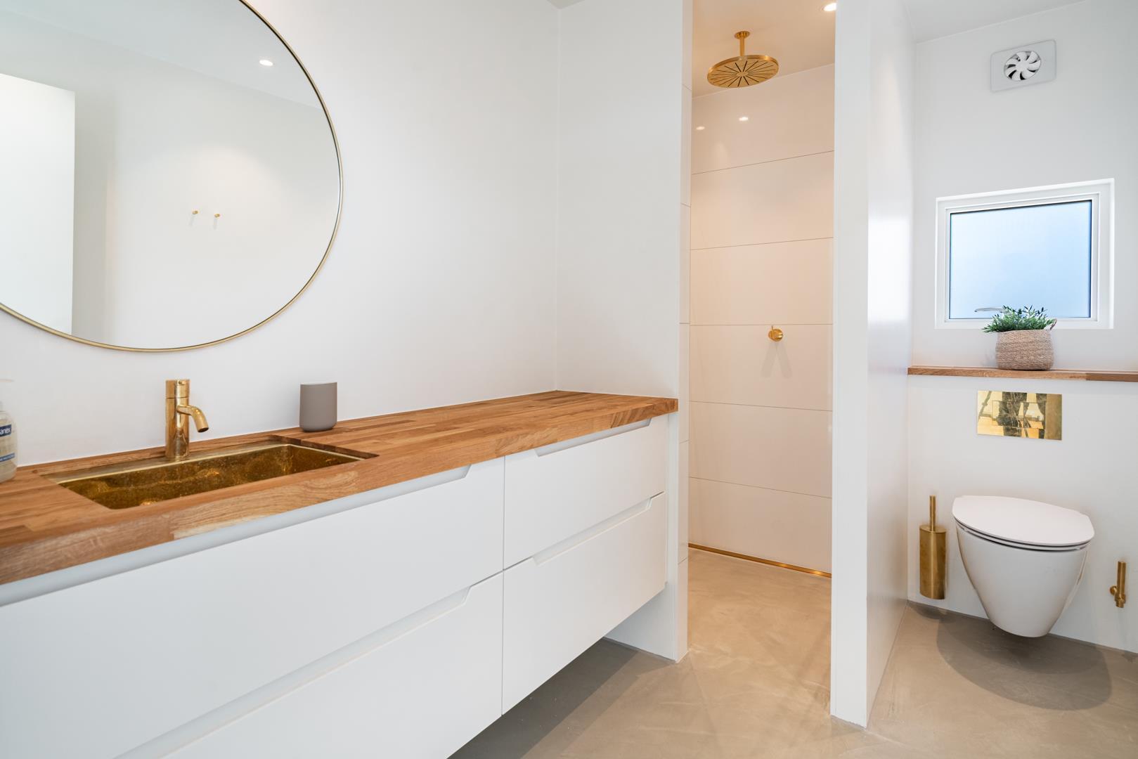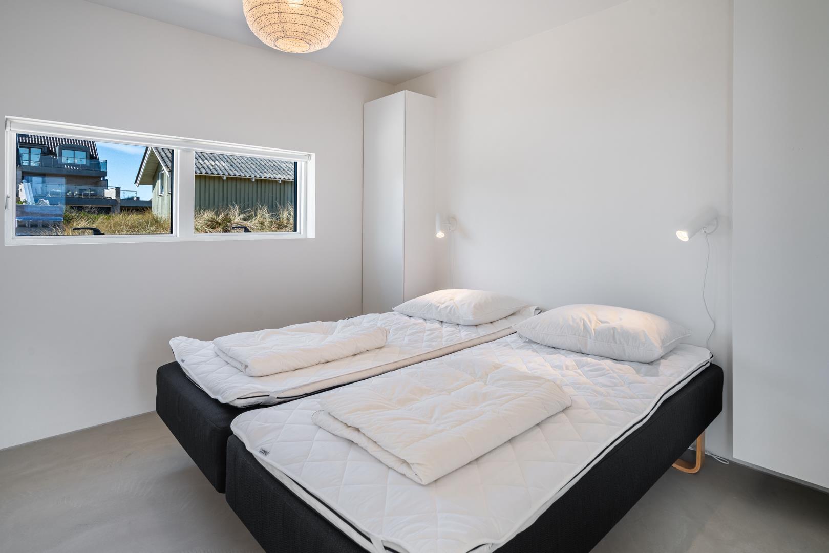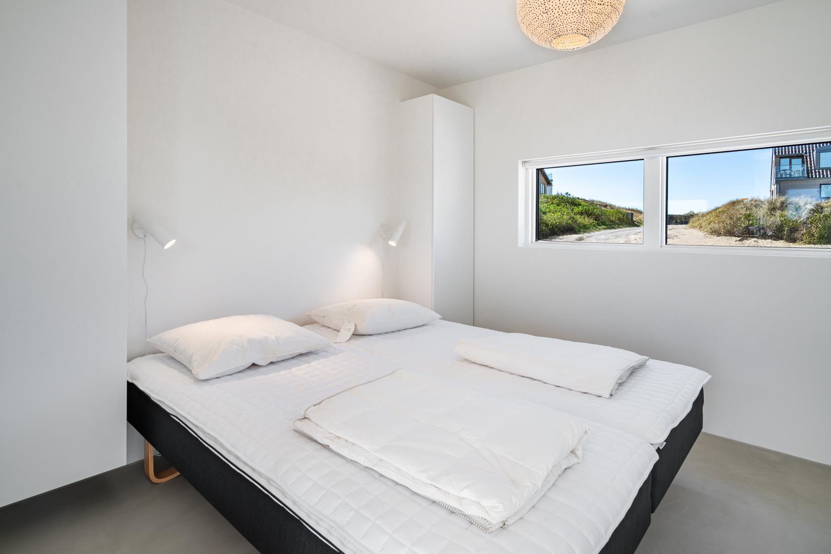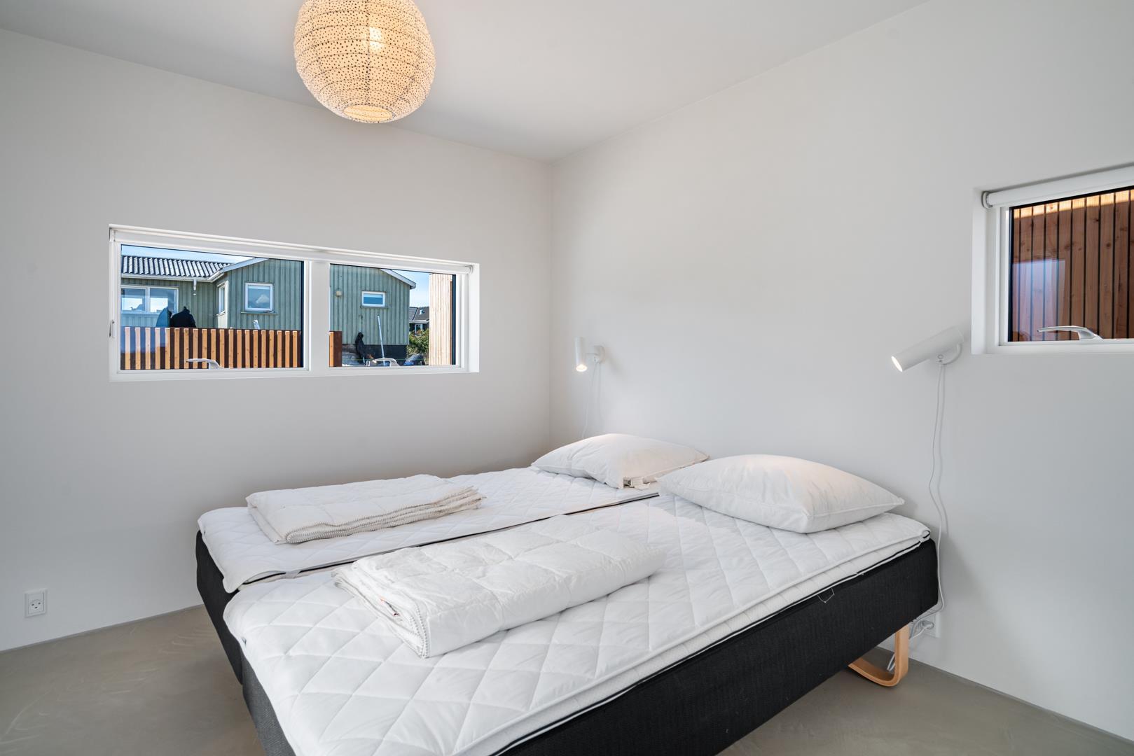 Med tre rummelige soveværelser med dobbeltsenge, et dejligt badeværelse og et ekstra toilet samt gulvvarme overalt i feriehuset er komforten i højsædet.