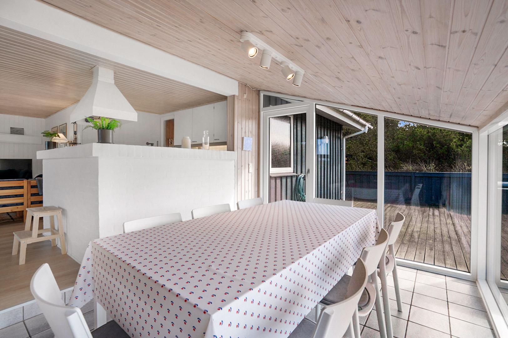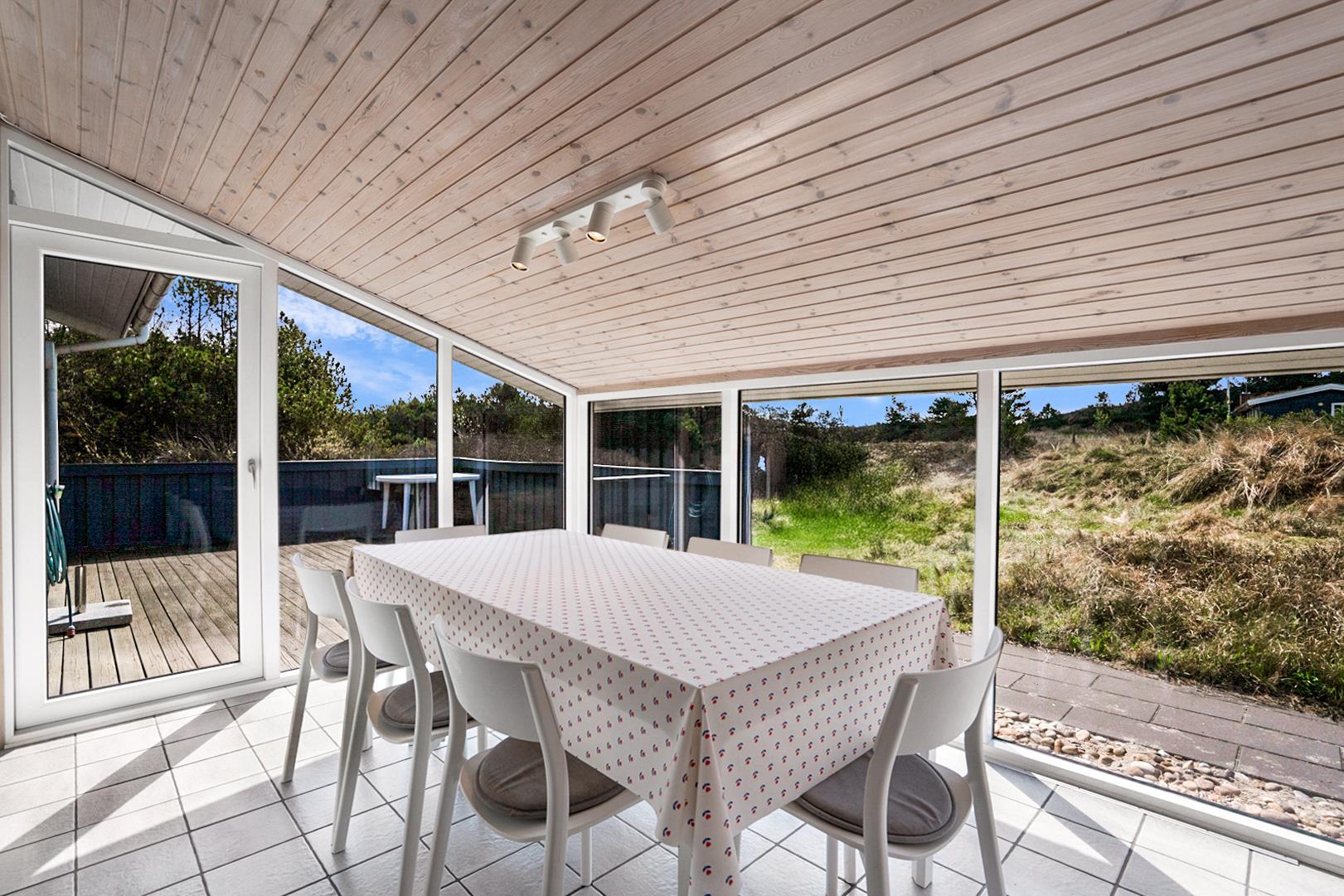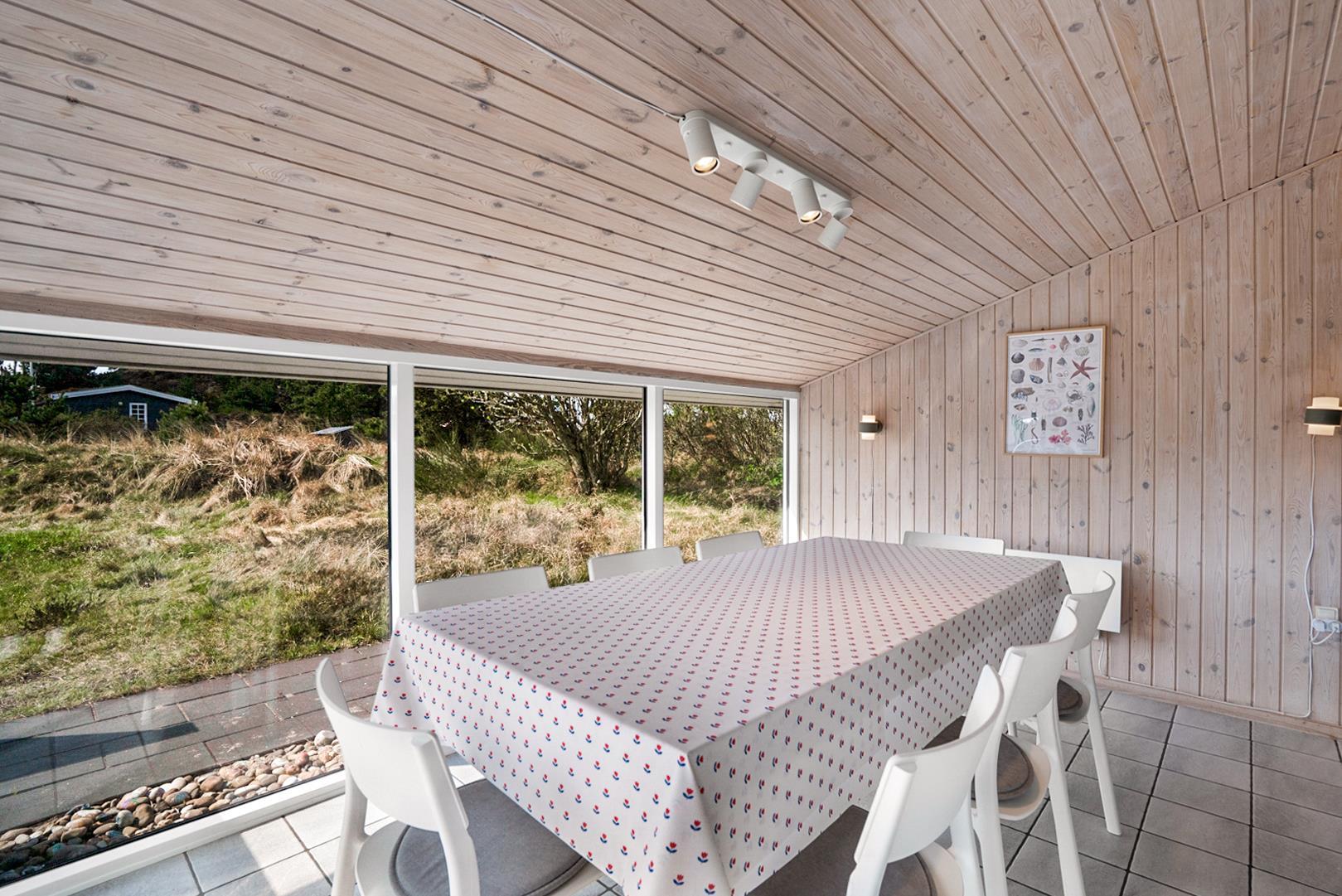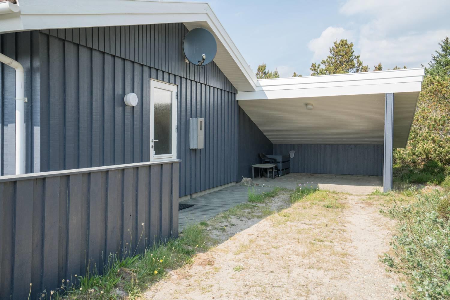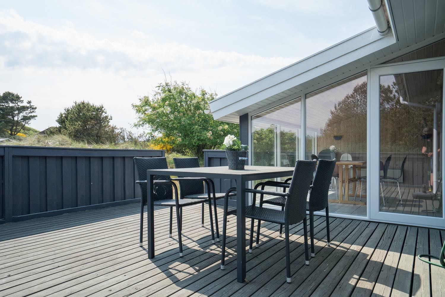 Huset ligger på en stor, ugeneret naturgrund, hvor du virkelig kan nyde stilheden og den friske vestjyske luft. Udenfor finder du både en overdækket og en åben terrasse – perfekte rammer til at nyde måltider under åben himmel eller en rolig stund med en god bog, mens du beundrer den flotte udsigt over området.