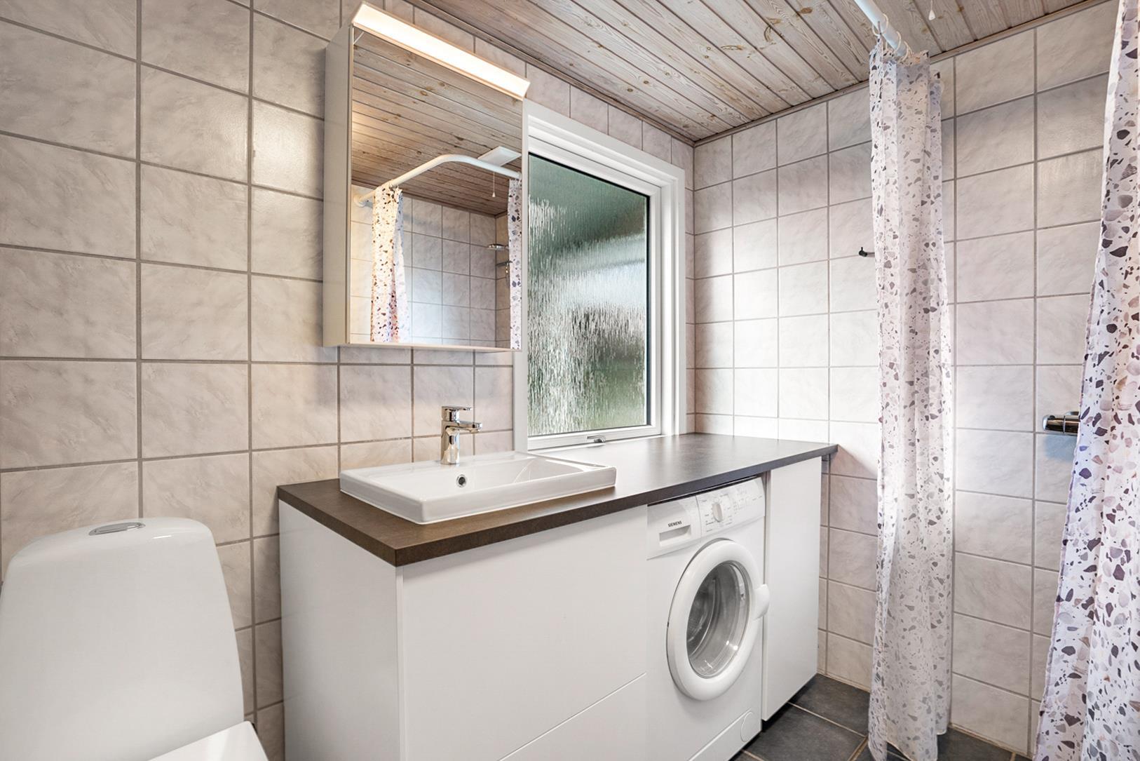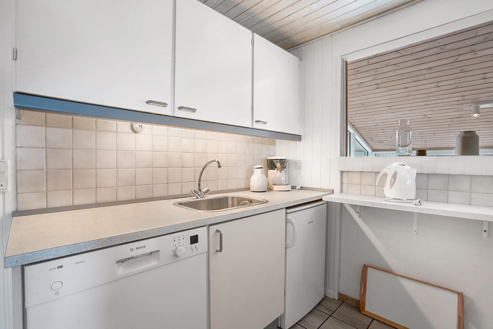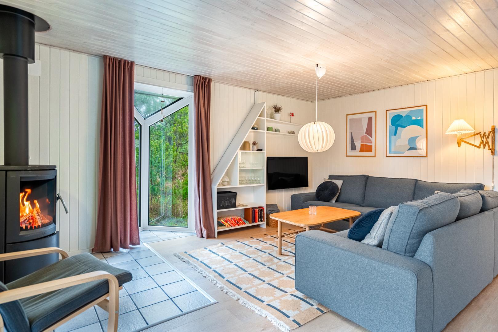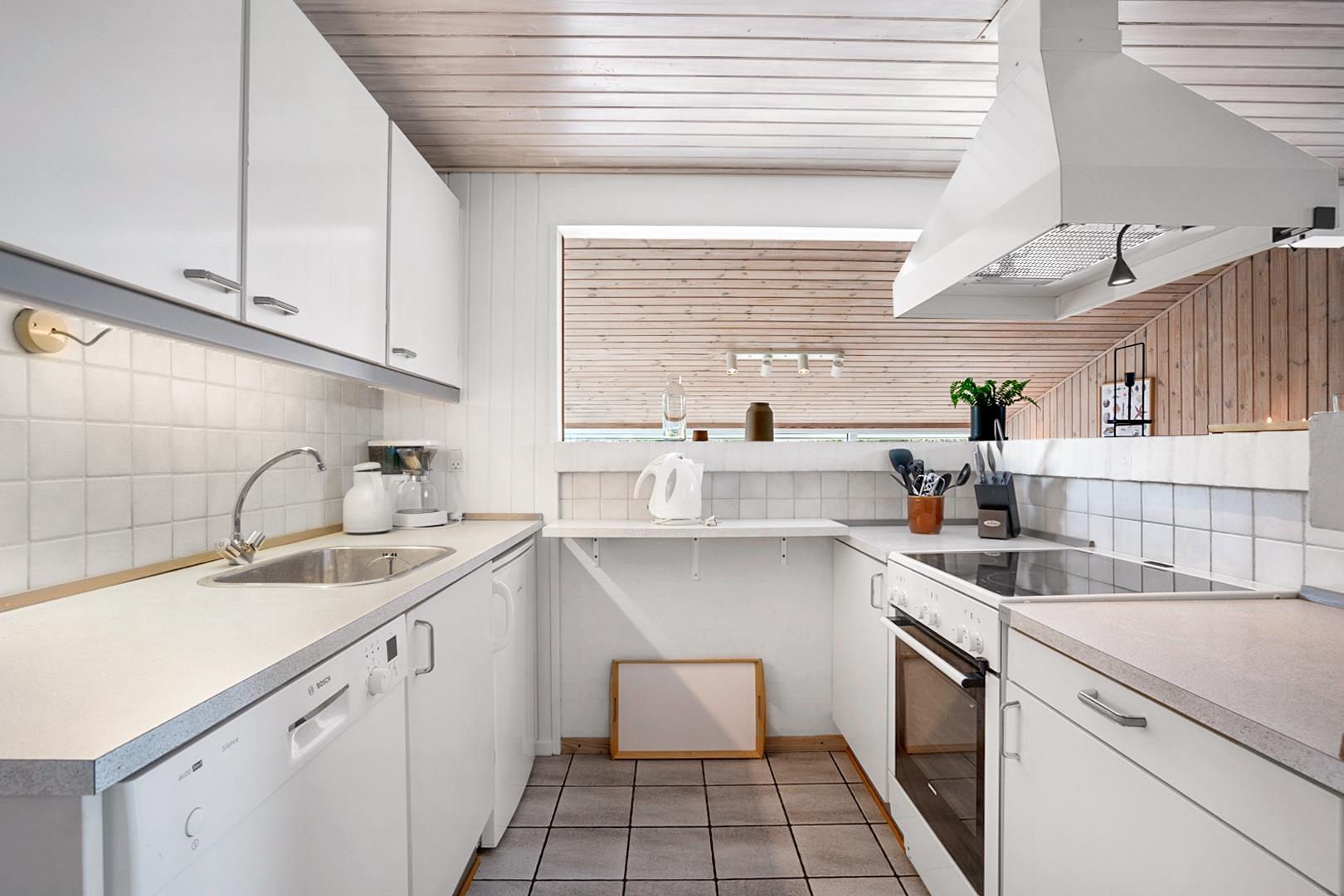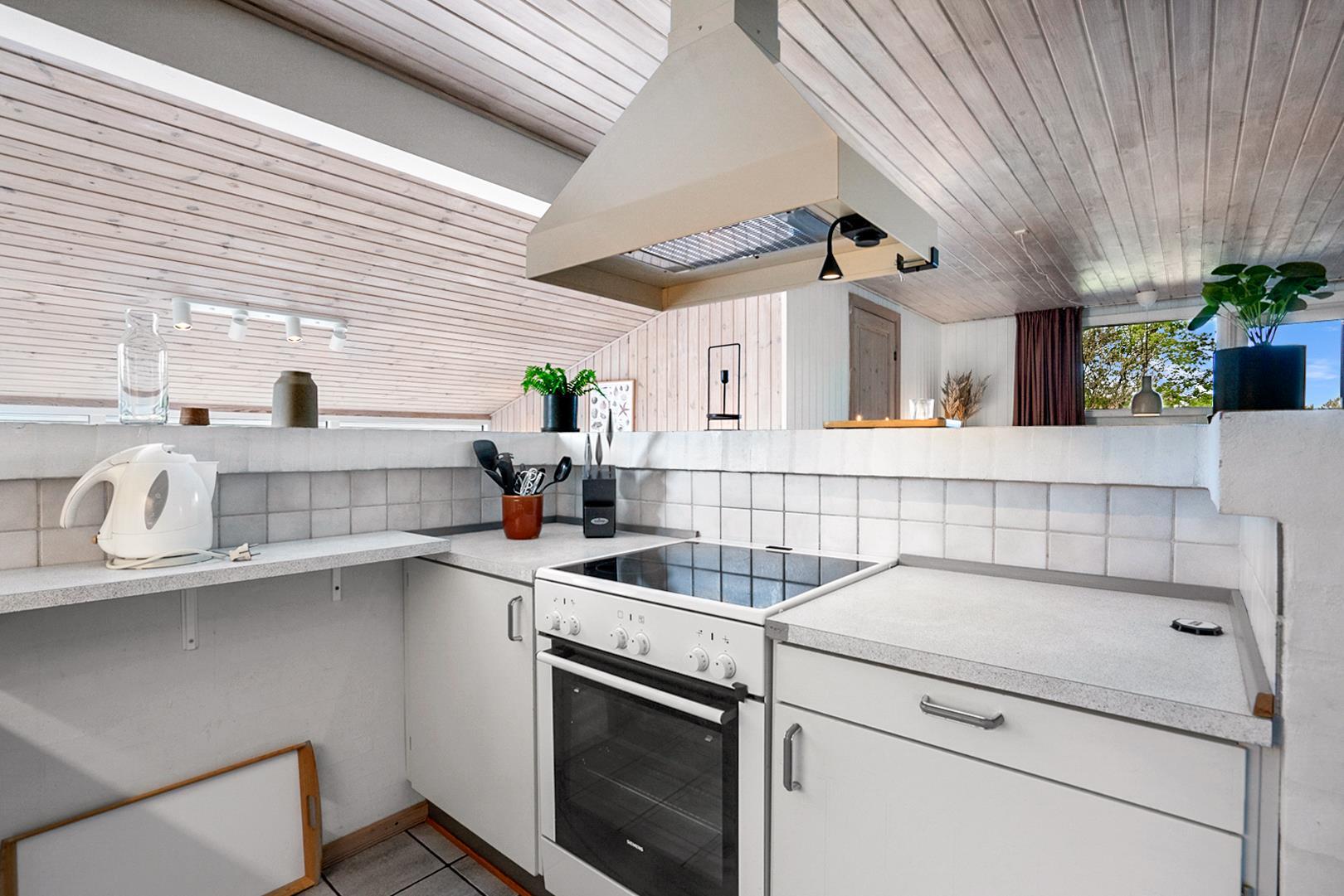 Indenfor byder sommerhuset på en hyggelig og stemningsfuld stue med brændeovn, hvor du kan lune dig på kølige aftener. Stuen er i åben forbindelse med husets køkken, hvilket skaber en behagelig og social atmosfære. Derudover har huset en dejlig udestue, som forlænger sommersæsonen og giver ekstra plads til afslapning. Badeværelse med sauna.