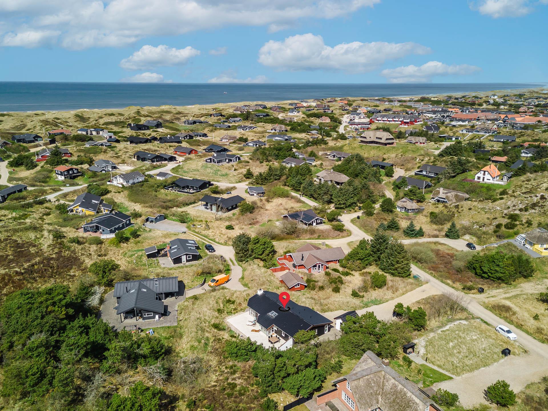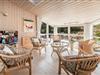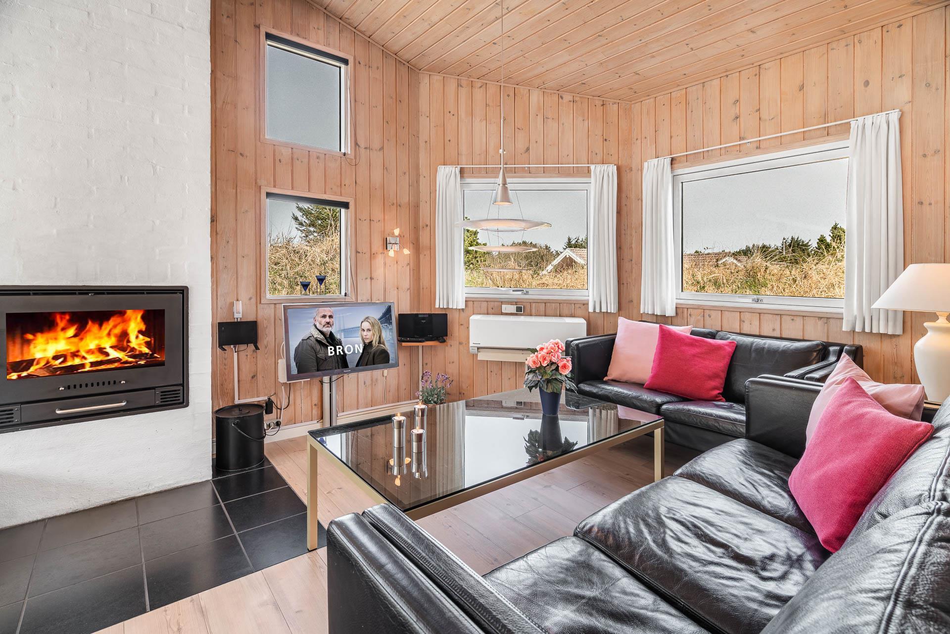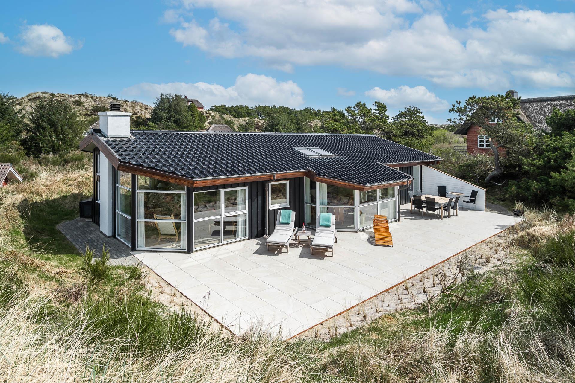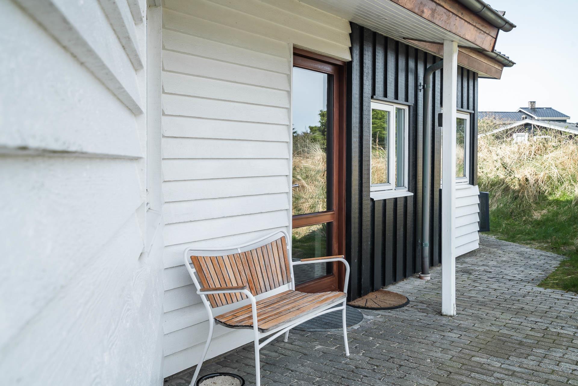 Med en unik beliggenhed og ikke langt fra strand og Henne Strand By ligger dette dejlige og meget vedligeholdte sommerhushus med en dejlig lyst udestue. Hyggelig smagfuldt møbleret pejsestue, hvor I kan slappe af og nyde den behagelige varme med udsigt til den kupere naturgrund. Flot lyst funktionelt køkken med kogeø. En halvmur fra køkken til havestuen adskiller spisestuen fra den hyggelige udestue. Omkring feriehuset er der anlagt flere dejlige terrasser, hvor der altid er mulighed for at finde læ og dermed nyde døgnets lyse timer. Godt redskabsrum til cykler, golfsæt og lignende hvor disse kan opbevares. Gratis golf på Henne samt Outrup Golfklub.