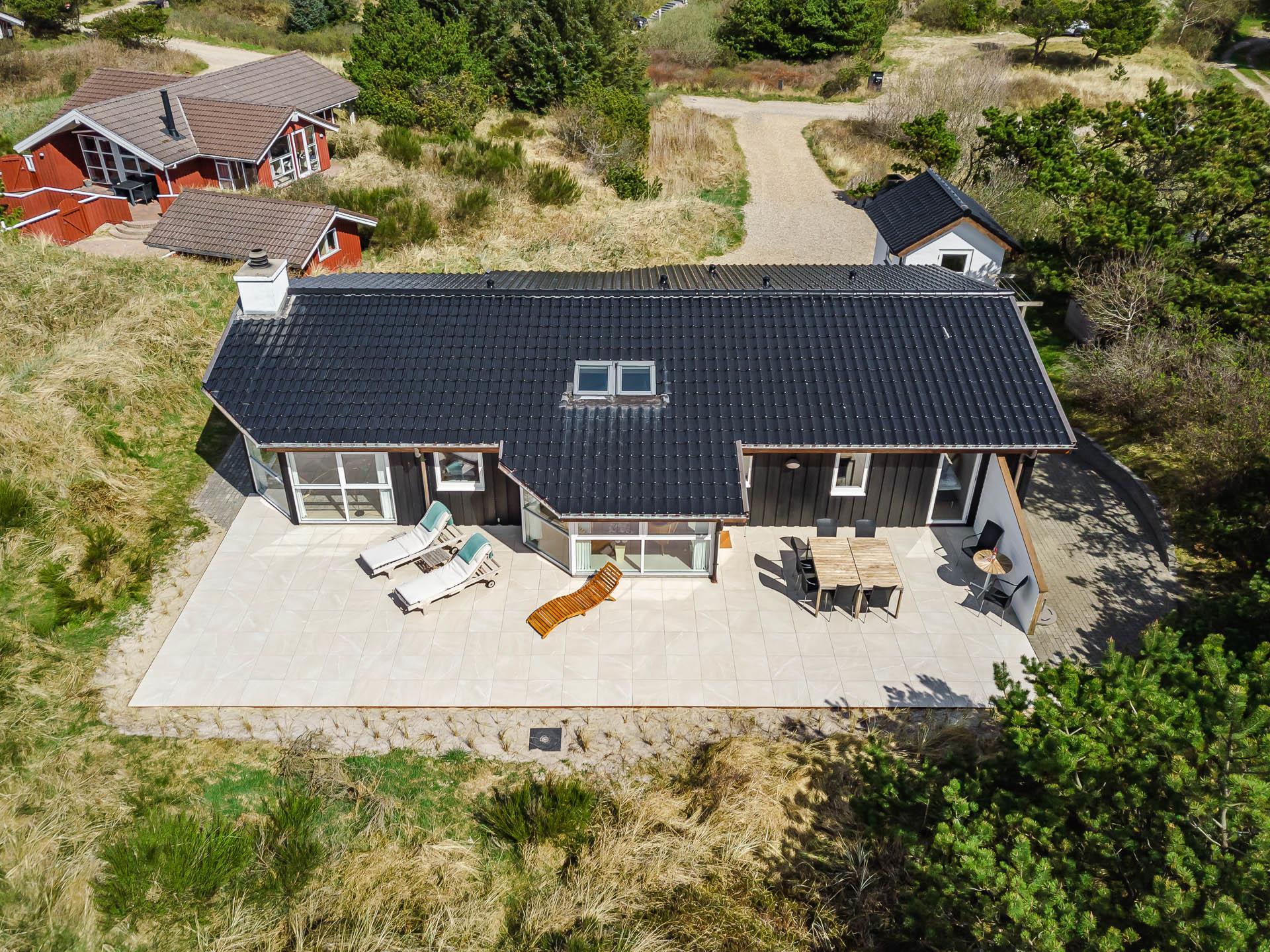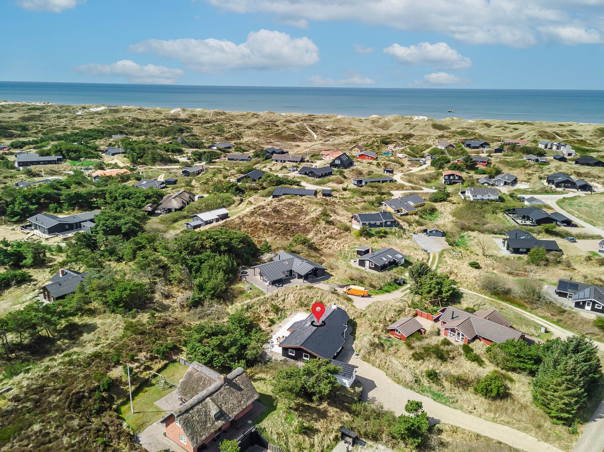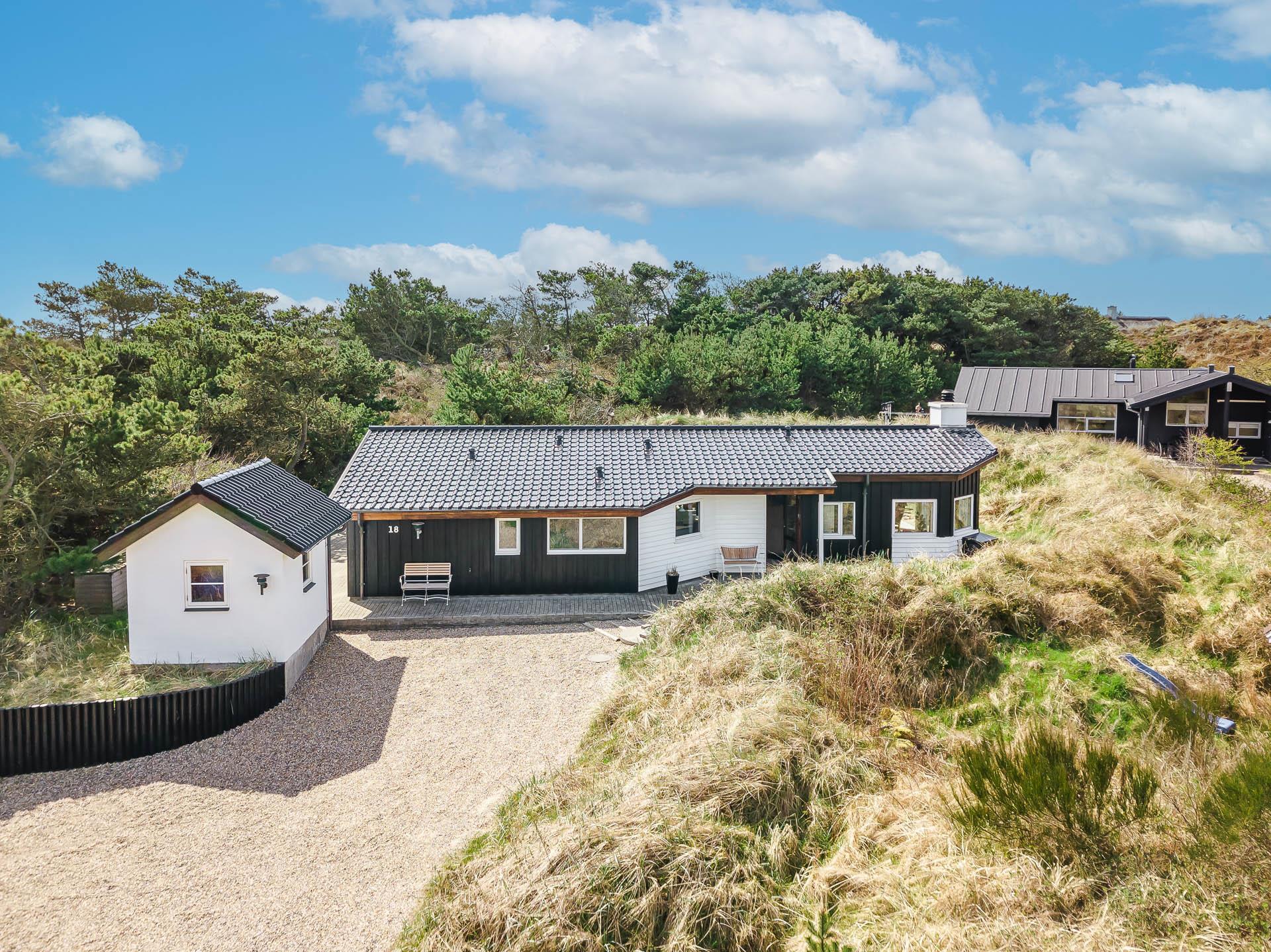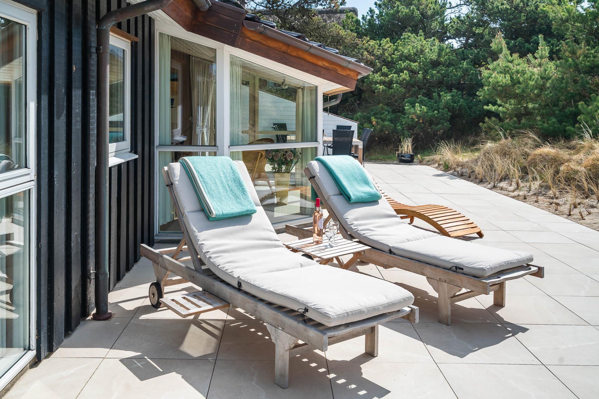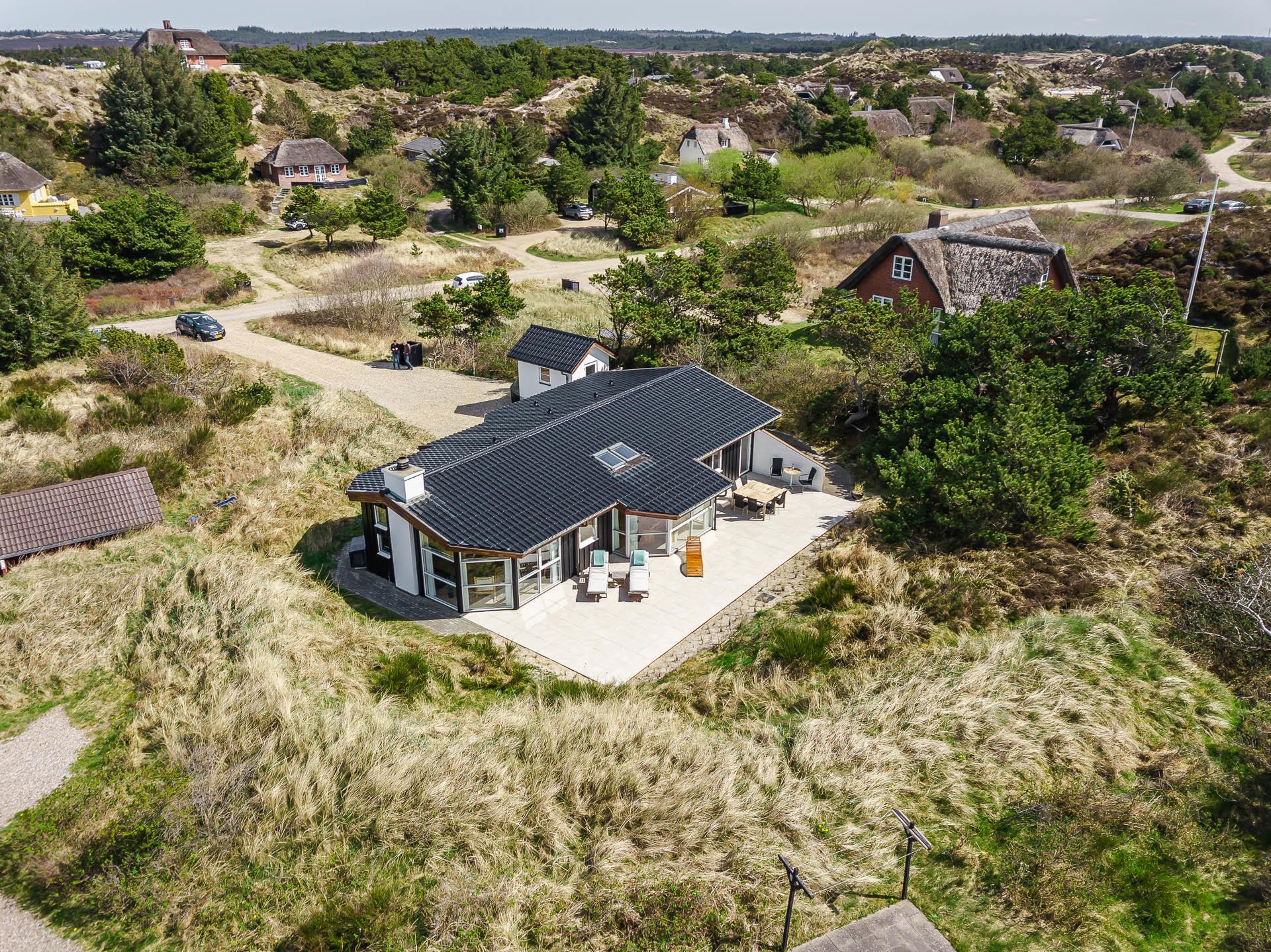 Med en unik beliggenhed og ikke langt fra strand og Henne Strand By ligger dette dejlige og meget vedligeholdte sommerhushus med en dejlig lyst udestue. Hyggelig smagfuldt møbleret pejsestue, hvor I kan slappe af og nyde den behagelige varme med udsigt til den kupere naturgrund. Flot lyst funktionelt køkken med kogeø. En halvmur fra køkken til havestuen adskiller spisestuen fra den hyggelige udestue. Omkring feriehuset er der anlagt flere dejlige terrasser, hvor der altid er mulighed for at finde læ og dermed nyde døgnets lyse timer. Godt redskabsrum til cykler, golfsæt og lignende hvor disse kan opbevares. Gratis golf på Henne samt Outrup Golfklub.